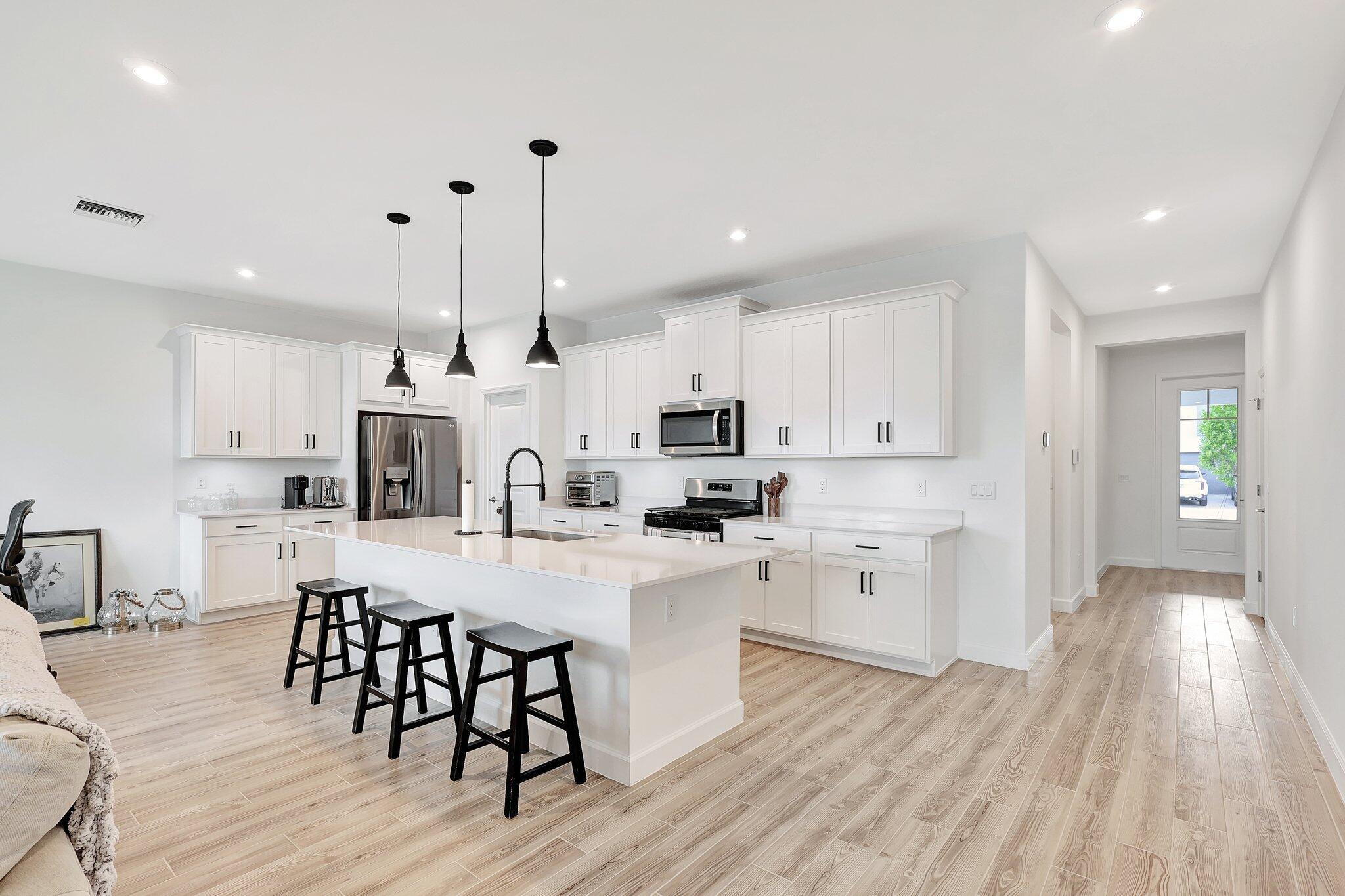 Almost BRAND NEW HOME 3 Bedroom 2 Bath with 2 Car Garage. The spacious kitchen has plenty of cabinet space and Beautiful Island The kitchen overlooks the Great Room and dining area. Sliding glass doors bring u to a wonderful water view. The Light and Bright guest bedrooms share a hall bath The laundry room is perfect for extra storage. The owner's suite has with a private bath and dual walk-in closets.