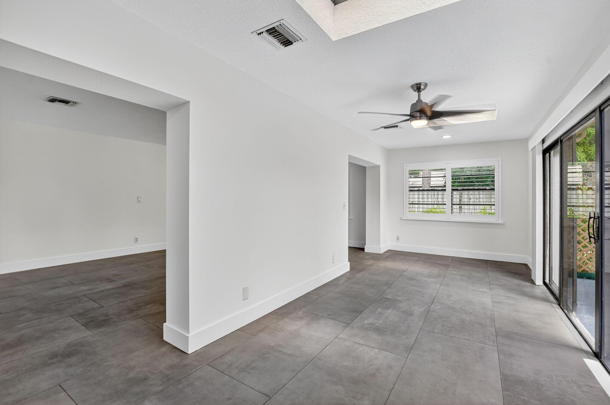 Totally remodeled single-family home in the sought-after gated community of Rainberry Bay! This light-filled residence features brand new large porcelain tile floors throughout, a stunning new kitchen with quartz counters, custom backsplash, and updated bathrooms. Enjoy peace of mind with a roof maintained by the HOA, an A/C replaced in 2021, and plantation shutters on most windows. The home offers a spacious Florida room, a two-car garage, and a large fenced yard--perfect for relaxing or entertaining. Rainberry Bay is pet friendly (2 pets, up to 30 lbs each) and offers a vibrant lifestyle with incredible amenities, all just minutes from Downtown Delray and the beach!