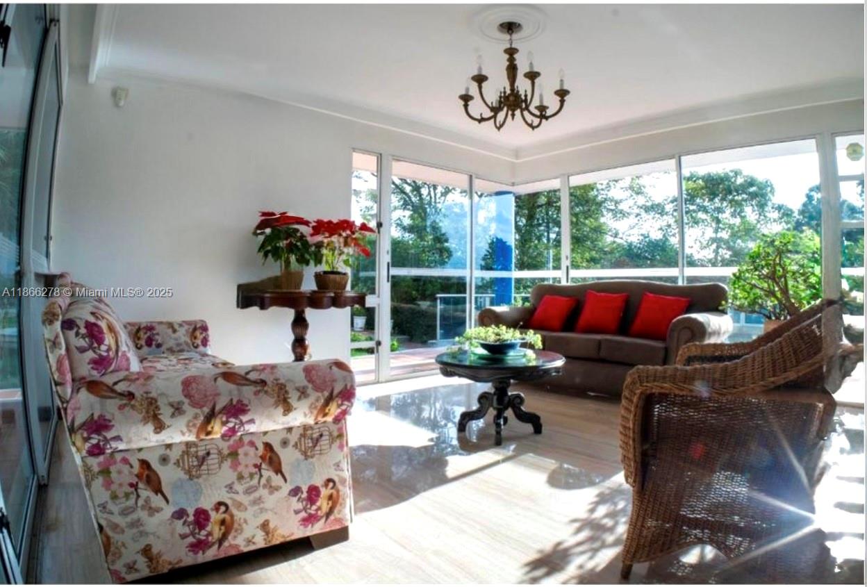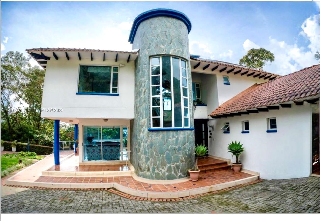 This stunning villa in Medellín- Colombia, combines luxury, nature, and comfort in one place. Located in a peaceful setting and surrounded by green landscapes, this property is ideal for those seeking privacy and exclusivity without sacrificing proximity to the vibrant city of Medellín. The villa features contemporary architecture that blends harmoniously with its natural surroundings. Its façade features natural stone details and large windows that allow natural light to flood in, creating spacious and bright spaces. Notable features include: Large terraces with panoramic views. Cozy rooms with high ceilings and wood finishes. Well-maintained gardens and detailed landscaping. Perfect outdoor spaces for entertaining. Private garage and cobblestone driveway.