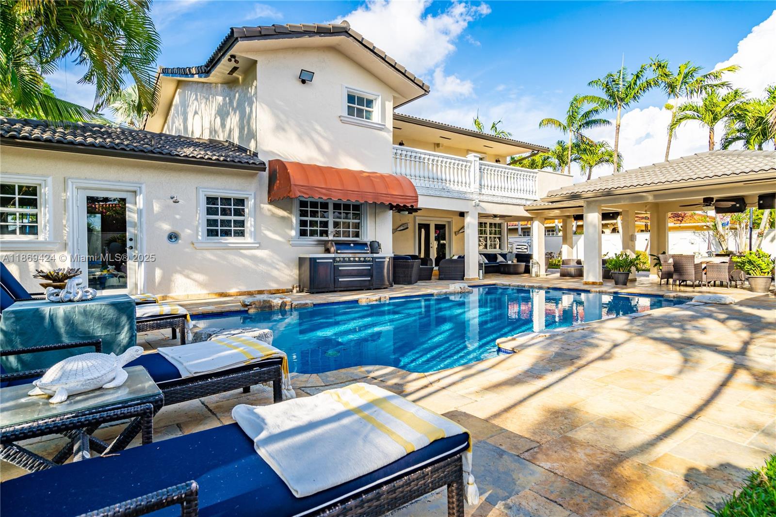 Welcome to your dream home! This stunning single-family home boasts 4 bedrooms, 4 bathrooms, and a 2-car garage. The luxurious features continue with an in-ground pool, three 5-ton A/C units, and primary bathrooms adorned with blue slate and yellow onyx tile. Enjoy the heated saltwater pool year-round and rest easy knowing the impact doors and partially impact windows, as well as shutters for the other windows, provide added security. With 2 master suites, marble flooring throughout, vaulted ceilings, and an epoxied 2-car garage. A 60kW generator provides peace of mind during power outages, and the original roof is in good condition. With just a few cosmetic upgrades, this home is ready for you to make it your own. Don't miss out on this incredible opportunity to live in luxury!