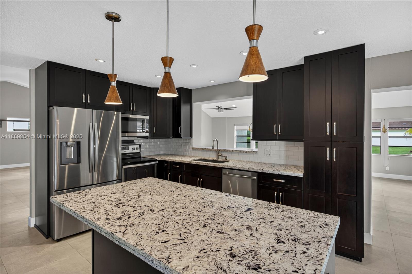 Welcome to this beautifully updated 3-bedroom, 2-bath home in the desirable Country Isles of Weston! This charming residence provides complete hurricane protection, featuring impact-resistant doors that ensure peace of mind. New A/C 2023. The designer kitchen features granite countertops, custom cabinetry, stainless steel appliances, designer light fixtures, and a family room off the kitchen. The home also features updated bathrooms and a primary organized walk-in closet, complete with designer custom—built—ins. Nestled on a corner lot in a quiet cul-de-sac, this home offers stunning water views and a serene setting. Just a short walk to schools and the community pool, with parks, recreation, major highways, FLL Airport, and beautiful beaches all within proximity.