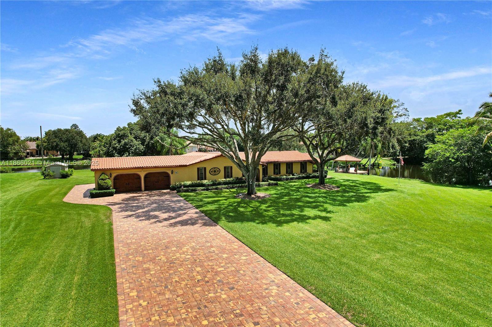 Welcome to Davie West! Your Ranch Waterfront pool home on 1.43 acres! Horse friendly community with access to horse trails to Davie parks. Your private canal retreat features 4 bedrooms and 2 baths/2.5 car garage that includes s/s cabinetry. Extended paved driveway with private parking behind the garage. Home features custom kitchen, quartz countertops, s/s appliances (double convention oven), built-in wine bar, and a spacious island perfect for entertaining. The primary suite has a private screened patio overlooking the lake, where egrets frequently visit. Hurricane impact doors and windows with accordion shutters on three sliders. This home includes luxury, privacy, and natural beauty, with waterfront amenities- boating, fishing, jet skiing and water skiing from your own backyard!