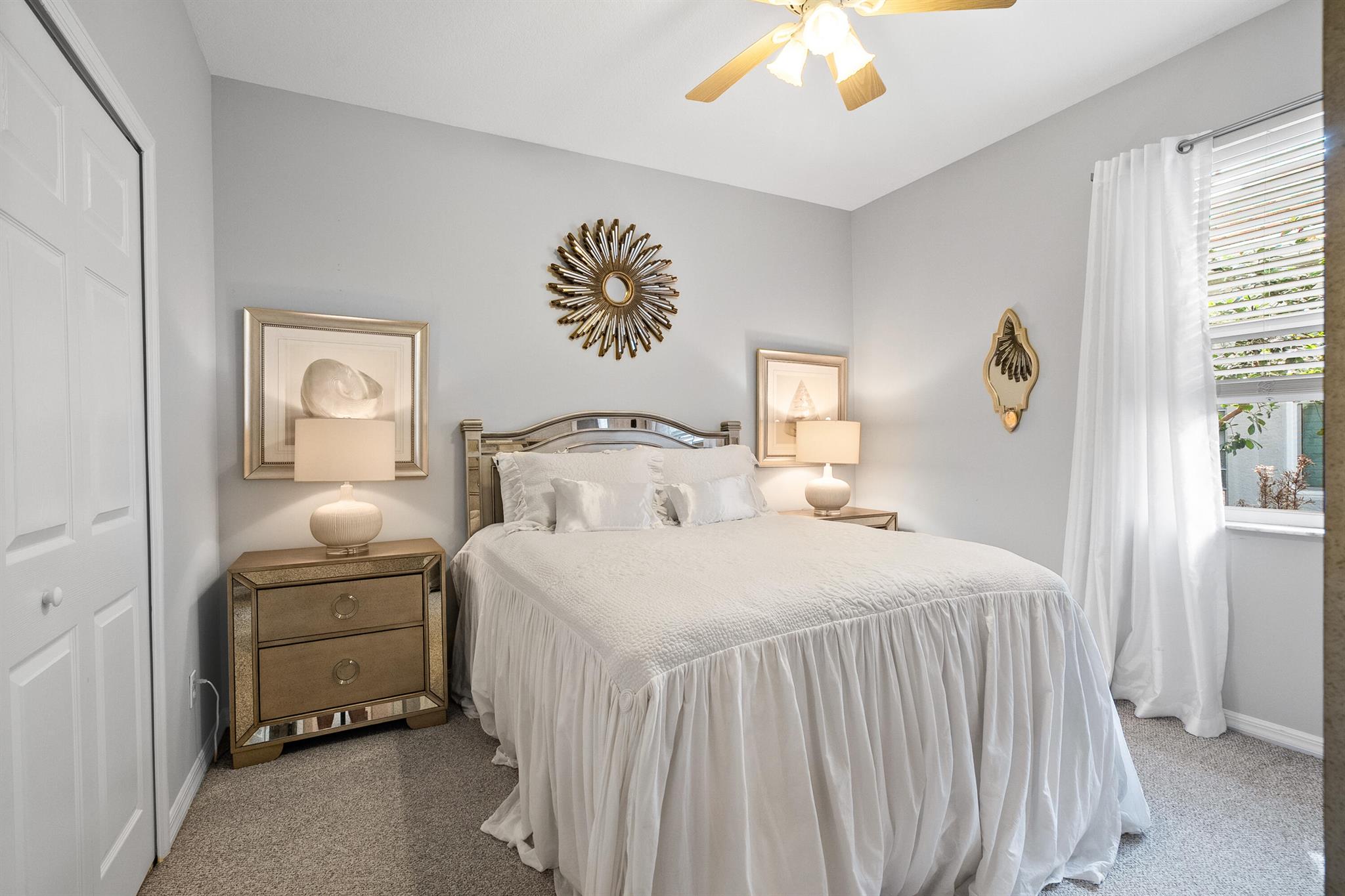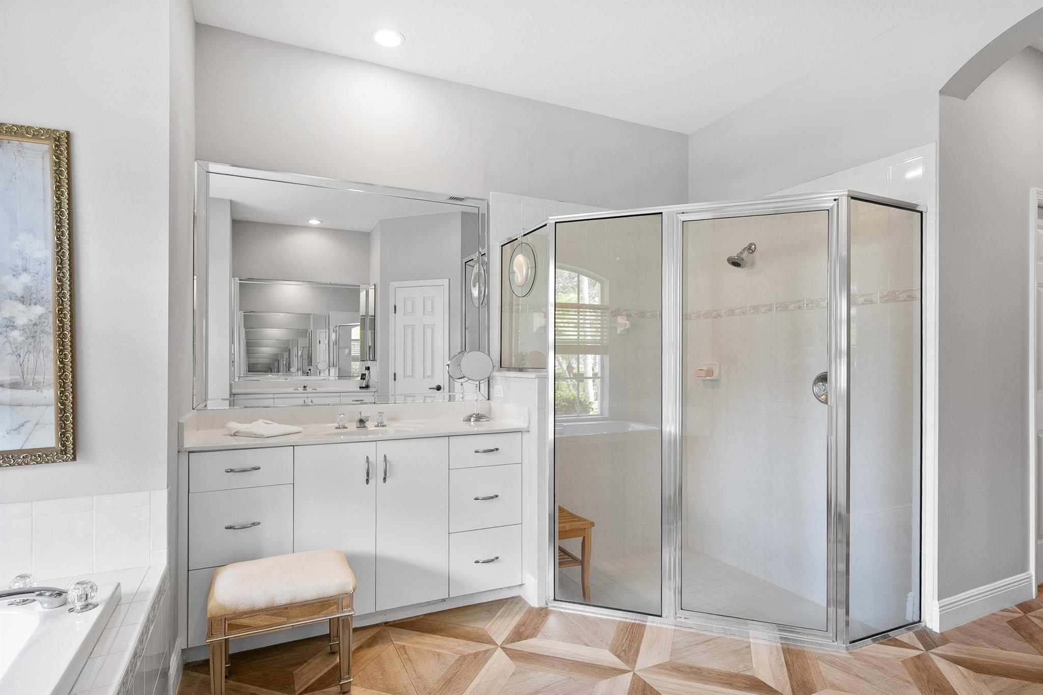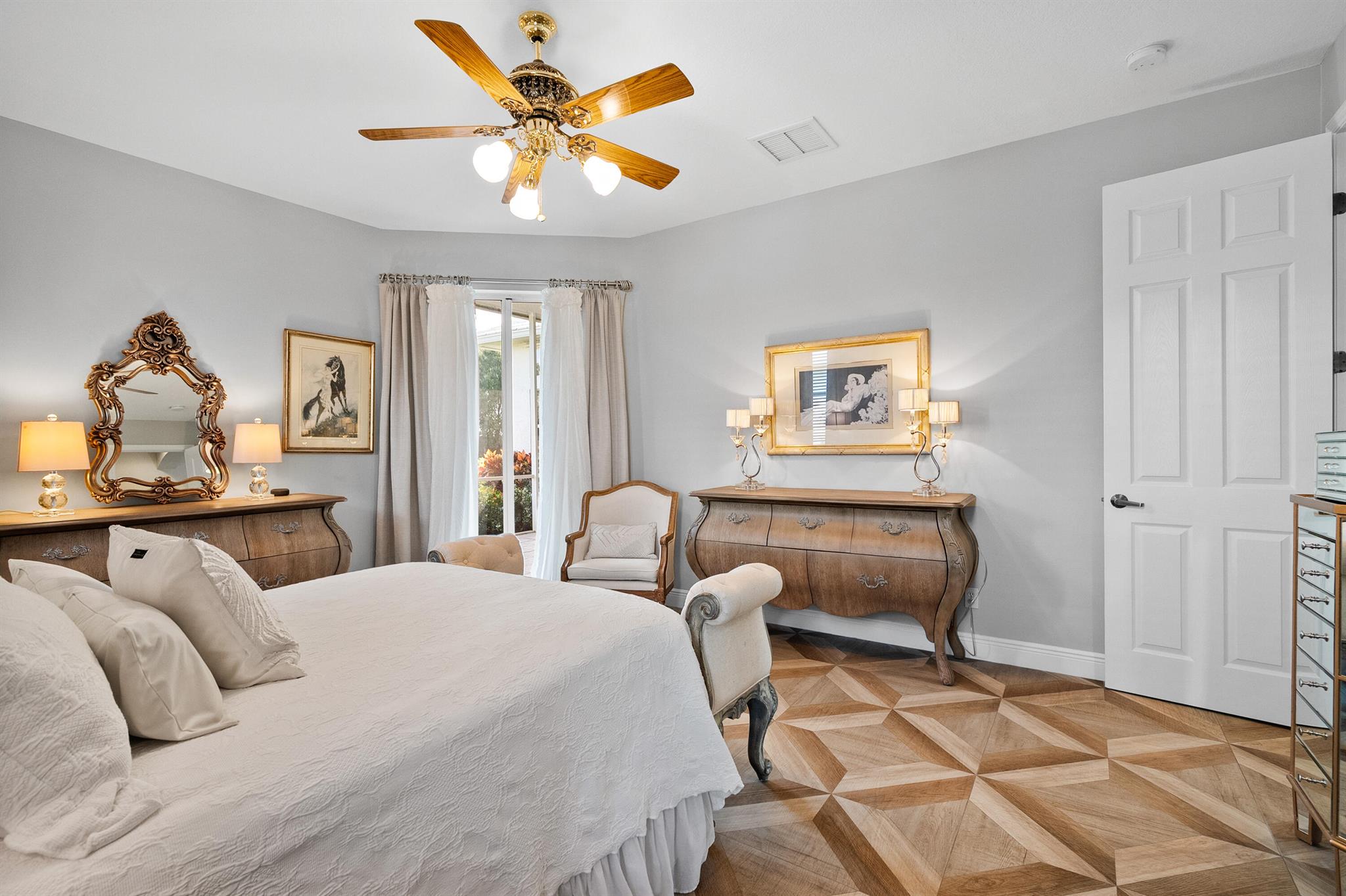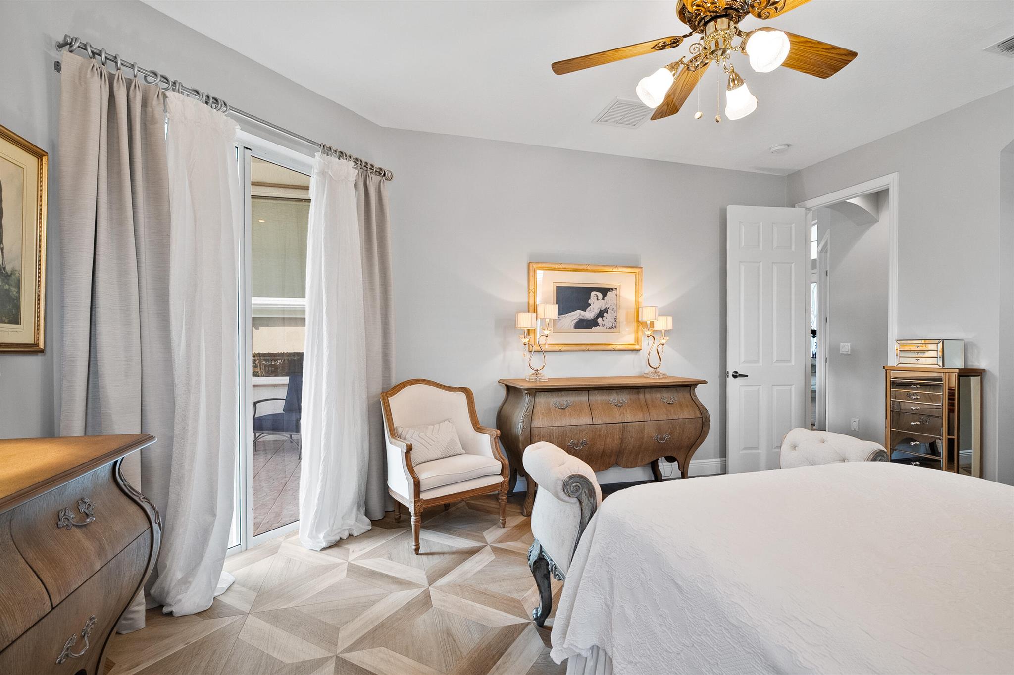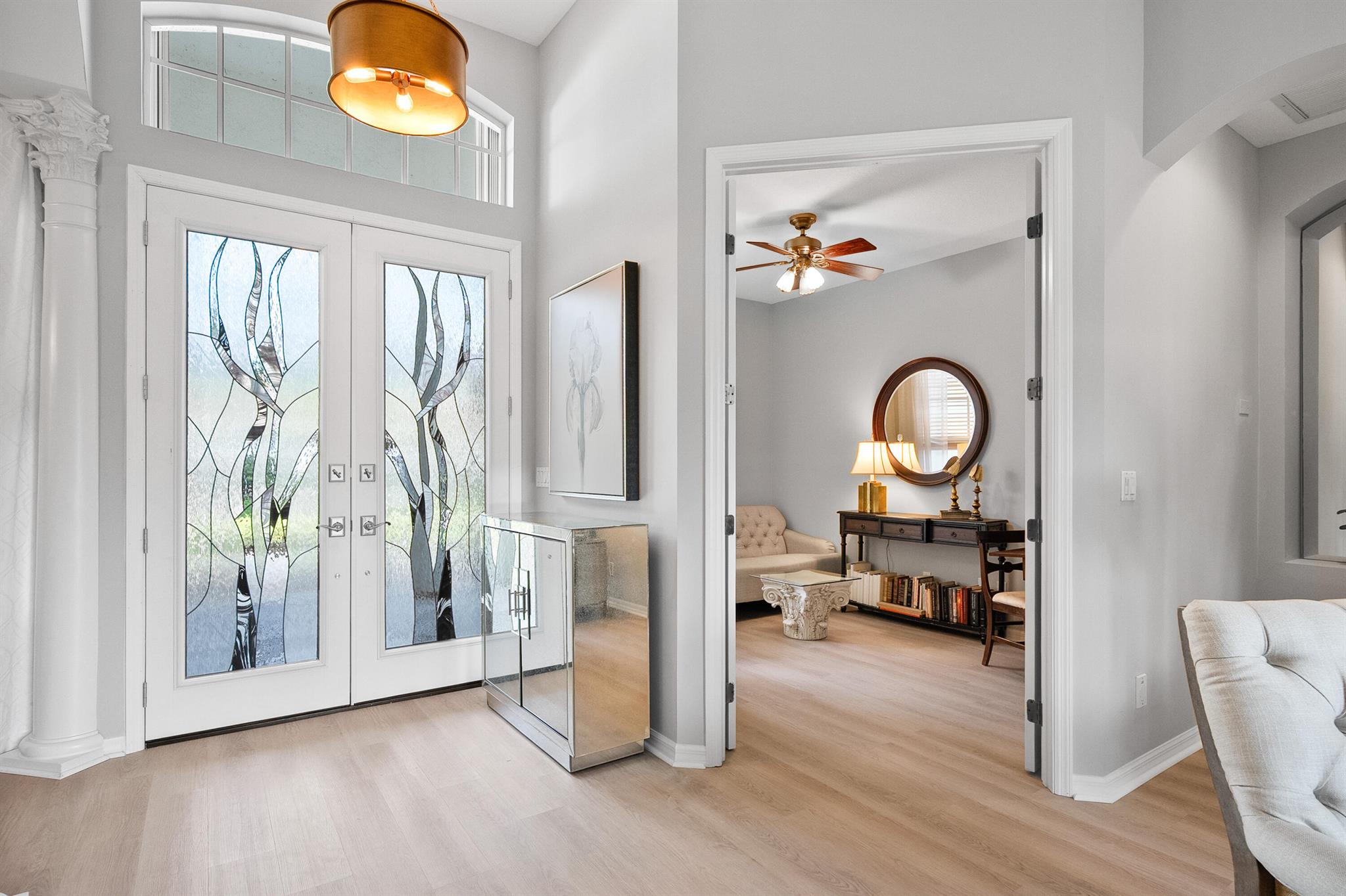 Elegance with modern renovations in this captivating floor Plan. Featuring light, neutral vinyl floors, soaring 12' ceilings in the main living areas, and 10' ceilings throughout the rest of the home, this residence is filled with natural light from abundant windows. Updated kitchen showcases white quartz countertops and stainless steel appliances. Floor plan includes a formal dining room, living room, and family room, plus 4 bedrooms and 3.5 baths. One bedroom is an en suite ideal for a nanny or in-law quarters, while another bath serves as a cabana. Enjoy tranquil lakefront views, beautiful mature landscaping, a 2021 roof, and complete hurricane panels. Community amenities include a clubhouse, pool, tennis, fitness center, and optional golf club with cafe and dining. Membership Optional