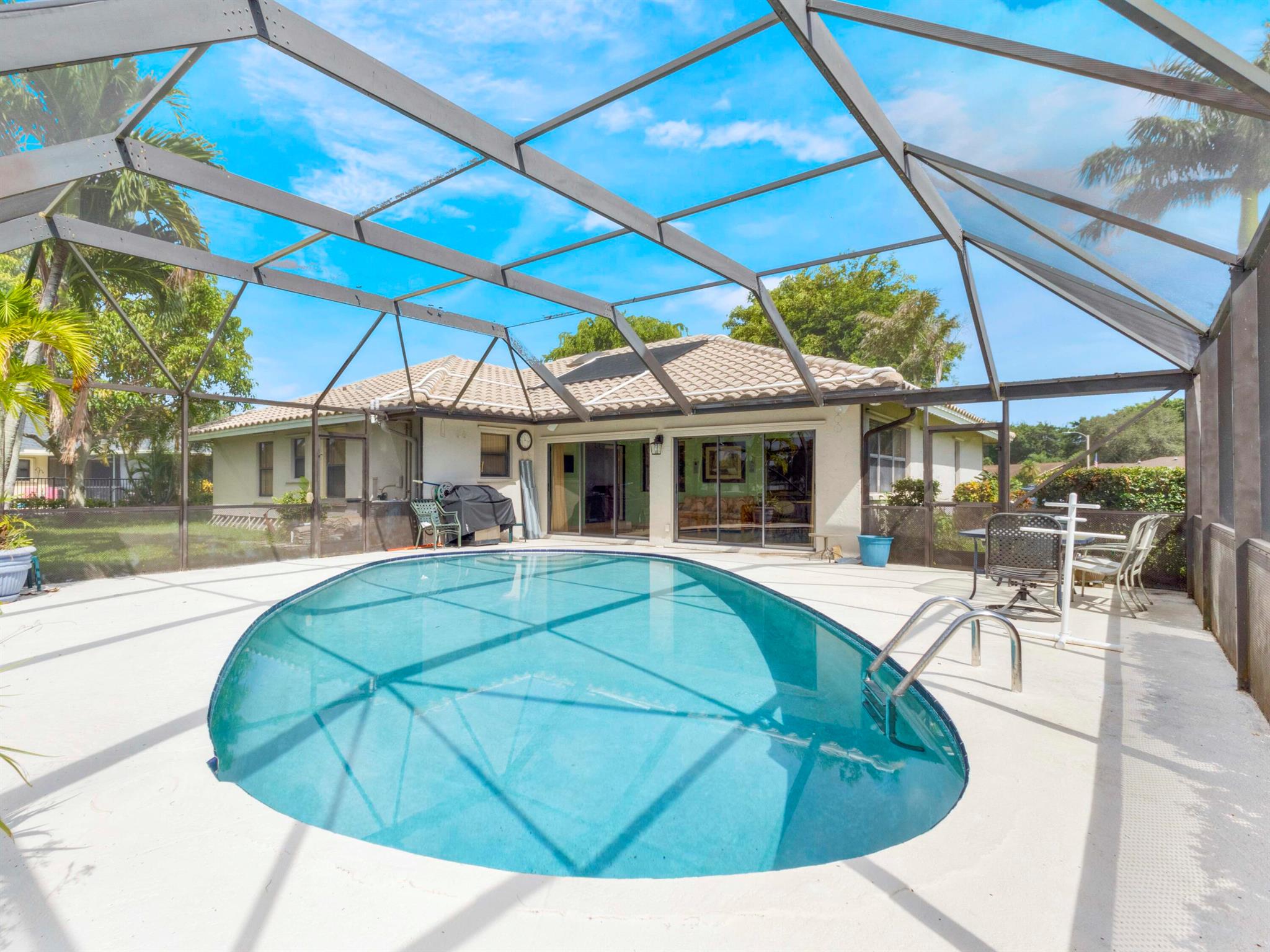 Discover this beautiful single-family pool home perfectly situated on a tranquil lake in the highly sought-after Woodland Creek community. Offering 3 bedrooms, 2 bathrooms, a private office, and a 2-car garage, this spacious residence features an open split-bedroom floor plan with vaulted ceilings, a formal living and dining area, and a comfortable family room designed for both everyday living and entertaining. The kitchen overlooks the main living space and opens to a fully enclosed lanai, where you can relax and enjoy peaceful lake views year-round. Woodland Creek is admired for its A-rated schools, low HOA fees, and wonderful amenities including tennis, pickleball, a lakeside pavilion, and a play area. Ideally located near shopping, dining, nature preserves, and the National Polo