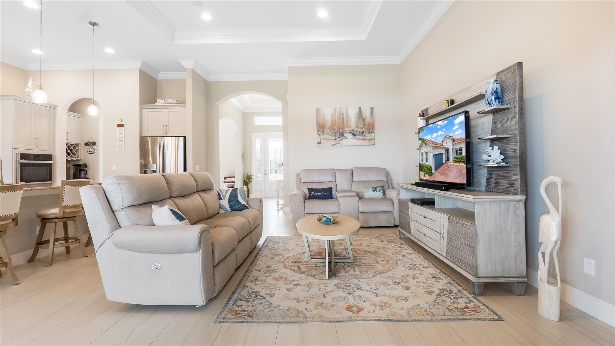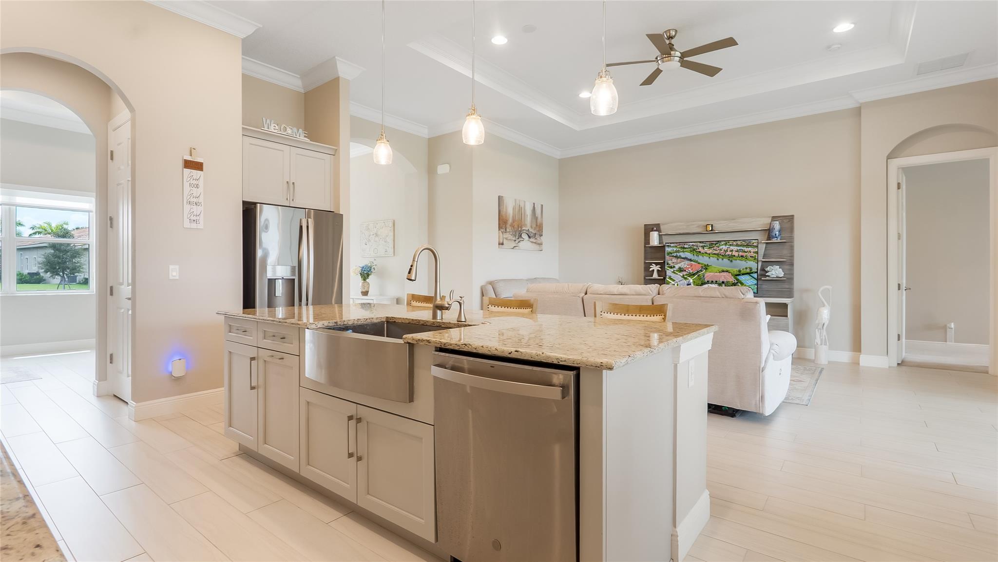 Beautifully upgraded home in PGA Verano featuring over $100,000 in designer touches. Step inside to wood-look tile flooring, crown molding, custom blinds, elegant lighting,and impact glass windows and doors. The kitchen opens to the living area with quartz counters, 42'' cabinetry, stainless steel appliances, coffee nook, wine rack and breakfast bar. Enjoy one of the best lake views in the community from the extended covered lanai with screen enclosure and summer kitchen, perfect for entertaining or relaxing. This home is filled with upgrades inside and out, combining style, comfort, and functionality in every detail. Residents also enjoy resort style amenities at Club Talavera, including indoor/outdoor pools, fitness & yoga studios, tennis, bocce,basketball AND 27 Pickleball Courts.