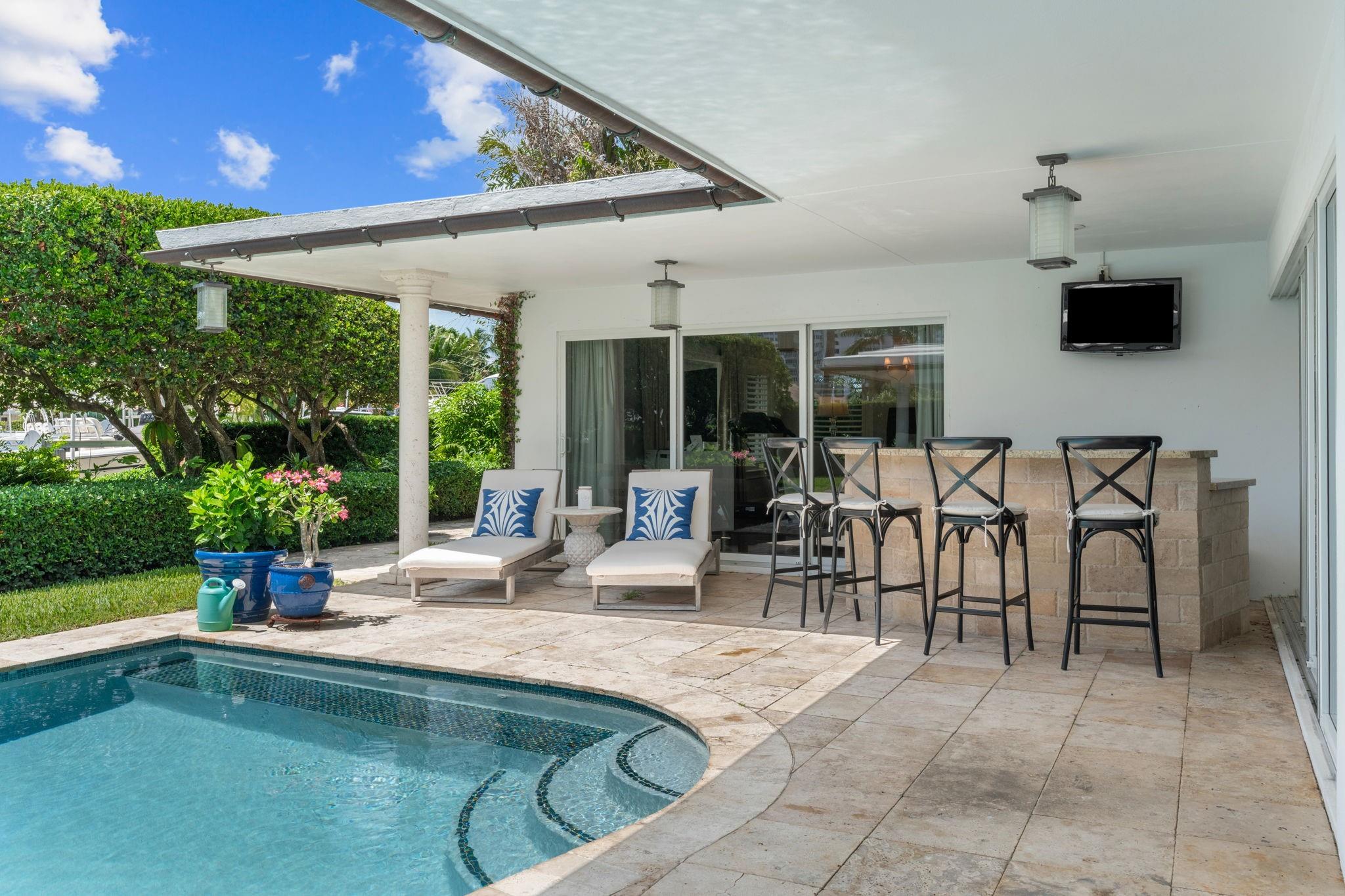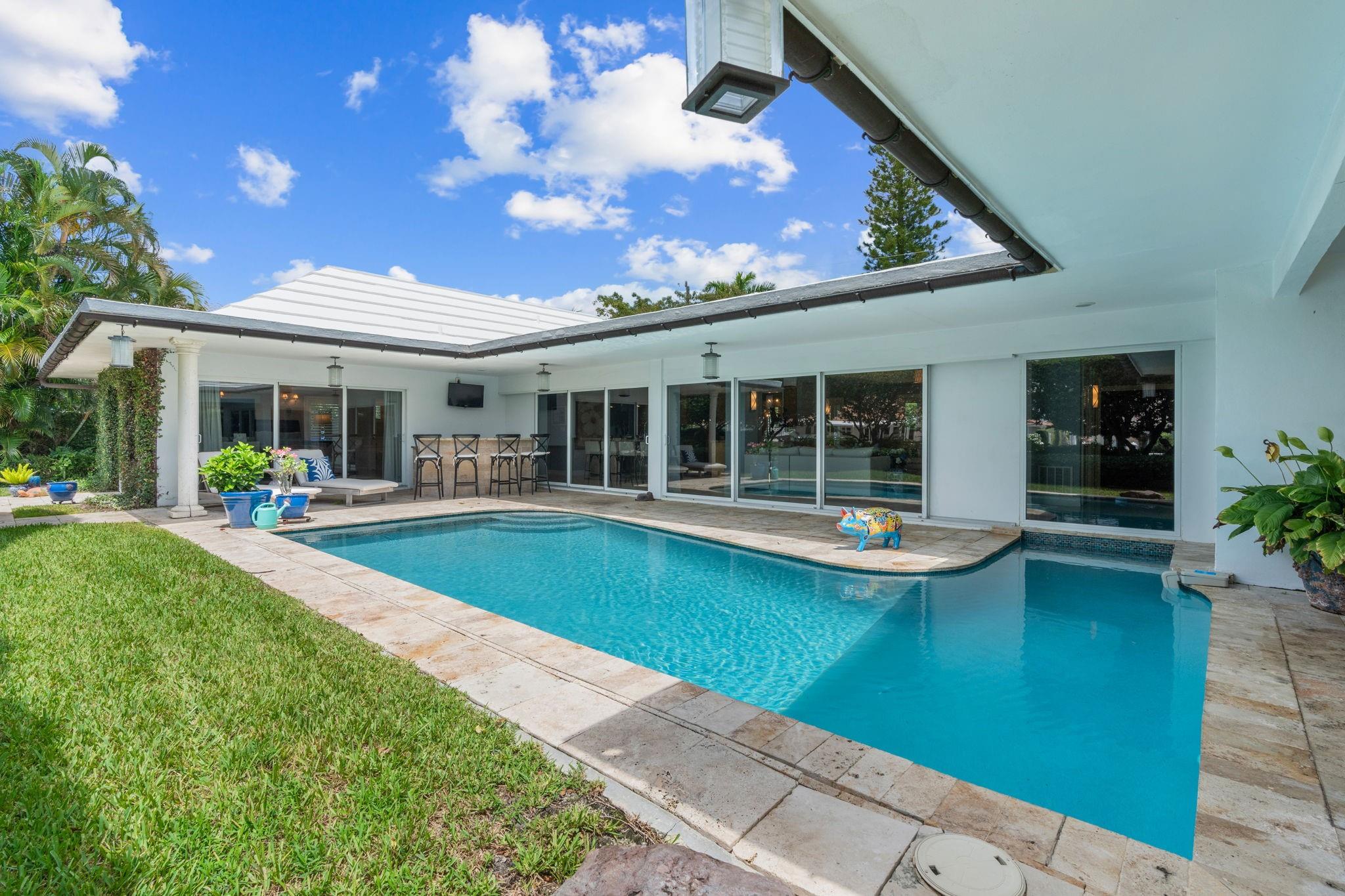 100' Waterfront Home In Sought-After Country Club Estates Offers The Best Of South Florida Living. This 3-Bed, 3.5-Bath Residence Features A Thoughtfully Updated Layout With Elegant Finishes Including Travertine And Wood Floors, Crown Moulding, And Tray Ceilings. The Chef’s Kitchen Boasts Custom Cabinetry, Granite Counters, And Premium Appliances. Enjoy Seamless Indoor-Outdoor Living With A Heated Pool, Outdoor Bar, And Tropical Landscaping. Dock Your Boat Out Back With Water/Electric And A Lift In Place. All Bedrooms Are Ensuite, Including A Luxurious Primary Suite With Water Views And Spa-Style Bath. Impact Windows/Doors, 2-Car Garage. A True Waterfront Gem!