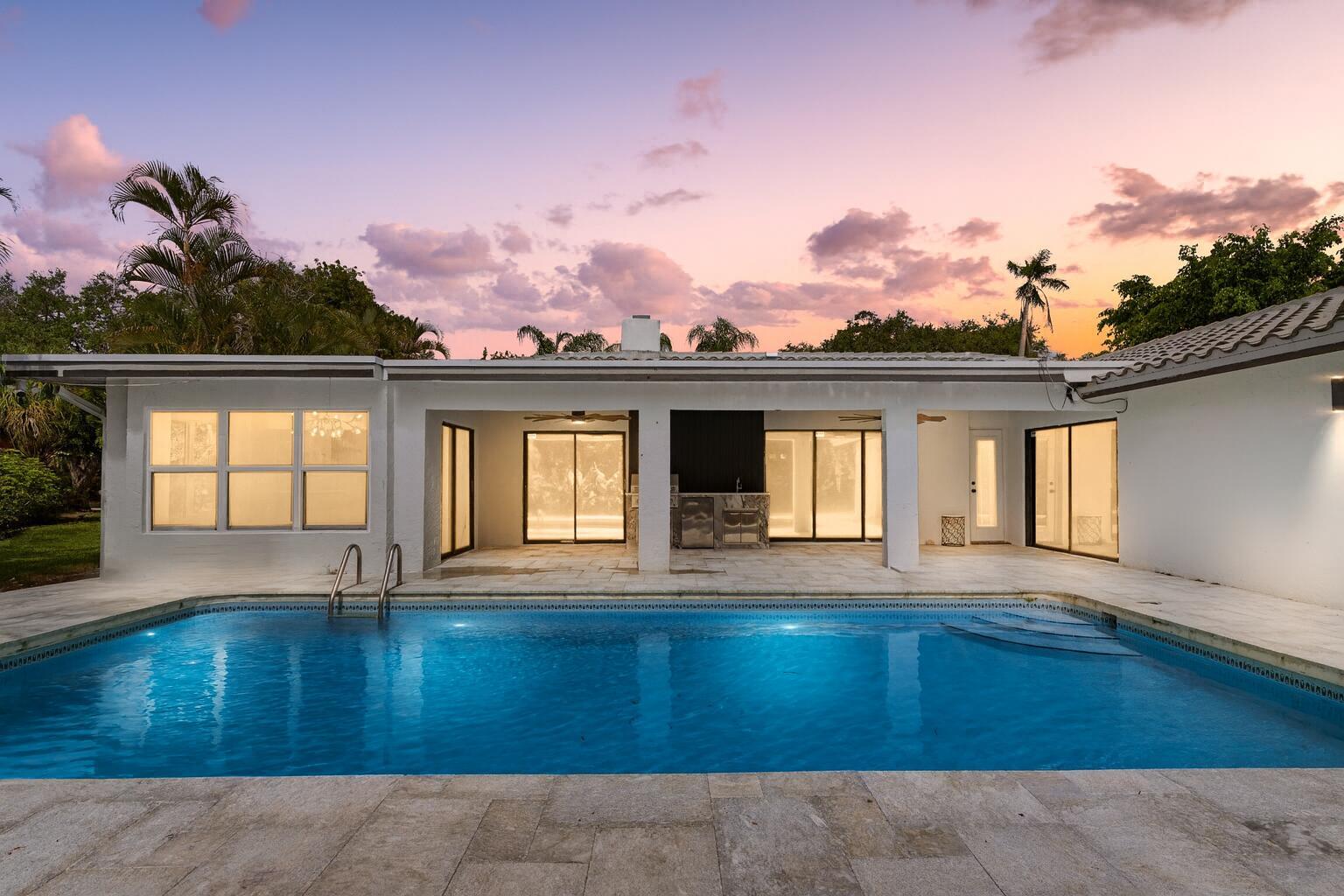ABSOLUTELY GORGEOUS FULLY RENOVATED WATERFRONT ESTATE | PRESTIGIOUS MAPLEWOOD | EXQUISITE HIGH-END QUALITY WORKMENSHIP | NEW 2024 ROOF | Bright Open Floor Plan | Woodburning Fireplace | Dramatic Vaulted Ceilings | Recessed LED Lighting | Custom Fans | Ceramic Tile Floors | Stunning Eat-In Kitchen | Quartz Counters | Tile Backsplash | Center Island & Breakfast Bar | Custom Wine Bar | Immaculate Lush Landscaping | Large Backyard with Custom Built Pool | Covered Patio | Full Outdoor Kitchen | Impressive Primary Suite | Pool Views | Walk-In Closet | Barn Doors | Ensuite | Soaking Tub | Glass Shower | All Hurricane Impact Windows | 2-Car GA & Storage | Great Location to Parks, Fine Dining, Shops & Turnpike | Top A+ Rated Schools | No HOA Fee | NEW AC 2023 & WH 2023 | PRESENT ALL OFFERS