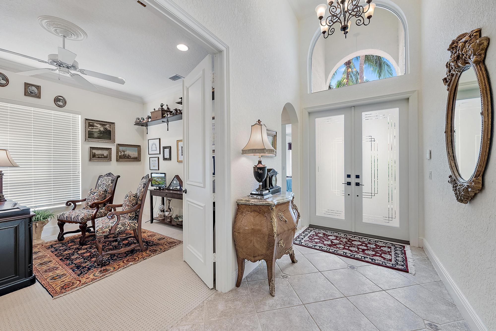 Located within walking distance of Ibis's world-class amenities, this meticulously maintained and highly upgraded 2300 SF, 2BR/2.5BA+Den home offers luxury, convenience and privacy. Boasting a NEW ROOF (2024), NEW HVAC (2024) and Accordian Hurricane shutters, this home is move-in ready! NEW IMPACT GLASS double front doors installed in 2022, as well as an Impact Glass window above the front doors. This home boasts a private backyard that has been completely reimagined with turf, lush landscaping, and a remote-controlled retractable screen, making it the perfect place for private relaxation and dining al fresco--day or night. The kitchen boasts a GE CAFE Stainless appliance package plus a replaced sink.