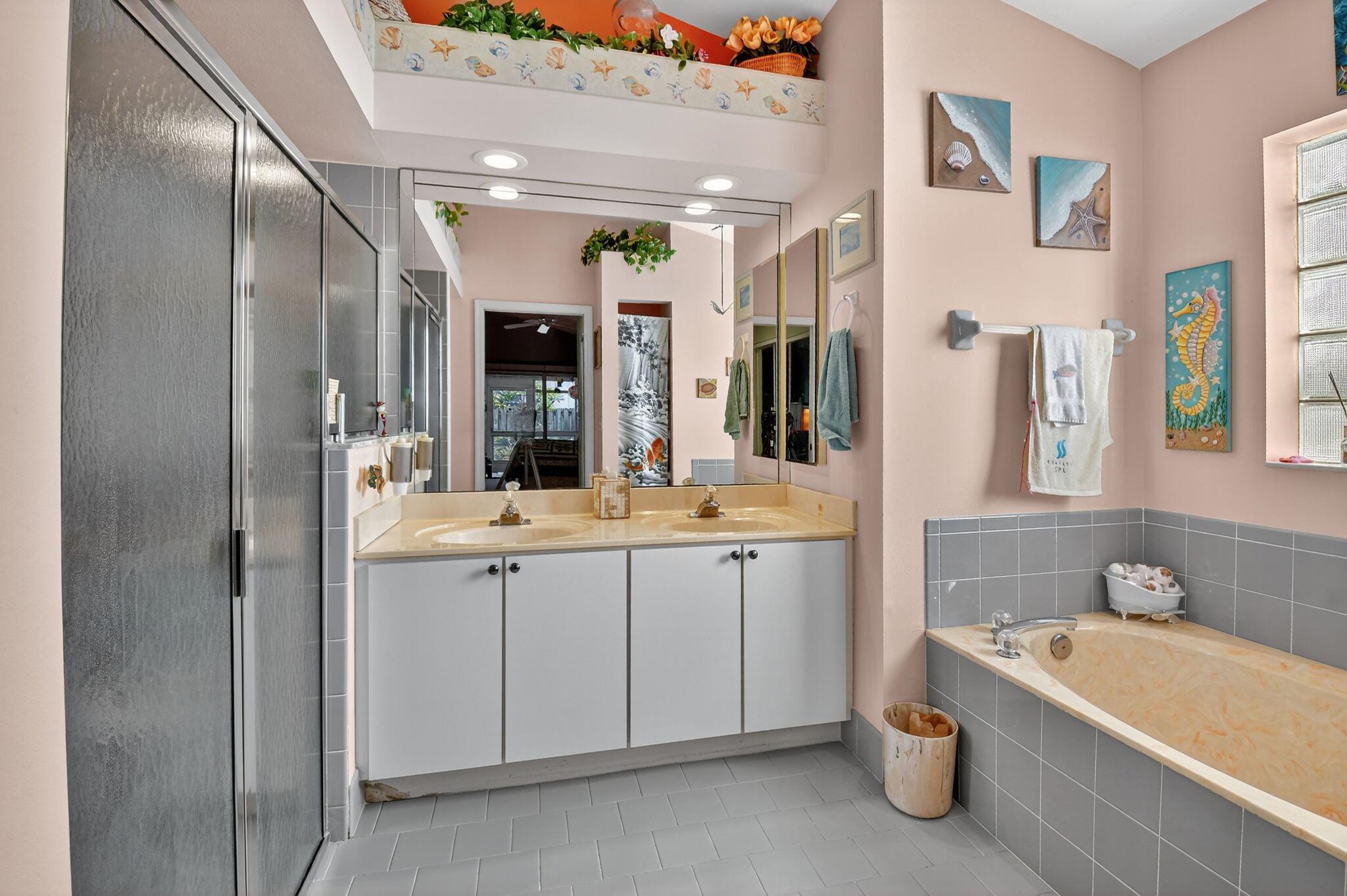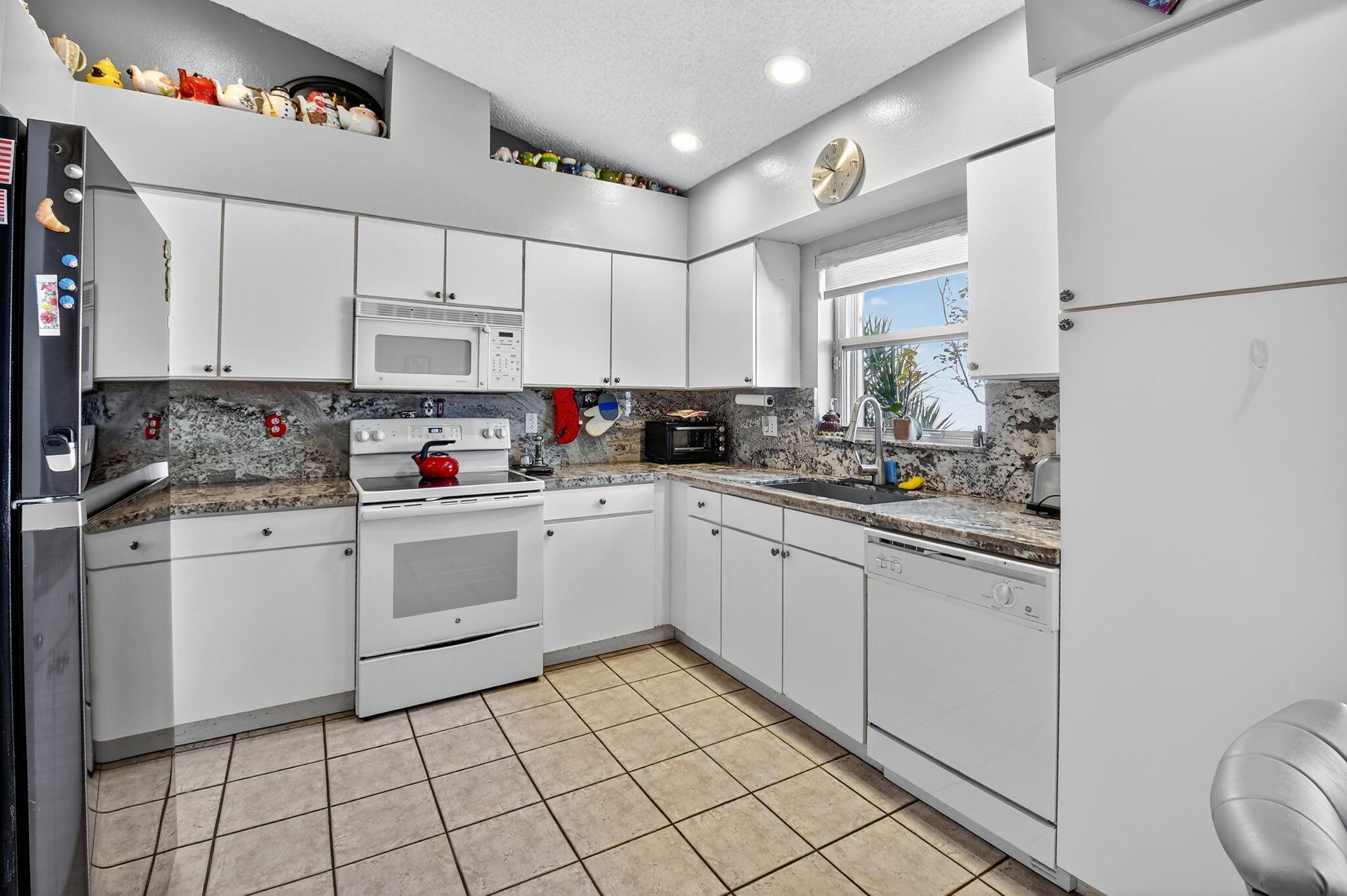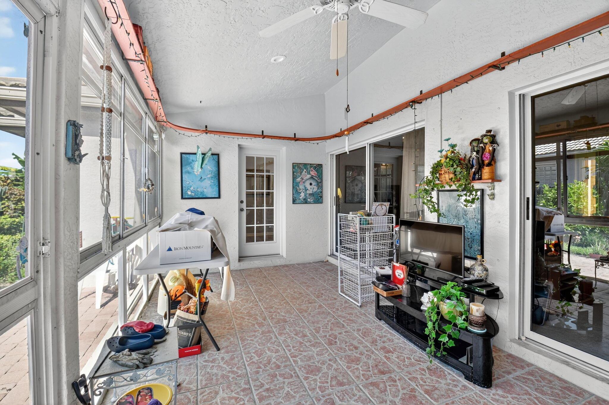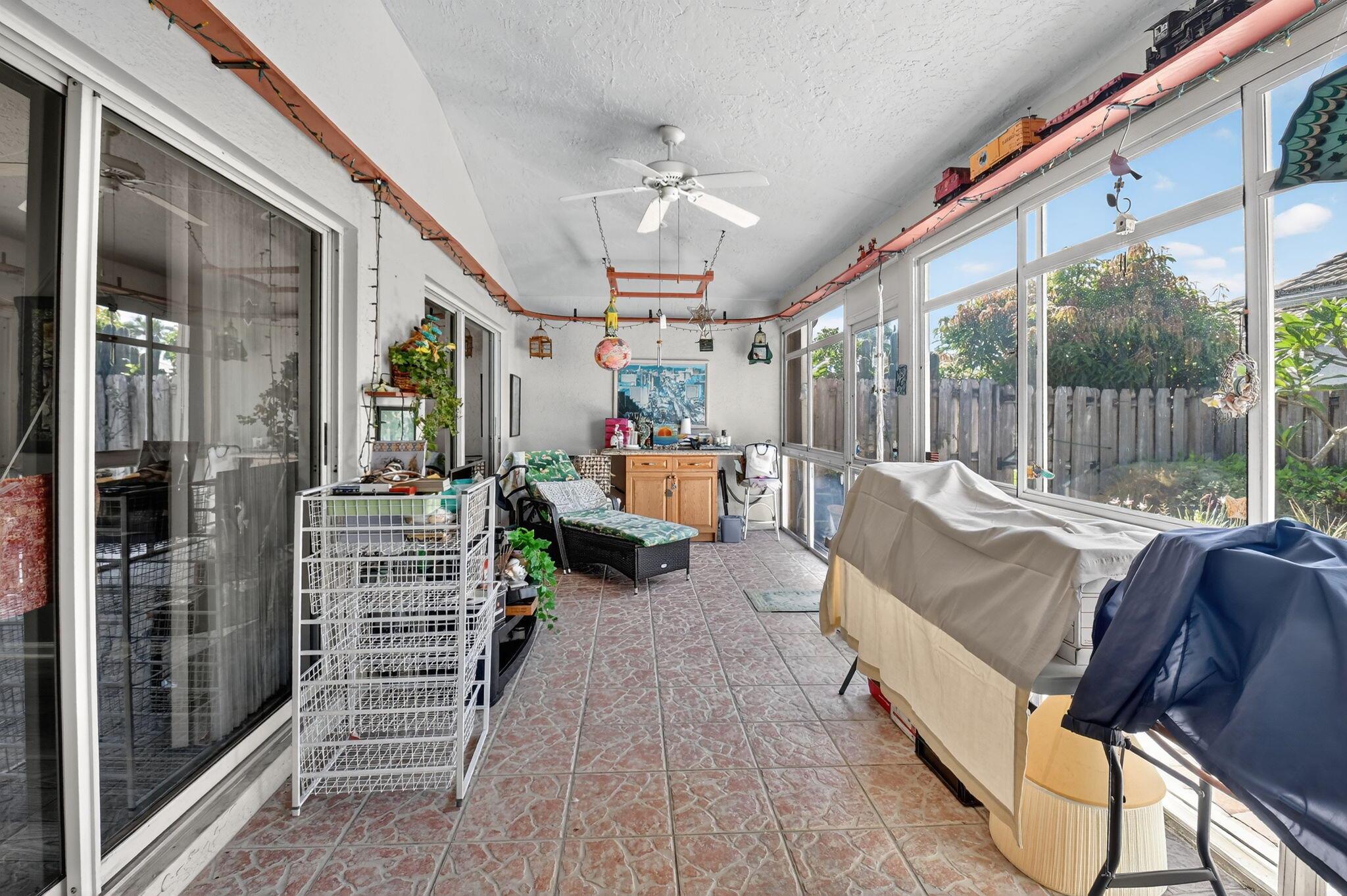 Elegant, well-maintained 1 owner home with 4 bdrms,& 3 baths. Spacious, open floor plan with high ceilings and large windows. Full size kitchen with lots of counter space. Master bdrm features a walk in shower, stand alone tub & 2 walk in closets. .All bedrooms en suite with pocket doors for privacy.. All showers walk-in. Accordion shutters, all around, fenced in yard, enclosed patio. Close to shopping and 5 miles from Downtown Delray.