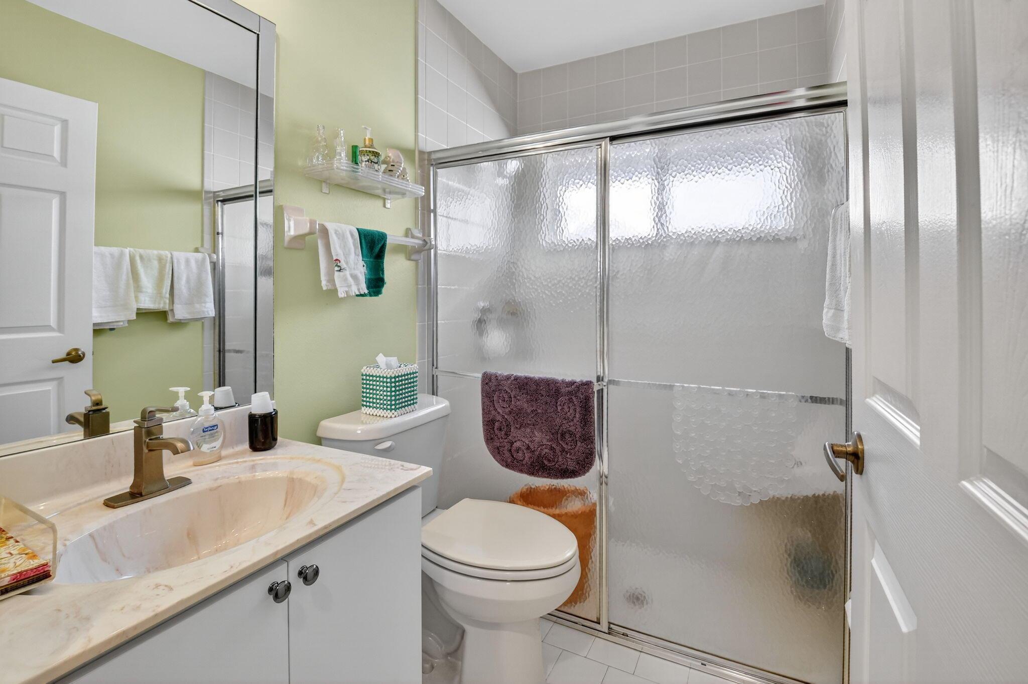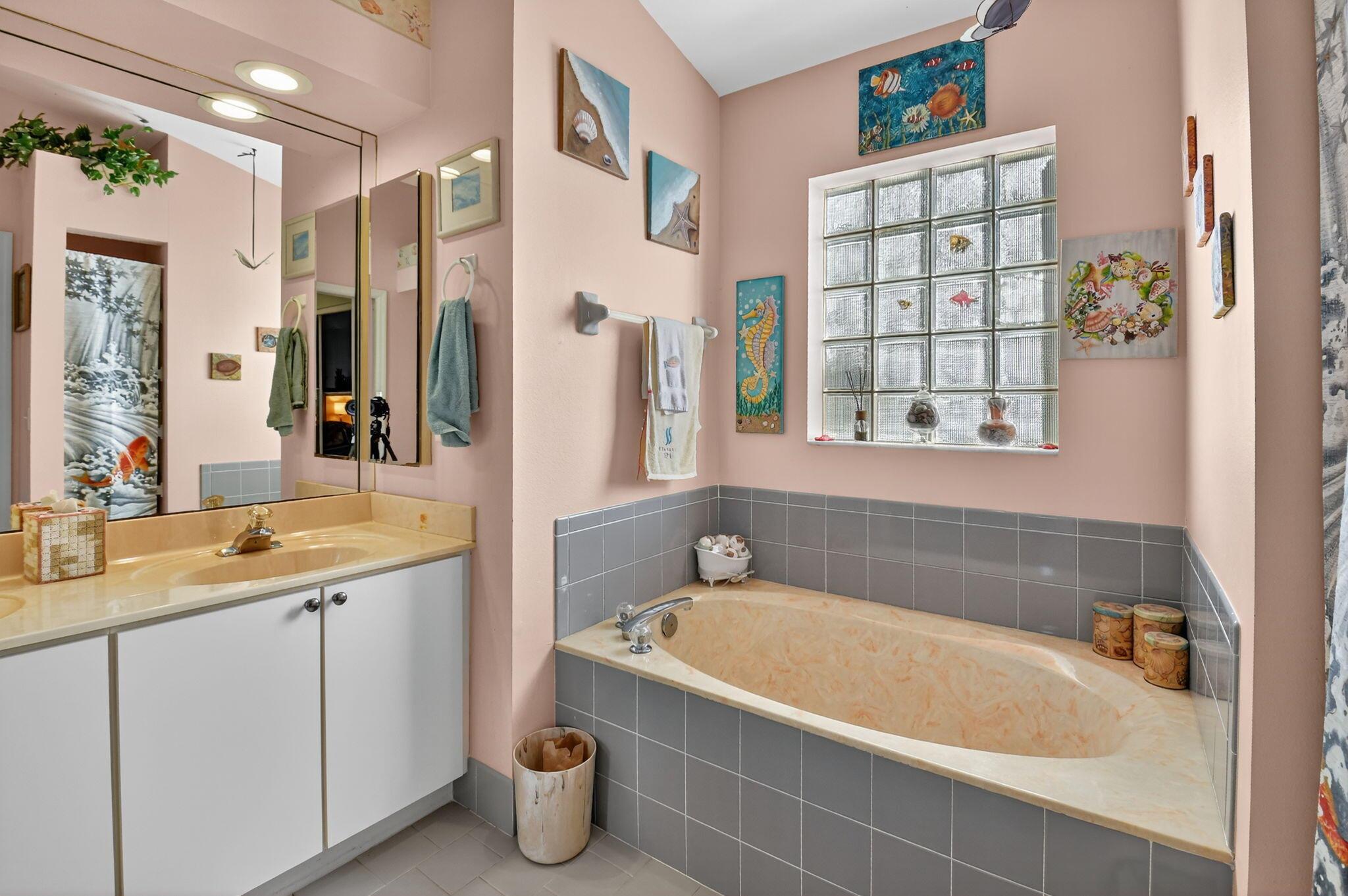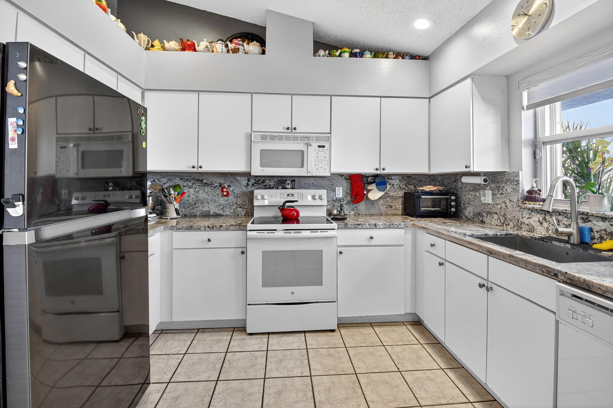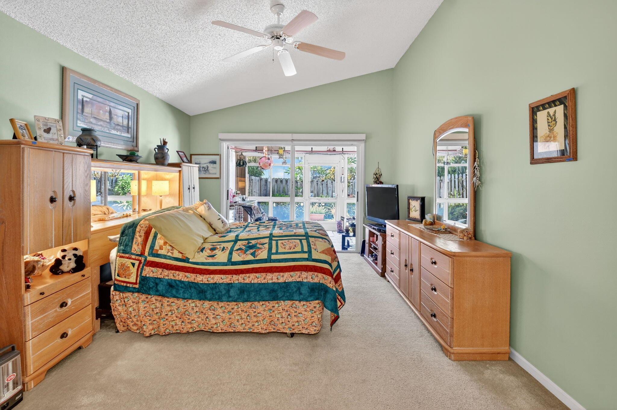 Elegant, well-maintained 1 owner home with 4 bdrms,& 3 baths. Spacious, open floor plan with high ceilings and large windows. Full size kitchen with lots of counter space. Master bdrm features a walk in shower, stand alone tub & 2 walk in closets. .All bedrooms en suite with pocket doors for privacy.. All showers walk-in. Accordion shutters, all around, fenced in yard, enclosed patio. Close to shopping and 5 miles from Downtown Delray.