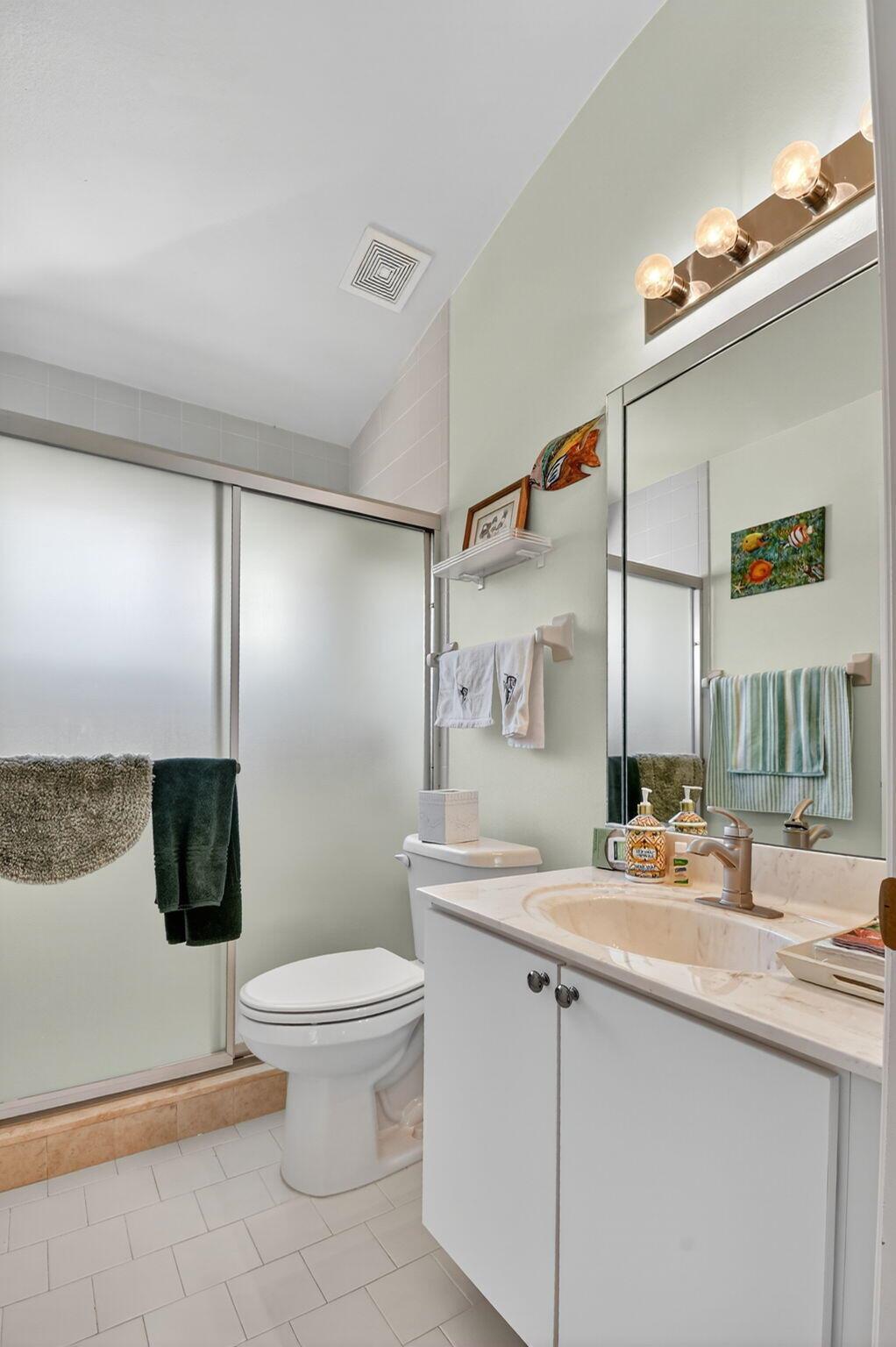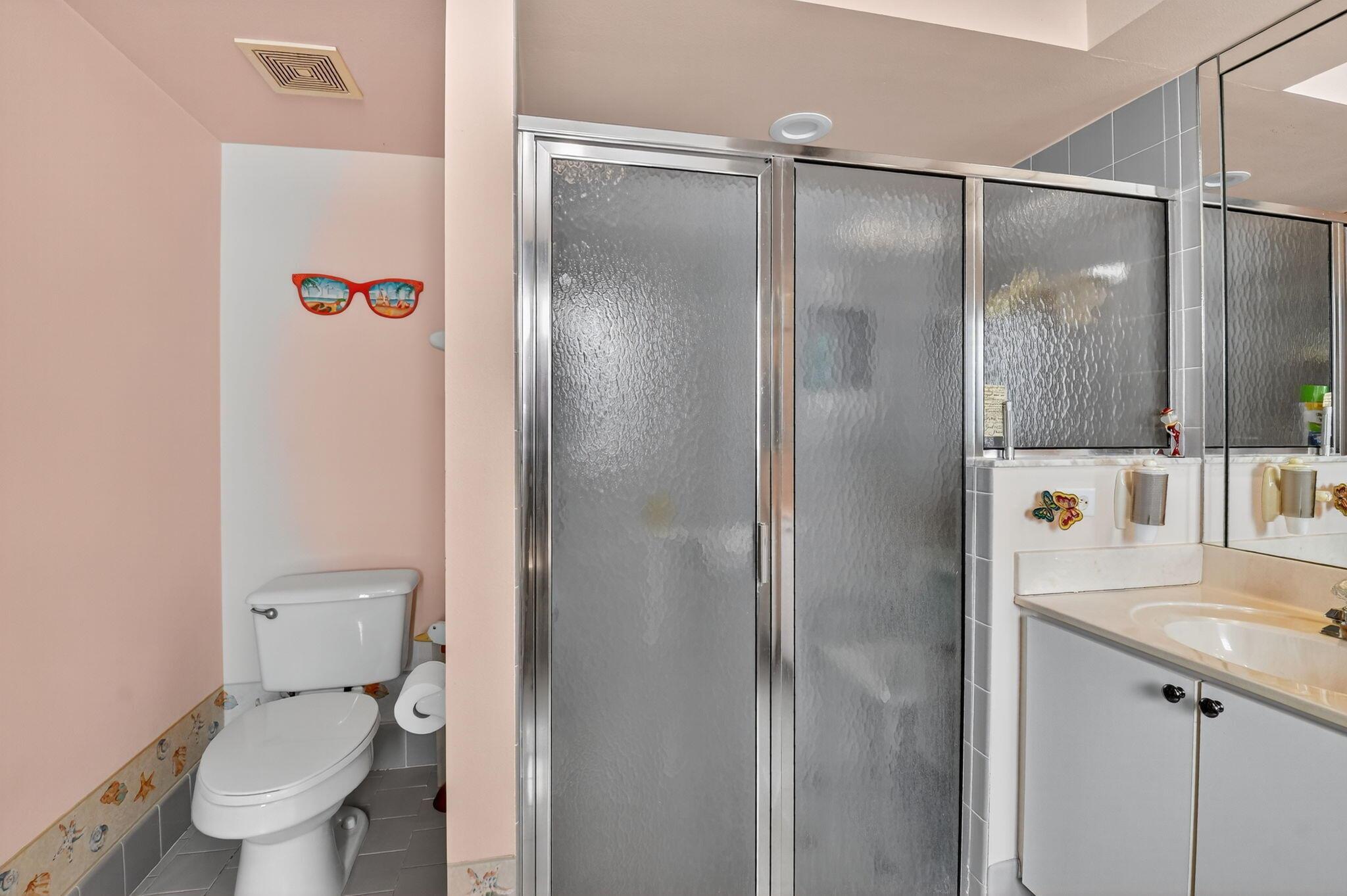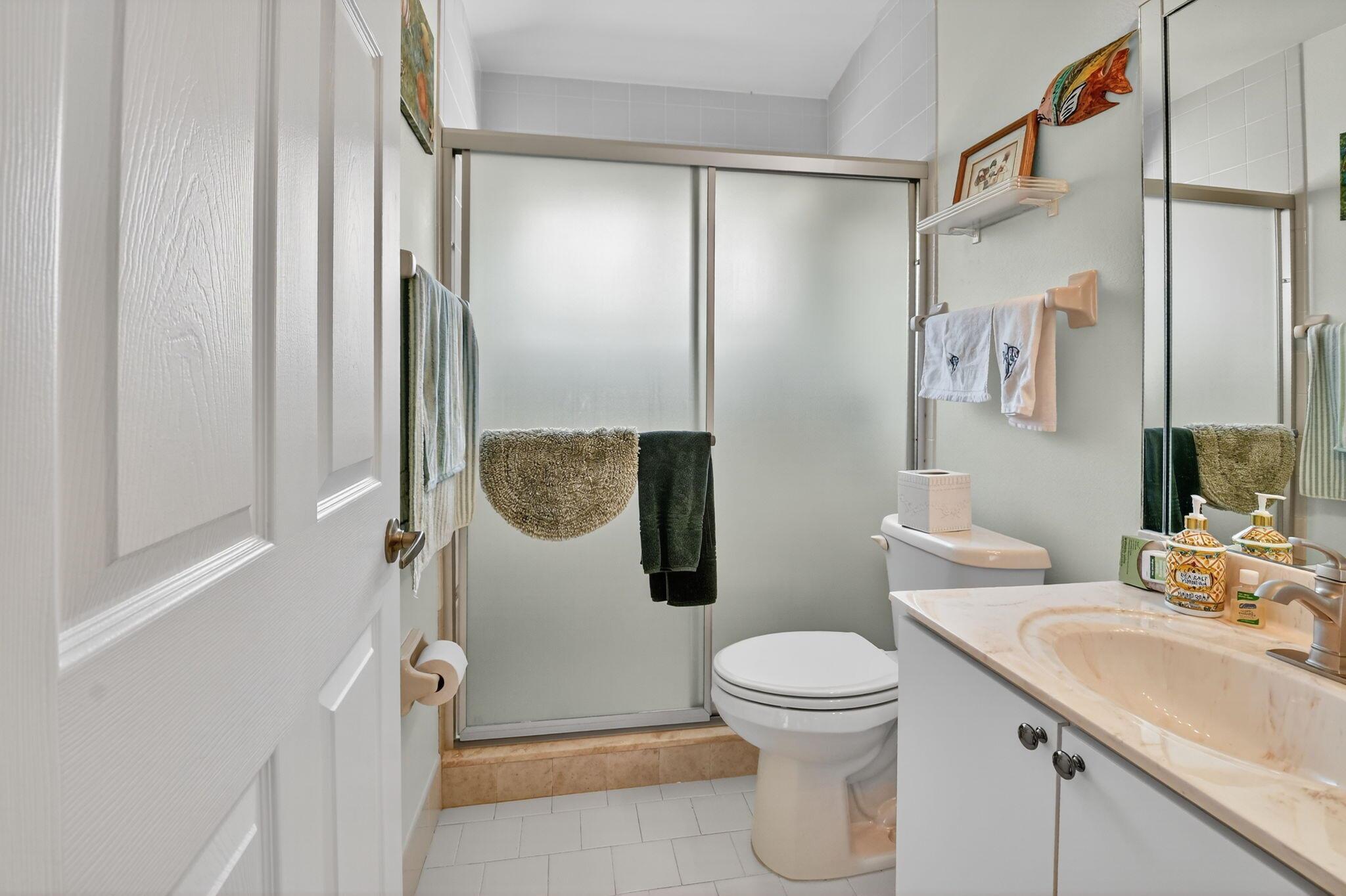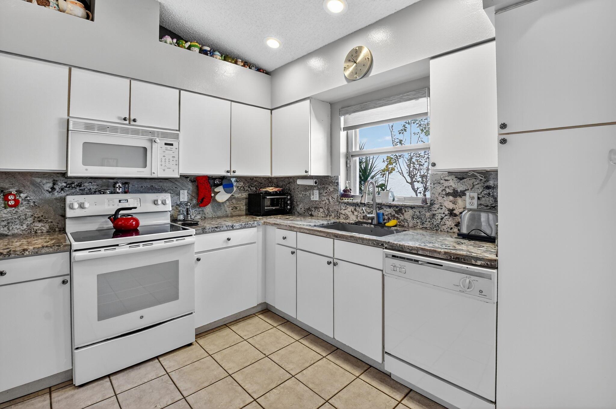 Elegant, well-maintained 1 owner home with 4 bdrms,& 3 baths. Spacious, open floor plan with high ceilings and large windows. Full size kitchen with lots of counter space. Master bdrm features a walk in shower, stand alone tub & 2 walk in closets. .All bedrooms en suite with pocket doors for privacy.. All showers walk-in. Accordion shutters, all around, fenced in yard, enclosed patio. Close to shopping and 5 miles from Downtown Delray.