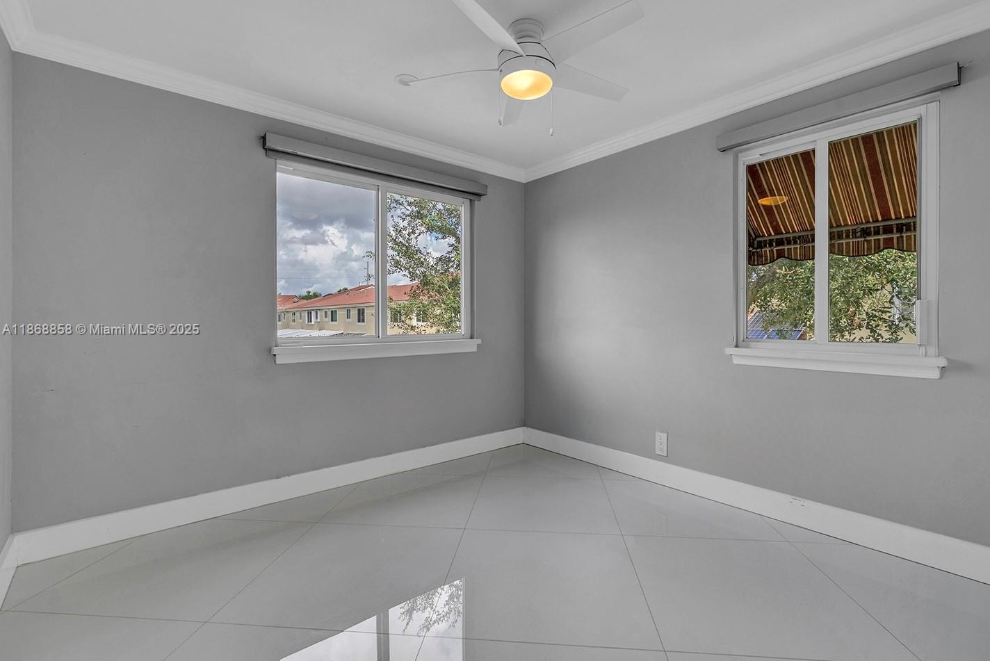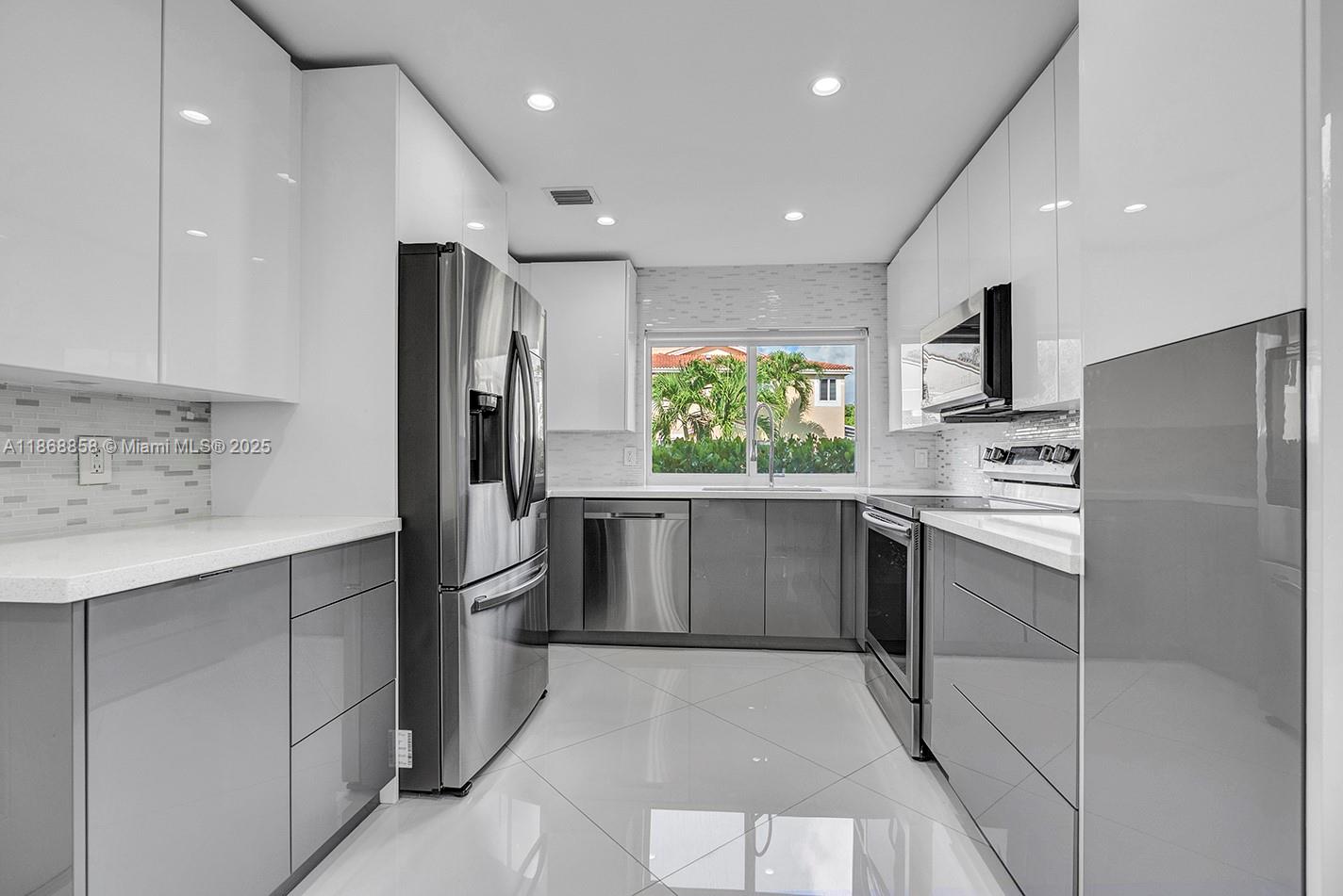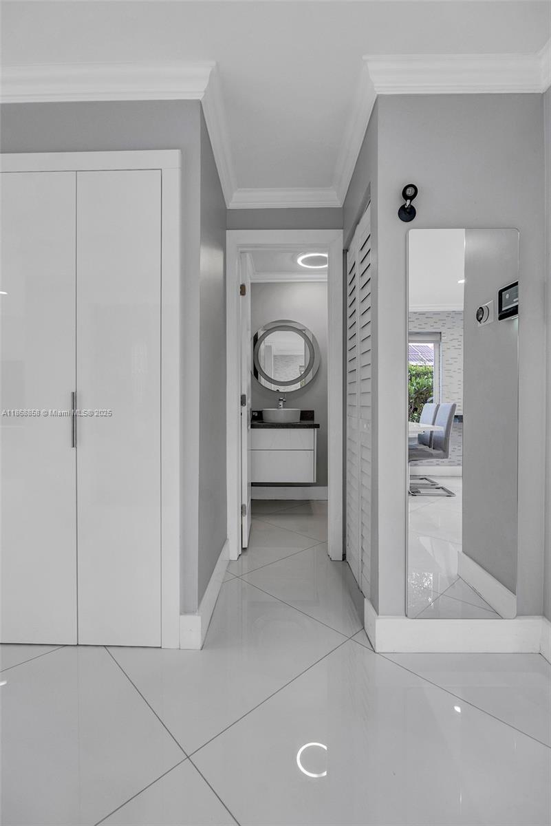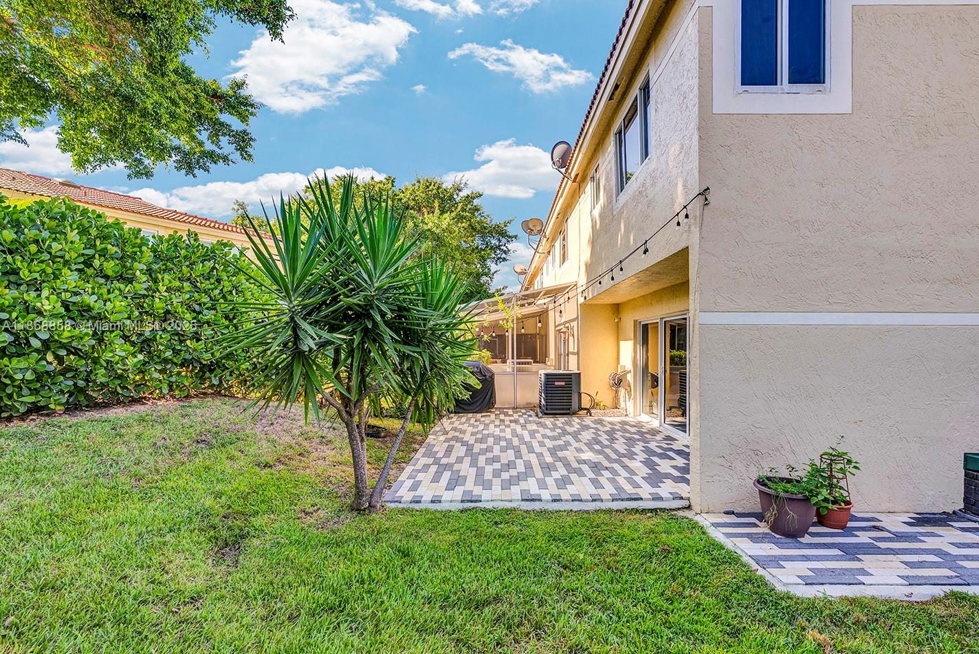 Impeccably maintained 3-bedroom, 2.5-bath home with 1-car garage, corner lot in Deer Creek. Spacious split floor plan, tile floors throughout, large master walk-in closet. Freshly painted interior. Upgrades include Smart Home system, hurricane-impact windows, crown molding, smart refrigerator, Tesla Supercharger in garage, solar panels (2021), new plumbing and pavements around the home, updated electrical, newer garage motor, A/C (2021), water heater (2020), roof (2016). Quiet corner lot, backyard with banana tree and quiet outdoor space. Pet friendly (2 pets up to 80 lbs, breed restrictions). Close to supermarkets, shops, highways, and less than 5 miles to the beach. Sold unfurnished, furnished photos for reference only.