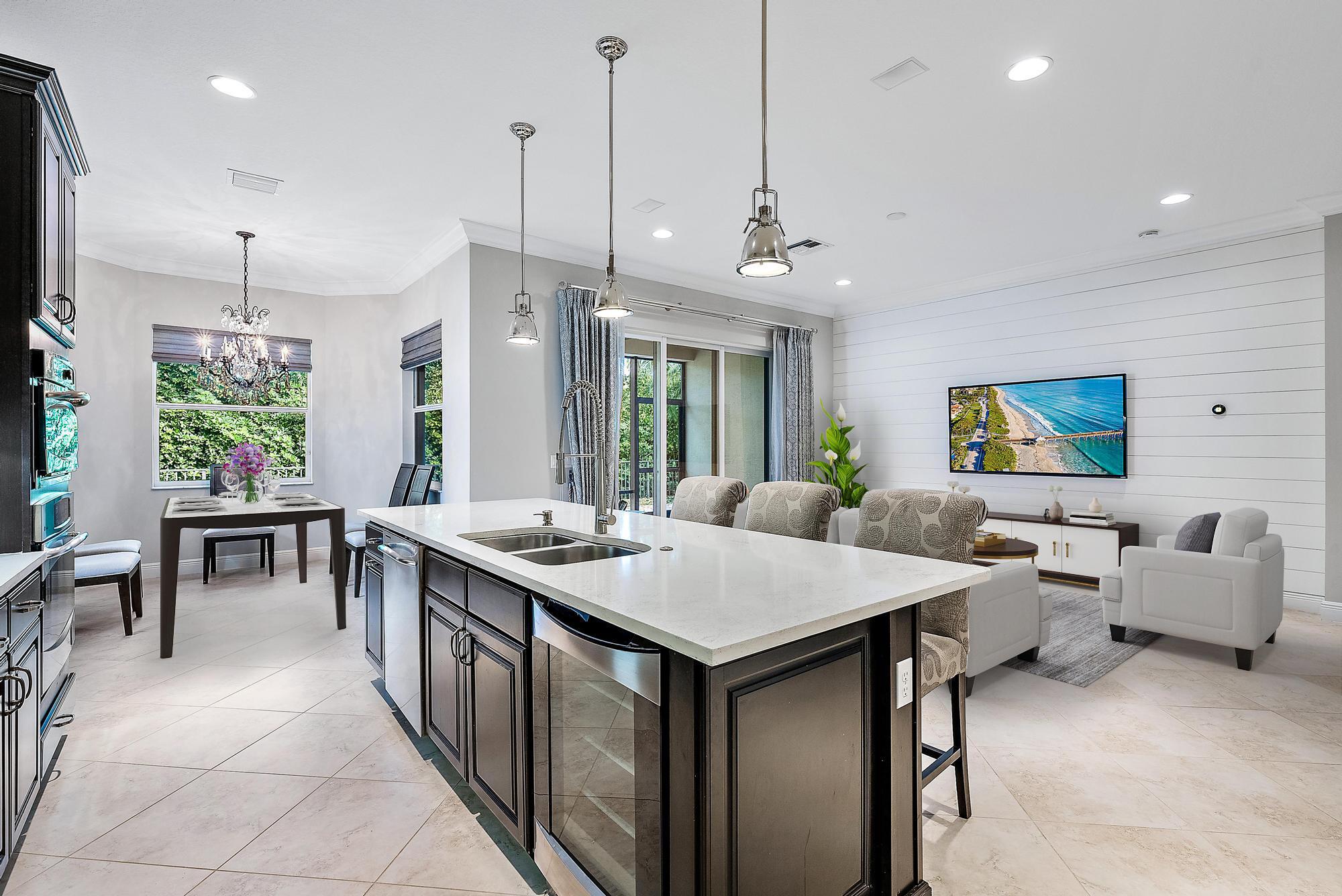 Welcome to 12157 Aviles Circle, located in the prestigious gated community of Paloma. This sophisticated two-story residence combines timeless elegance, modern convenience, and over $200,000 in carefully curated upgrades that elevate everyday living. Built in 2013 by Kolter Homes, the property showcases solid CBS construction, full impact glass, and advanced smart-home features including Nest thermostats, Ring cameras, MY Q garage control, and a remote-access ADT system.From the moment you step through the foyer, the attention to detail is undeniable. The open floor plan flows seamlessly from the formal living and dining areas--with elegant tile inlays--to the chef's kitchen, featuring a dramatic 10-foot quartz island, GE Profile appliances with built-in refrigerator
