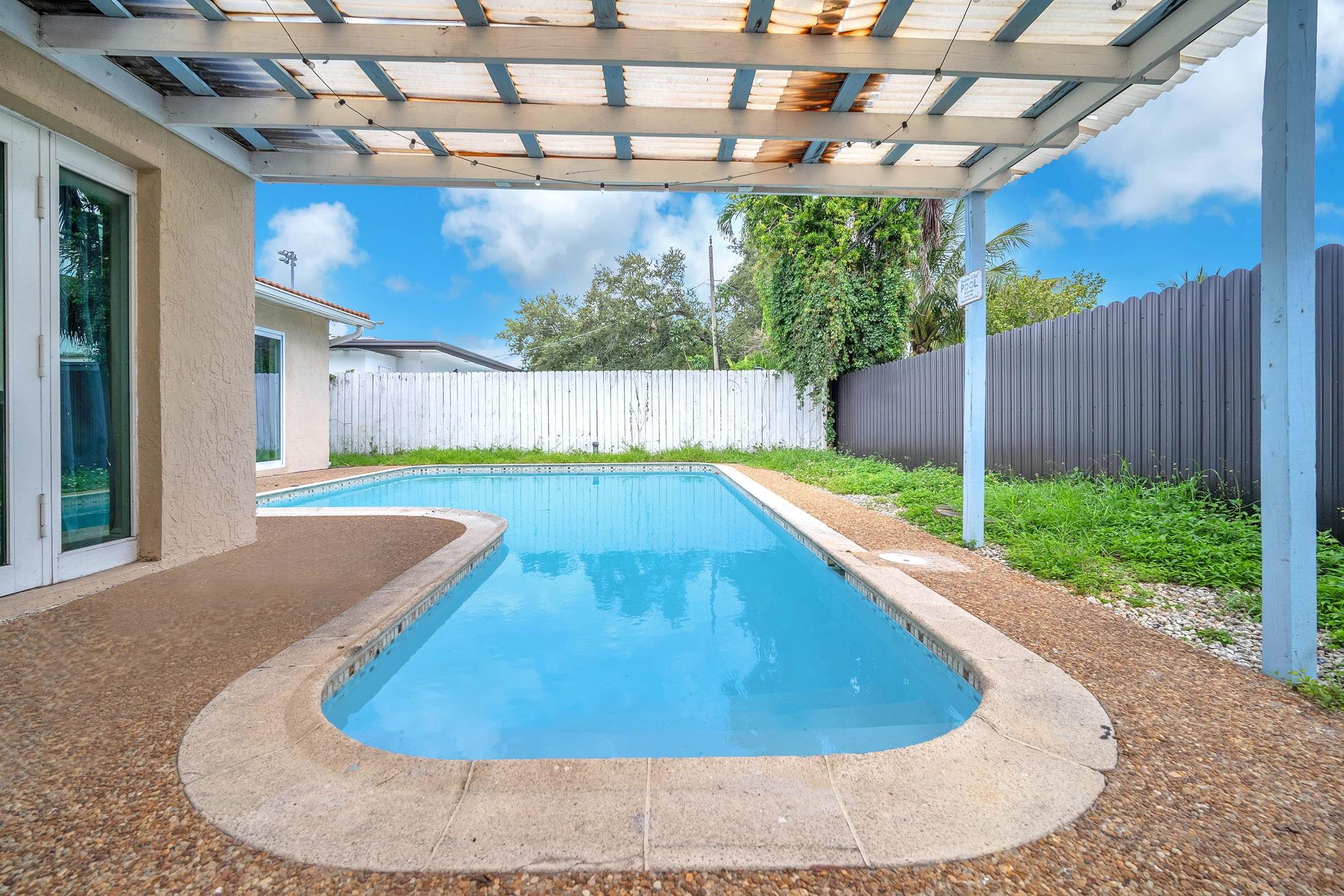 This 3-bedroom, 2-bathroom home seamlessly combines style and functionality. Enjoy a newly renovated kitchen with modern cabinetry, sleek countertops, and stainless-steel appliances. Spacious, light-filled living areas and comfortable bedrooms with ample storage enhance everyday living. Outside, a private backyard with a pool and patio offers a perfect retreat. With a new AC system and a vacation rental license, this move-in-ready home is designed for comfort and income potential.