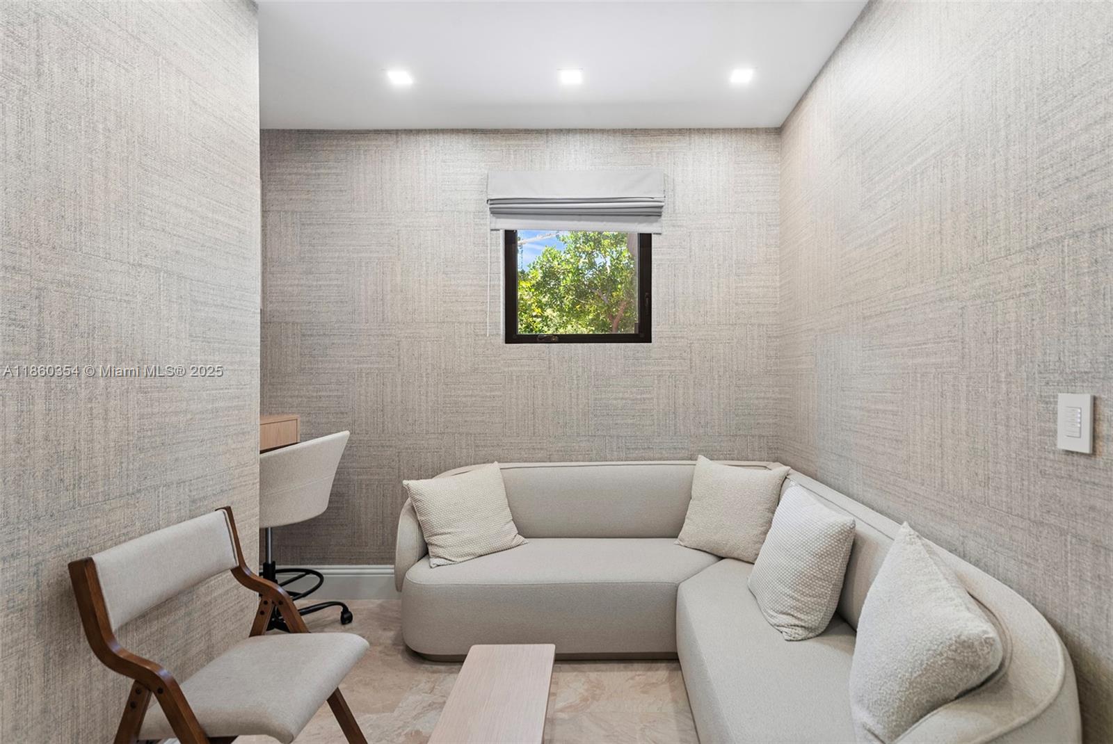 Completely reimagined and renovated in 2022, this Bal Harbour Village estate combines modern luxury with timeless elegance. With over 6,200 sq ft, the 6-bedroom, 6.5-bath residence features soaring ceilings, a private elevator, gourmet kitchen with premium appliances, and a fully equipped gym. The primary suite includes a spa-inspired bath and dual custom walk-in closets. Designed for comfort and entertaining, enjoy seamless indoor-outdoor living with a heated saltwater pool, spa, covered terrace, and landscaped grounds. Steps from Bal Harbour Shops and minutes from Sunny Isles, Surfside, and Miami Beach, this home offers access to beaches, top schools, a private marina, and fine dining. Furniture may be purchased separately.
