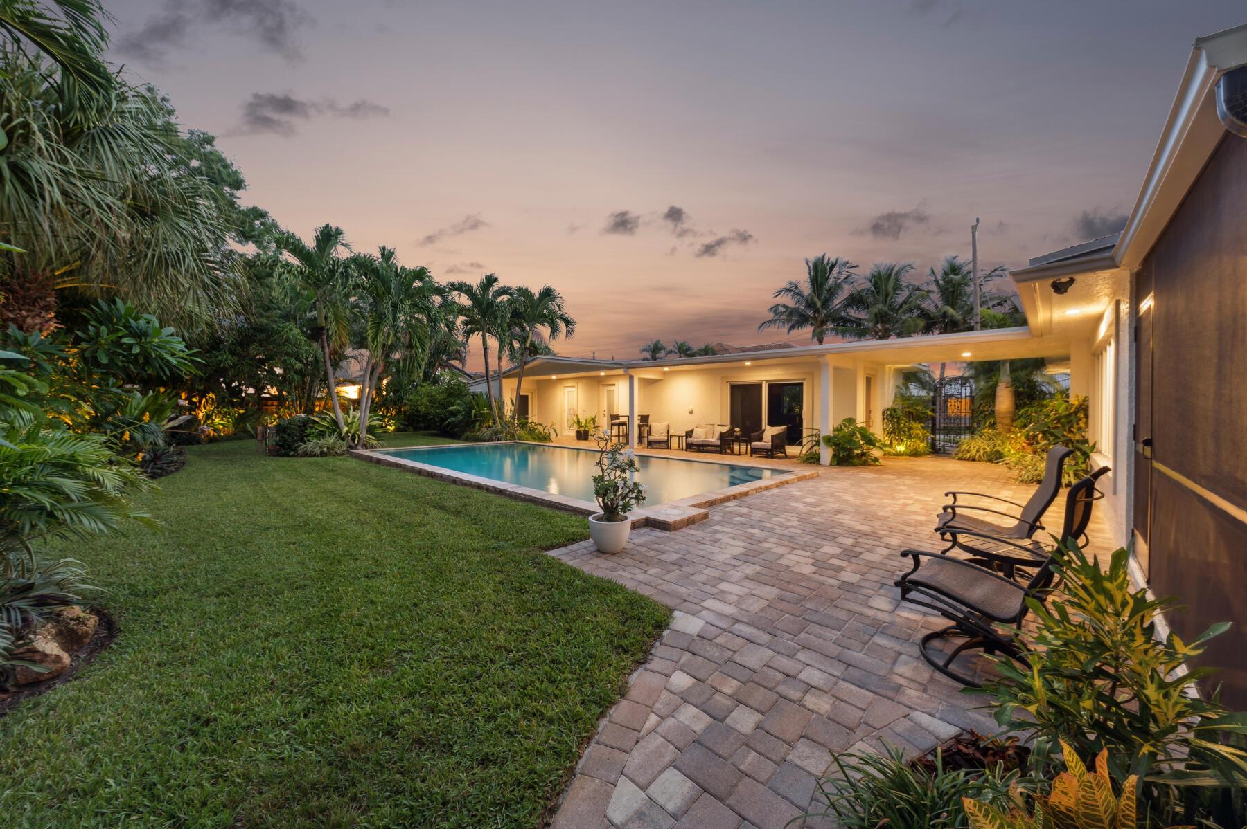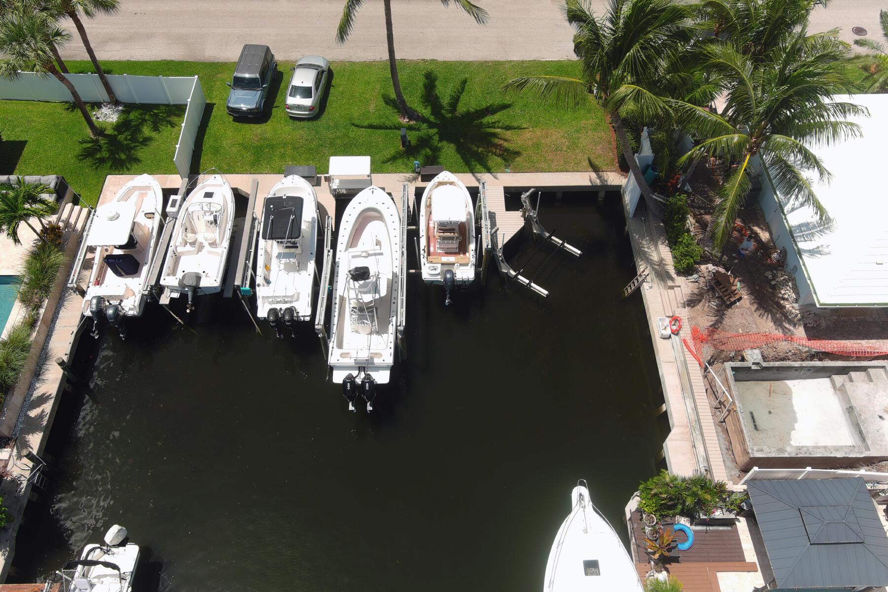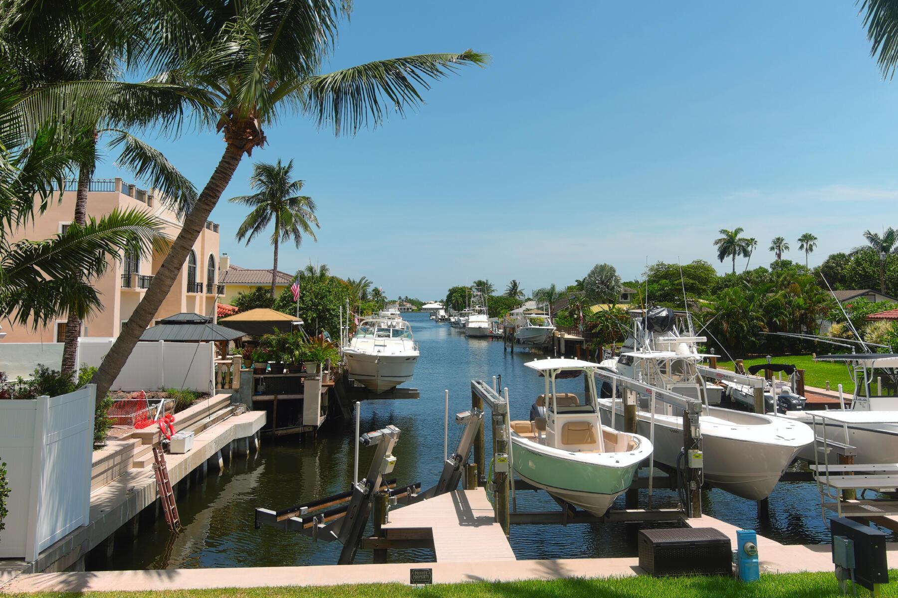 Multi-generational, Investor friendly, Boater's paradise and coastal living come together in this rare Town of Hypoluxo offering--two homes on a double lot in this intracoastal community with a private pool, and deeded boat slip with lift just minutes to the Boynton Inlet for ocean access. Perfect for multi-generational needs or investment opportunity, this versatile property Includes a main residence with 3 bedrooms, 2 bathrooms, impact glass, screened-in patio, laundry room, and an oversized 2-car garage with abundant storage. The separate guest house / 2nd home / mother-in-law home features 2 bedrooms, 1 bath, full kitchen, laundry, porcelain wood-like tile, impact glass, and a flex space and storage area. Outdoors, enjoy a sparkling pool in an ultra private and serene yard