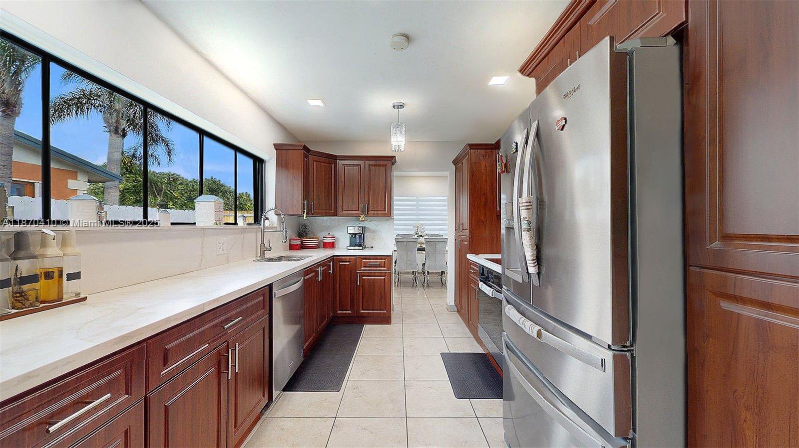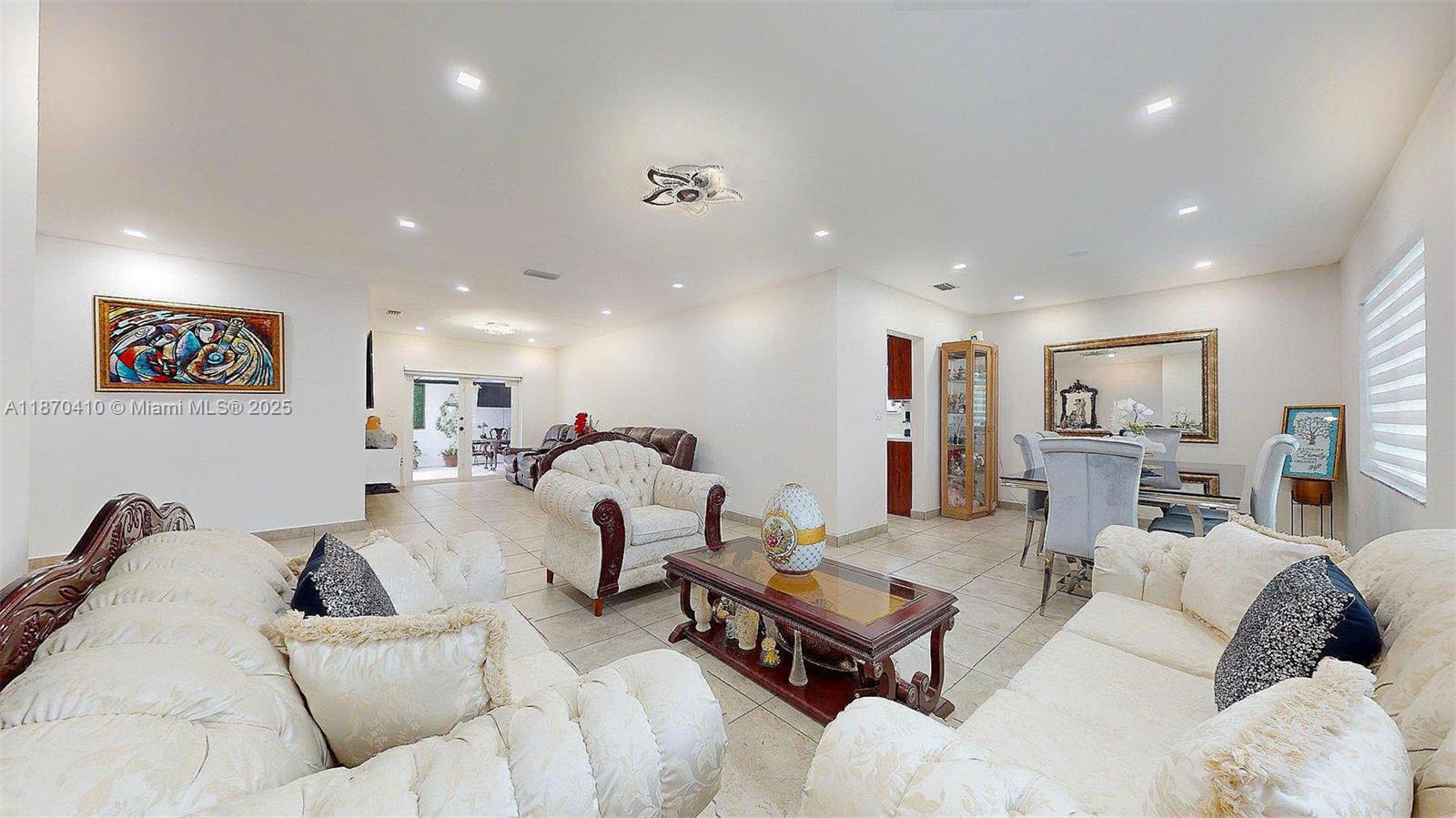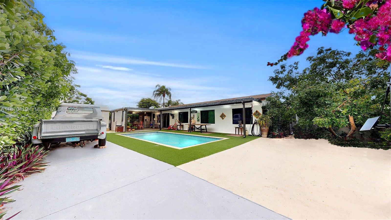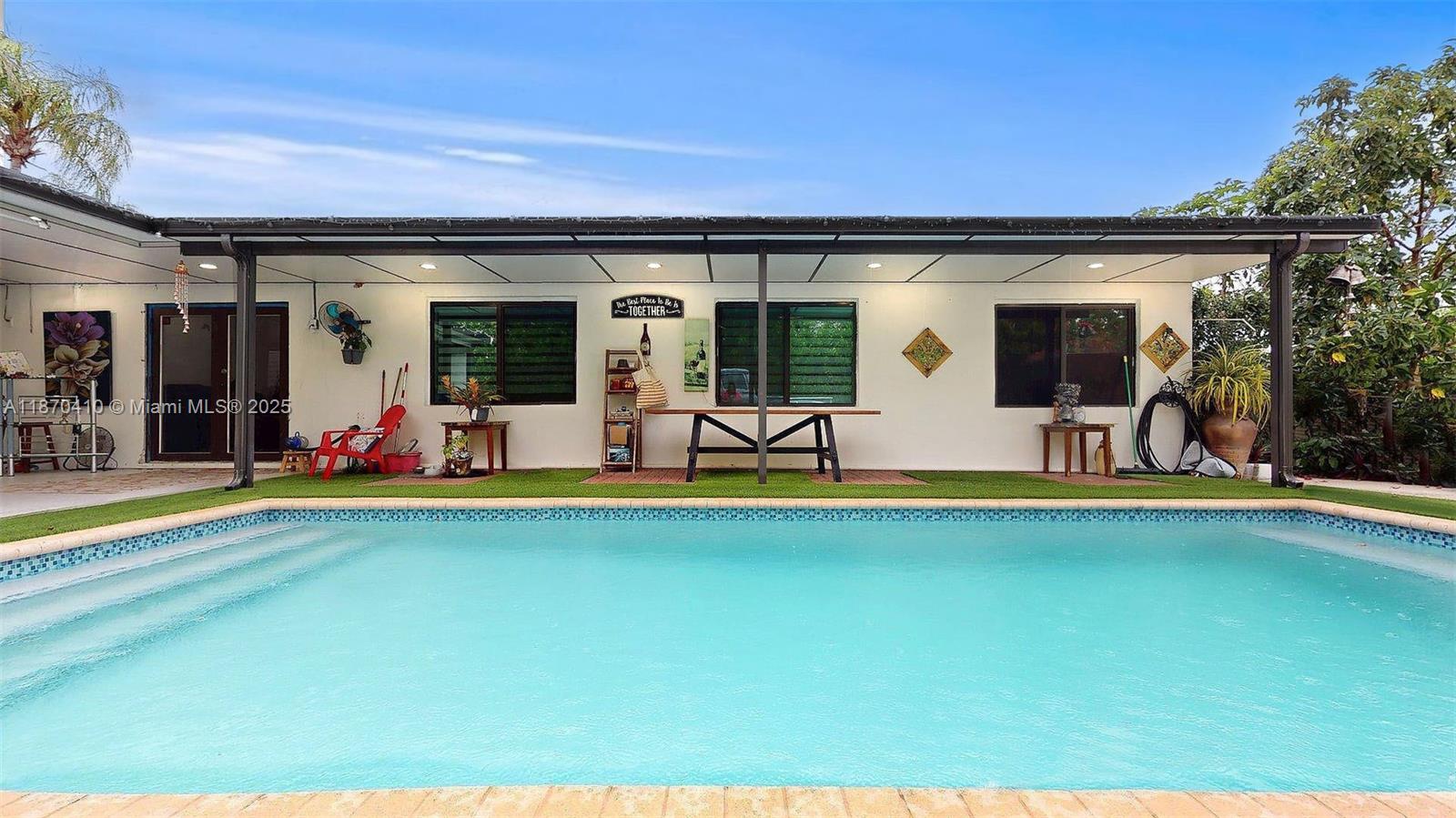 This is the perfect property for family gatherings, enjoying in the pool under the Florida sun and having access to an outside equipped cool and spacious kitchen with stainless steel appliances. The home has the master bedroom with private entrance (another great option for rental income). Impact windows, providing security, energy efficiency, and peace of mind year-round. As another added value, the home has all new plumbing under code, a major upgrade that ensures confidence and long-term durability. All bathrooms and kitchens (outside & inside) are updated. Currently 4th bedroom temporarily opened for larger space- seller will reinstall wall prior to closing.