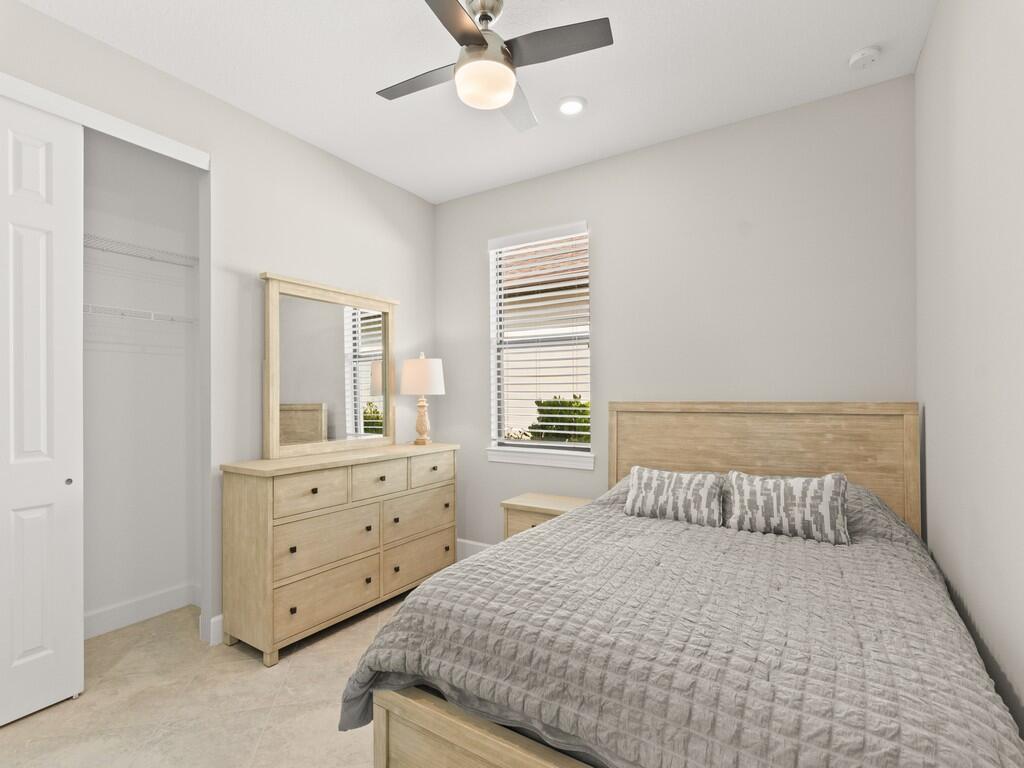 Vacation everyday as you enter this active community just a 10 min drive to the beach! Embrace the ease of new construction upon approaching this 2022 built CBS modern home on a corner lot, designed with comfort and functionality in mind. Delight your eyes as you step into the foyer to an inviting open concept feat 4Bds, 3 Full baths and a huge covered/screened extended Lanai. With a private en-suite for guest this charming home offers Impact windows, 8ft doors, Quartz countertops, kitchen Island, Diagonal Tile, microwave drawer, range hood, crown molding, 42 inch cabinets, epoxy garage plus more. Miles of New roads and sidewalks just outside the community to enjoy long walks, biking, jogging and more. Less than 5 mis to Publix plaza and restaurants. Immaculate condition Move-In ready!