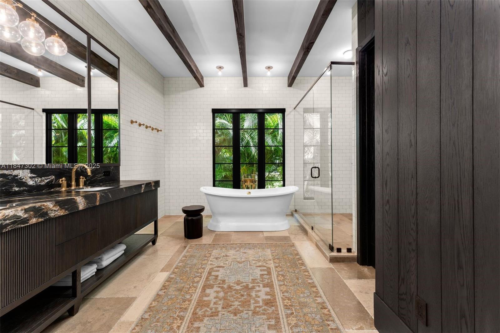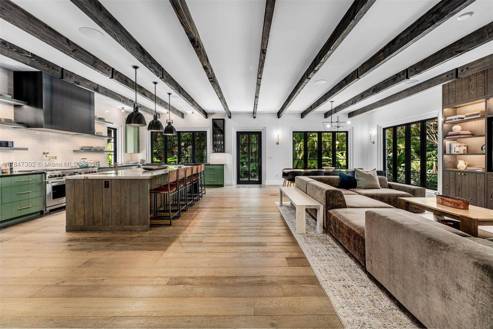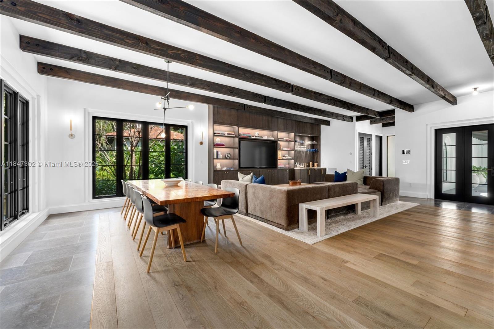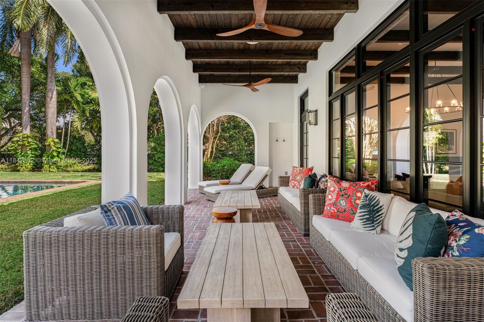 A one-of-a-kind Grand Classic Montecito Estate in Ponce Davis. Offering privacy, sophistication, and modern convenience, this 9,449 Sq Ft, 7BD 6BA home by architect Jenifer Briley and designer Deborah Houston boasts lush landscaping with mature trees and a front entrance courtyard. Inside are custom architectural details, reclaimed French oak floors, custom high-impact Marvin windows and Signature Doors, and a large fireplace, adding timeless charm. A chef’s kitchen features top-tier appliances, and the spacious principal suite offers a spa-like bath and custom walk-in closet. Outdoor spaces include a saltwater pool with jacuzzi, summer kitchen, and covered terraces with exposed wood beams. Smart home automation, a 3-car garage, and luxurious finishes complete this exceptional retreat.