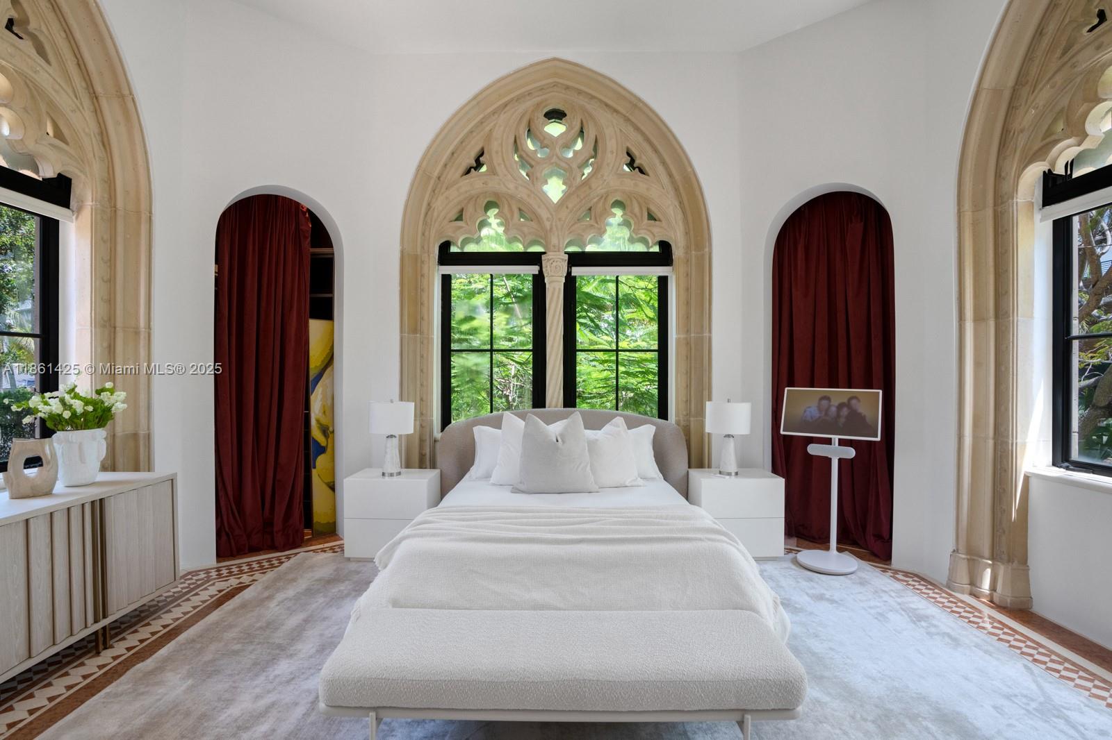 A fairytale castle in Coconut Grove, designed by Ralph Portuondo, where Gothic grandeur meets modern sophistication. The dramatic Great Hall boasts 30-ft vaulted ceilings, stone fireplaces & antique stained-glass, complemented by French cast bronze chandeliers and Jerusalem stone floors. Highlights include a La Cornue chef’s kitchen, elevator, keystone-edged infinity pool, cement dock, rooftop sundeck & terraces with water views. Landscaping by Fernando Wong, Murano chandeliers by B.F. Signoretti, and custom metalwork fencing by Belt Designs add bespoke elegance. Plus, independent living quarters with kitchen & a 3,000 sq/ft unfinished basement complete this one-of-a-kind estate.