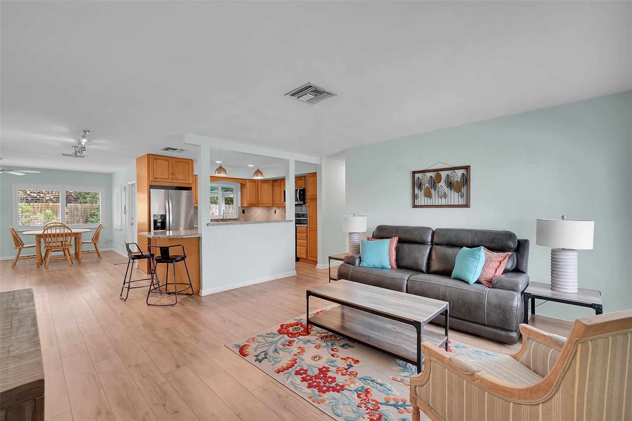 Move right in to this updated 3BR/2BA home in the desirable Norwood community of Pompano Beach. Offering 1,570 sq ft, this property features a new roof (2023), new impact windows (2023), newer AC, and new impact rated garage door. The open kitchen has stainless steel appliances, granite counters, and light cabinetry. Comfortable layout with two sitting areas, plus a large backyard with patio and plenty of room for a pool. Prime east side location just minutes to beaches, shopping, and dining.