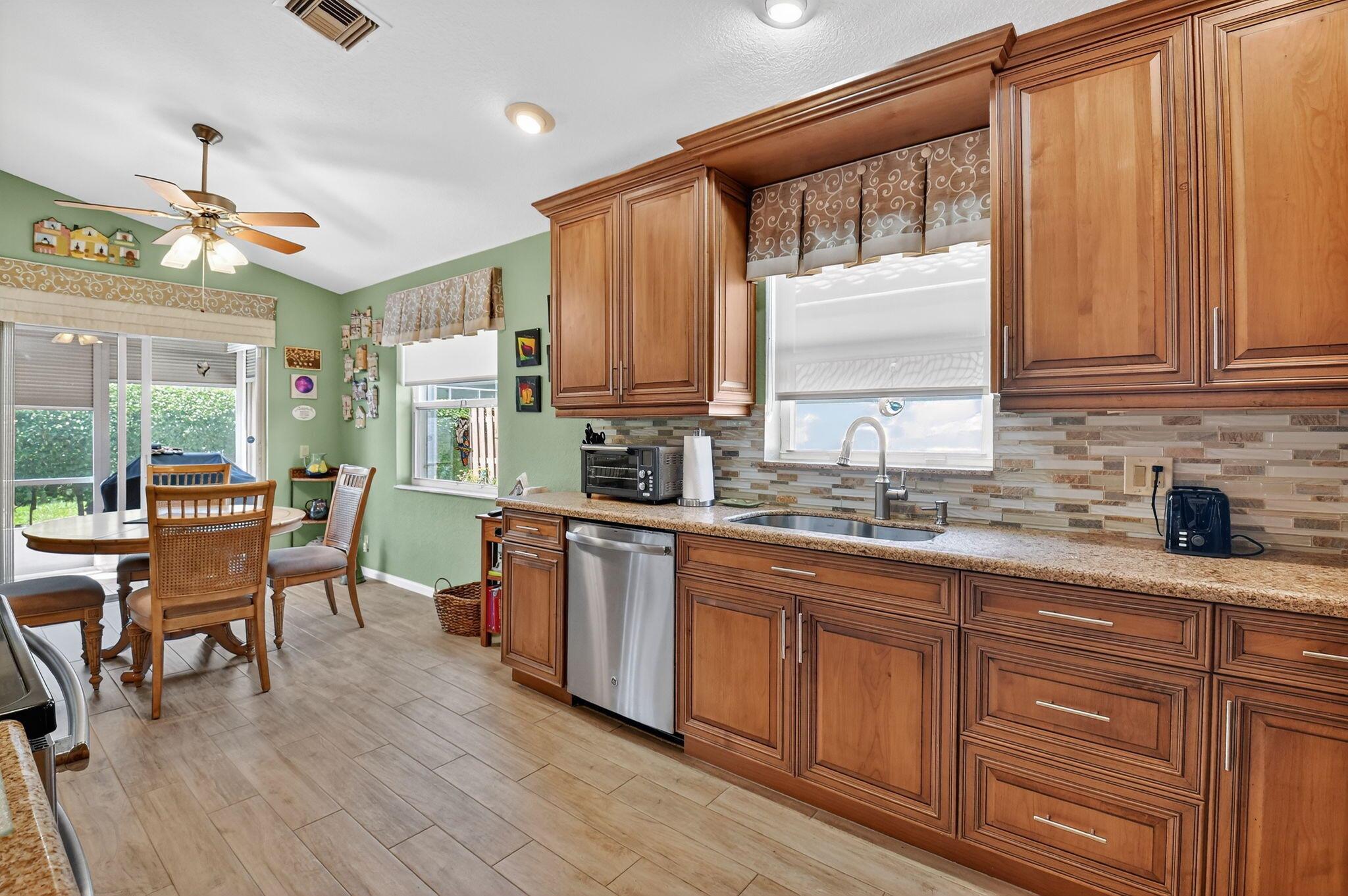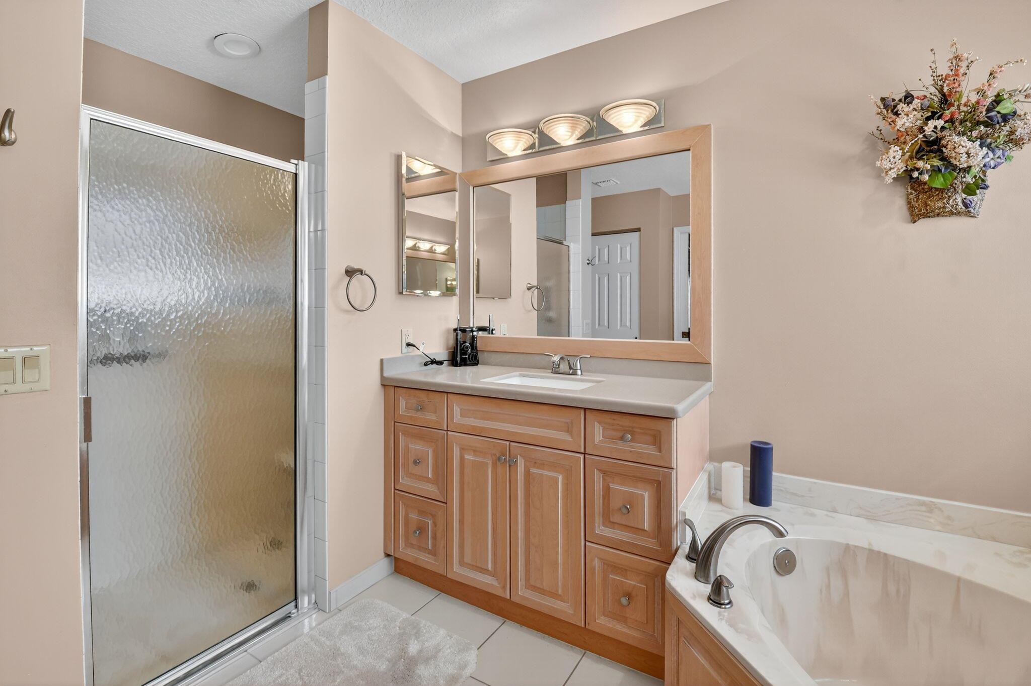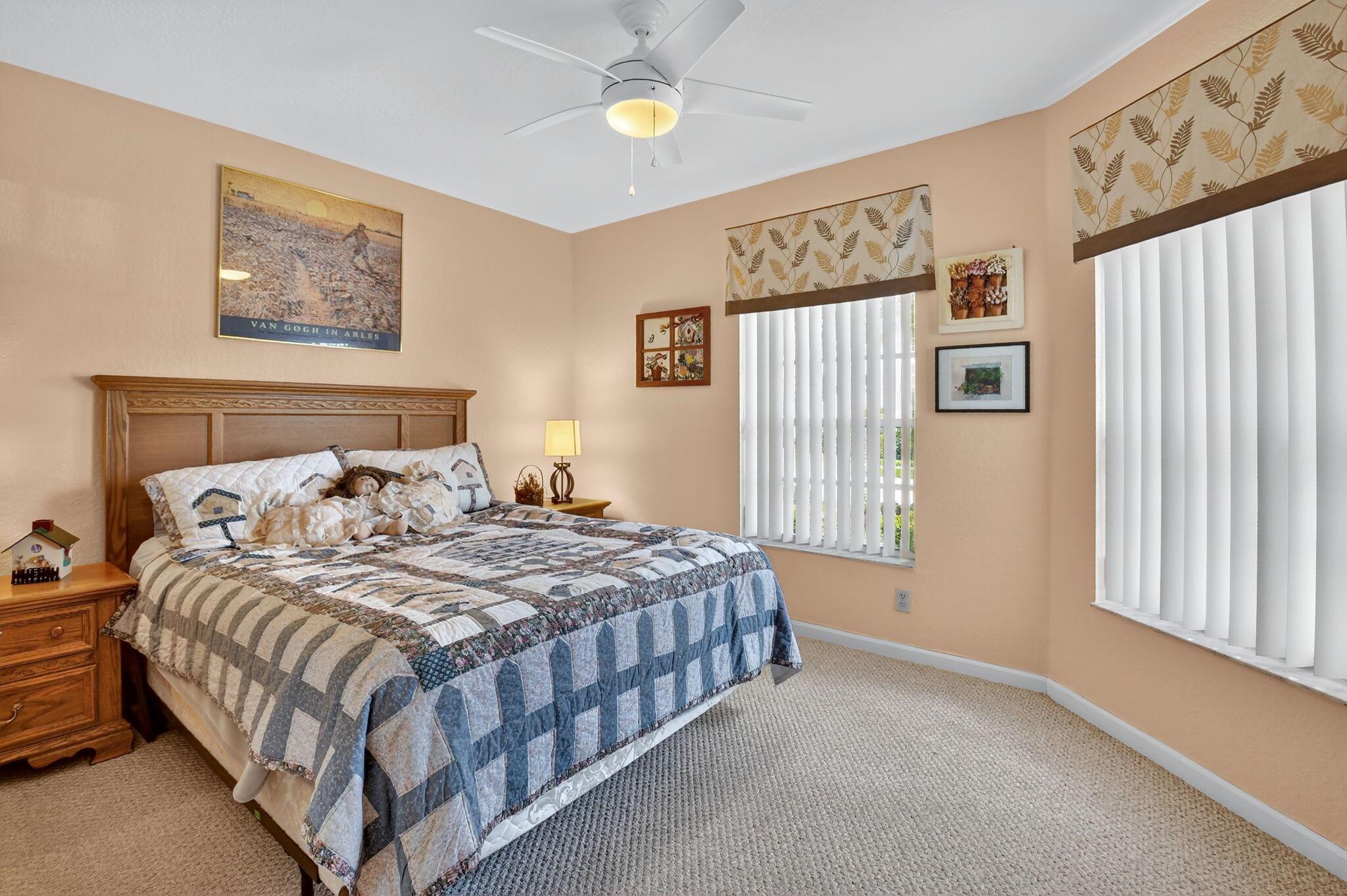Welcome Home! This is a stunning, modified Augusta model that boasts 3 true bedrooms, 2 full updated bathrooms, NEW ROOF IN 2021 and a 26 x12 screen enclosed patio. From the moment you step into the home you are greeted with a foyer & volume ceilings which make this home spacious, bright, warm and inviting. There is neutral tile in all living areas & the 2nd bedroom and carpet in two of the bedrooms. A spacious UPDATED EAT-IN KITCHEN WITH WOOD CABINETRY & PULLOUTS, CORIAN COUNTERTOPS, FULL STONE BACKSPLASH and SS appliances. Entertaining is a pleasure as there is a great room right off of the kitchen. There is a spacious owner's suite which consists of 2 CUSTOM FITTED walk-in closets, an updated sumptuous bath with dual sinks, a large soaking tub, a step-down shower and SEE ''MORE''