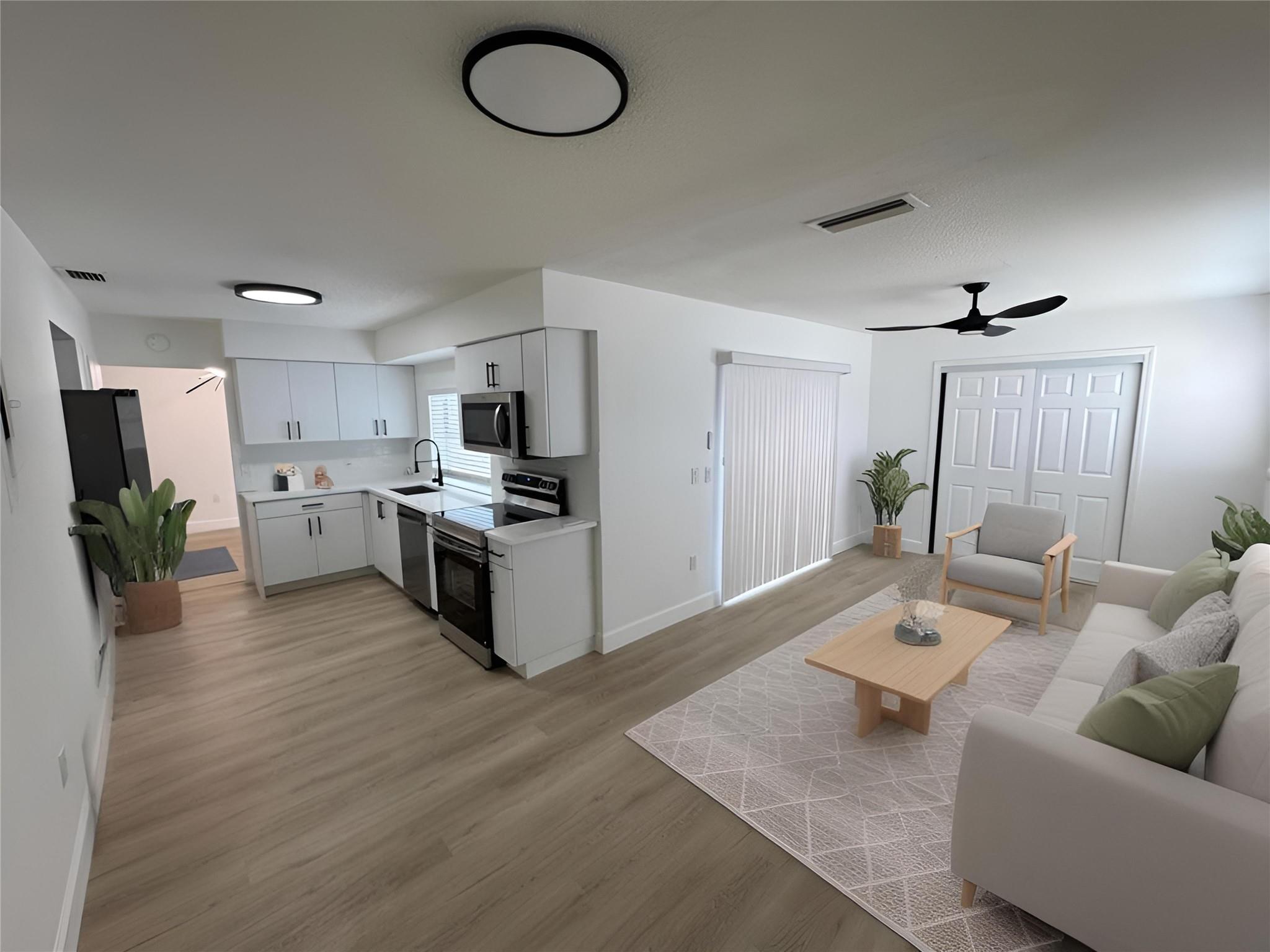 Beautiful Move in Ready 3 bed 2 bath plus a family room and 1 car garage| Room for a 4th Bedroom | NO HOA | Split Floor plan | Property Features European Designer Style Kitchen with Quartz Countertops and New Stainless Steel Appliances plus new Washer and Dryer | New flooring throughout | Oversized fenced back yard with fruit trees | Accordion Shutters | Highly sought after area of Pembroke Pines | Conveniently located close to Pembroke Mall | Hospitals | Shopping | Dining | Entertainment.