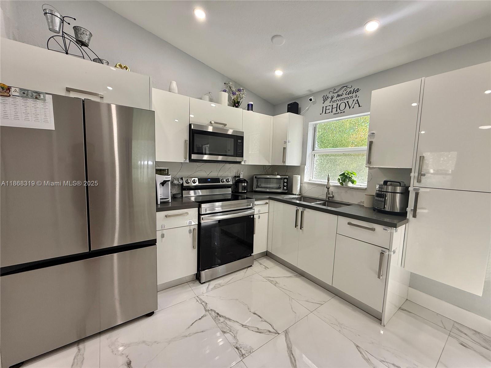 Great opportunity to buy a corner home, completely remodeled (2023), has an open concept living. kitchen with white cabinets and quartz countertops and brands new stainless steel appliances. There are beautiful windows for plenty of natural light, with an entrance that you can potentially park a boat, RV, or a truck. The community has a super low association fee. Patio completely fenced in. FHA welcome. Just come to see it and your clients will be in love. it is possible that the seller may need a post-occupancy for a month. SOLD AS-IS. NO LOW BALL OFFERS PLEASE!! For showings please text the co-listing agent.