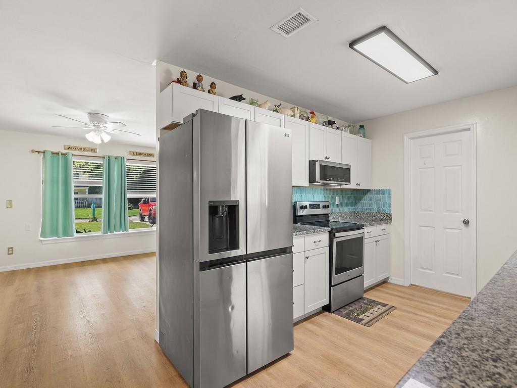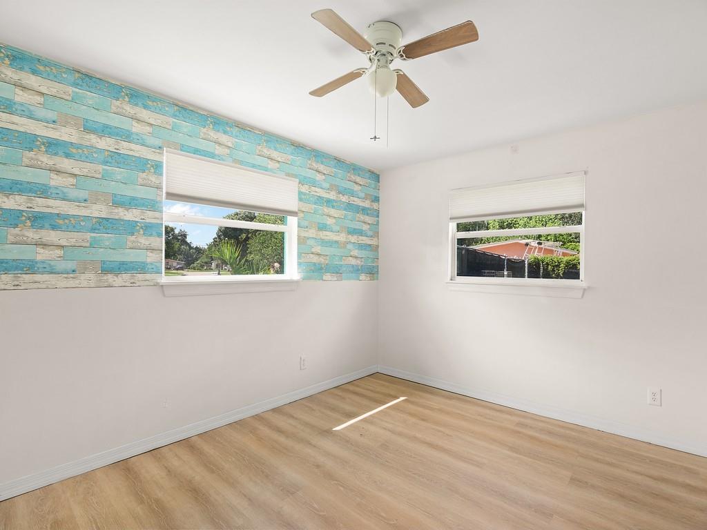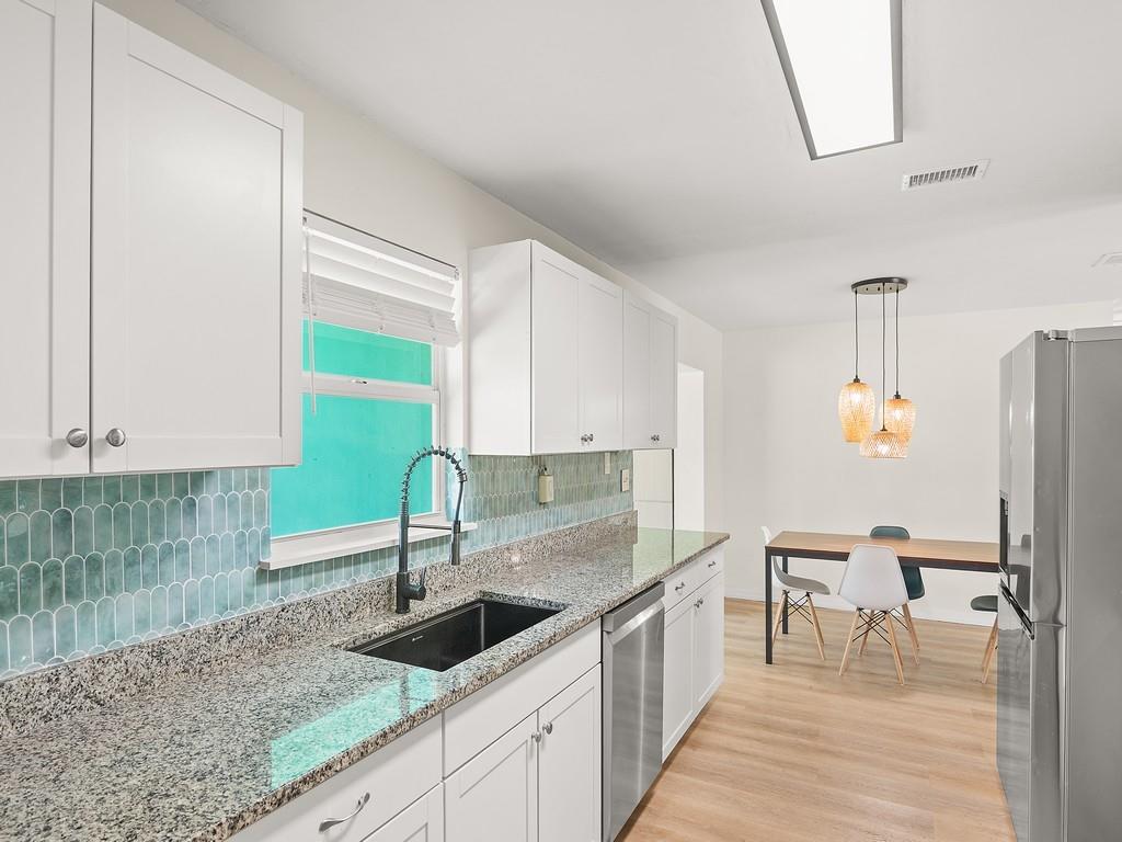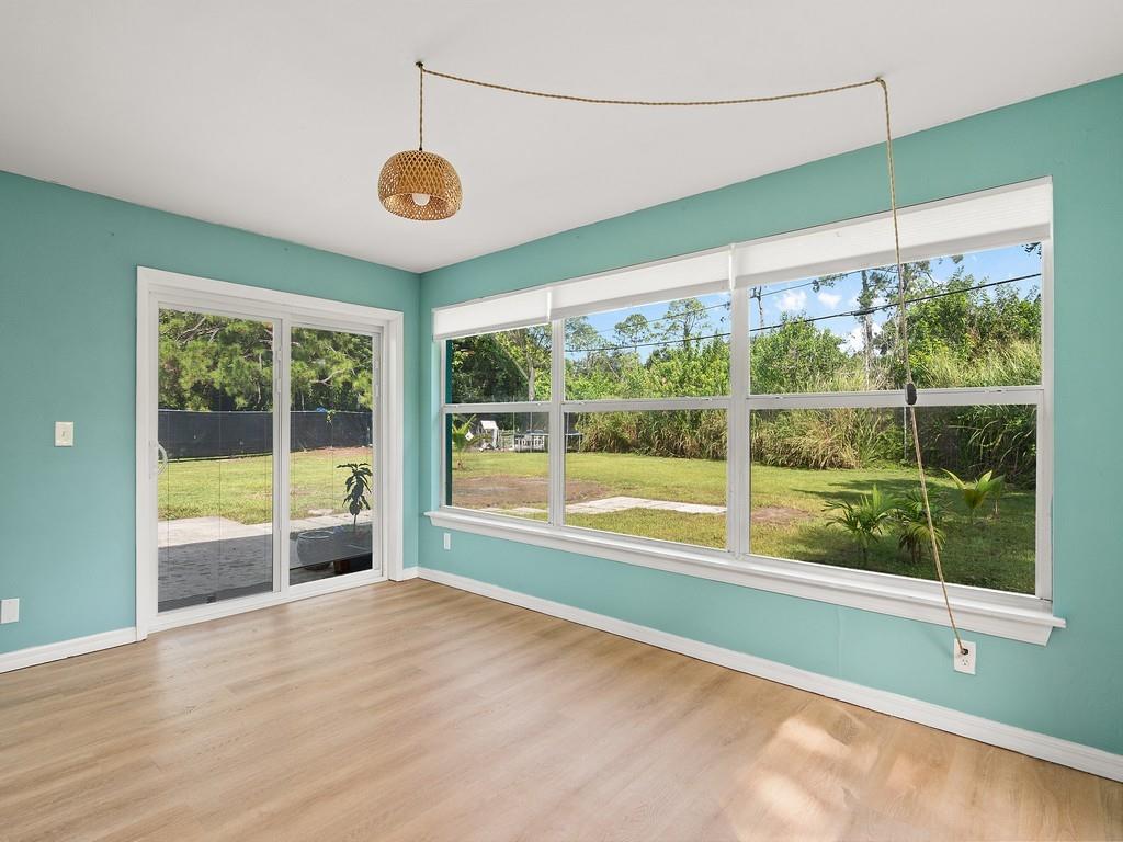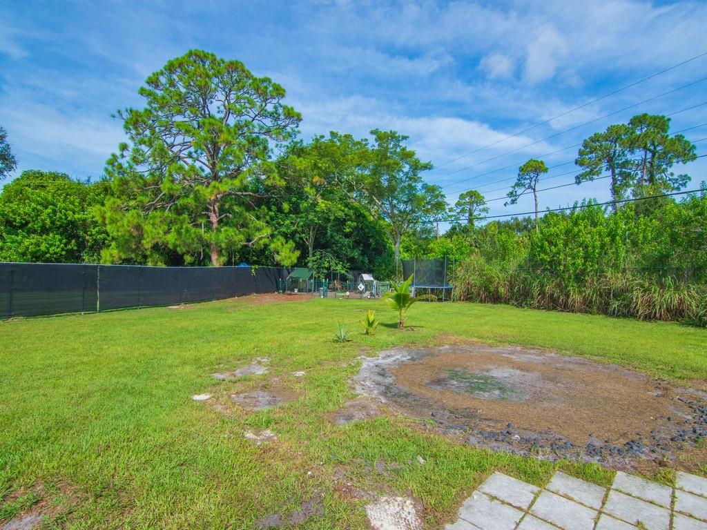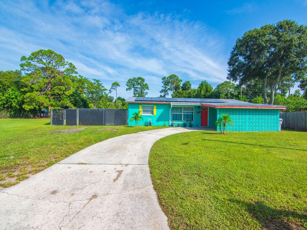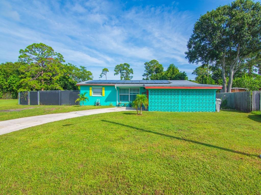 A MUST SEE! The photos can’t capture the full charm! 100% Move-in ready 3-bedroom, 2-bath CBS home on almost 1/2 an acre. This is a fully fenced corner lot in Vero Beach, Florida. Many new updates and features include luxury vinyl floors, updated kitchen cabinets with granite counters, Over-sized modern stainless sink, stainless steel appliances, fresh interior & exterior paint, new gutters, metal roof, paid-off solar panels and more! A dedicated laundry room and a Bonus sunroom that can serve as a 4th bedroom, office, or playroom. No HOA — room for a pool, detached garage or RV parking. The backyard is amazing! Only 15 mins to the beach and 10 mins to downtown Vero and 7-10 minutes to US-1 and shopping.