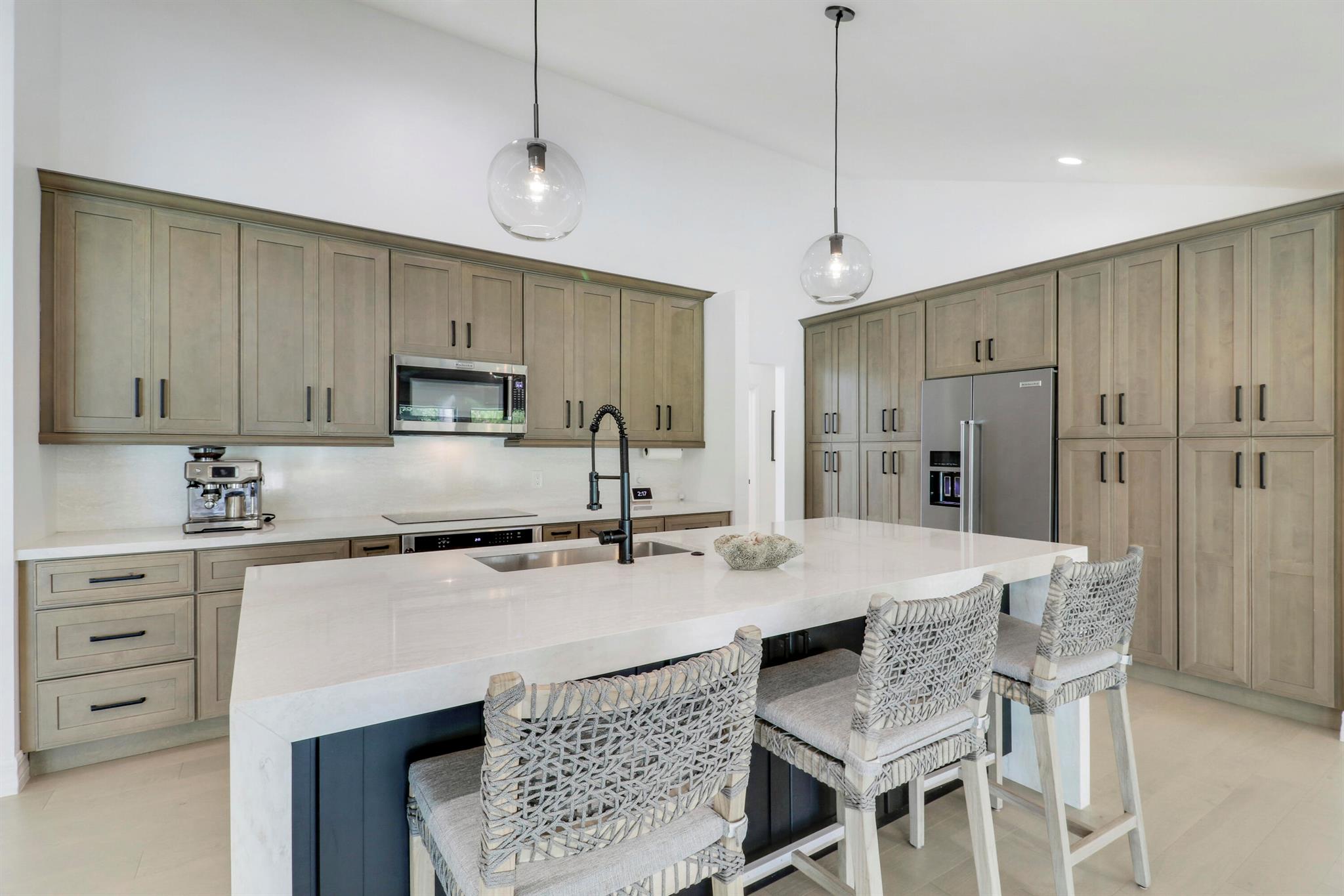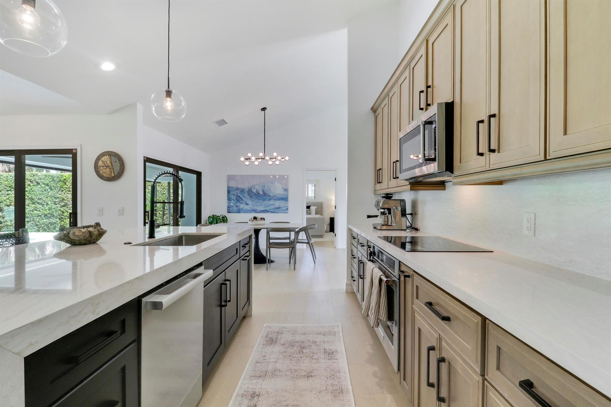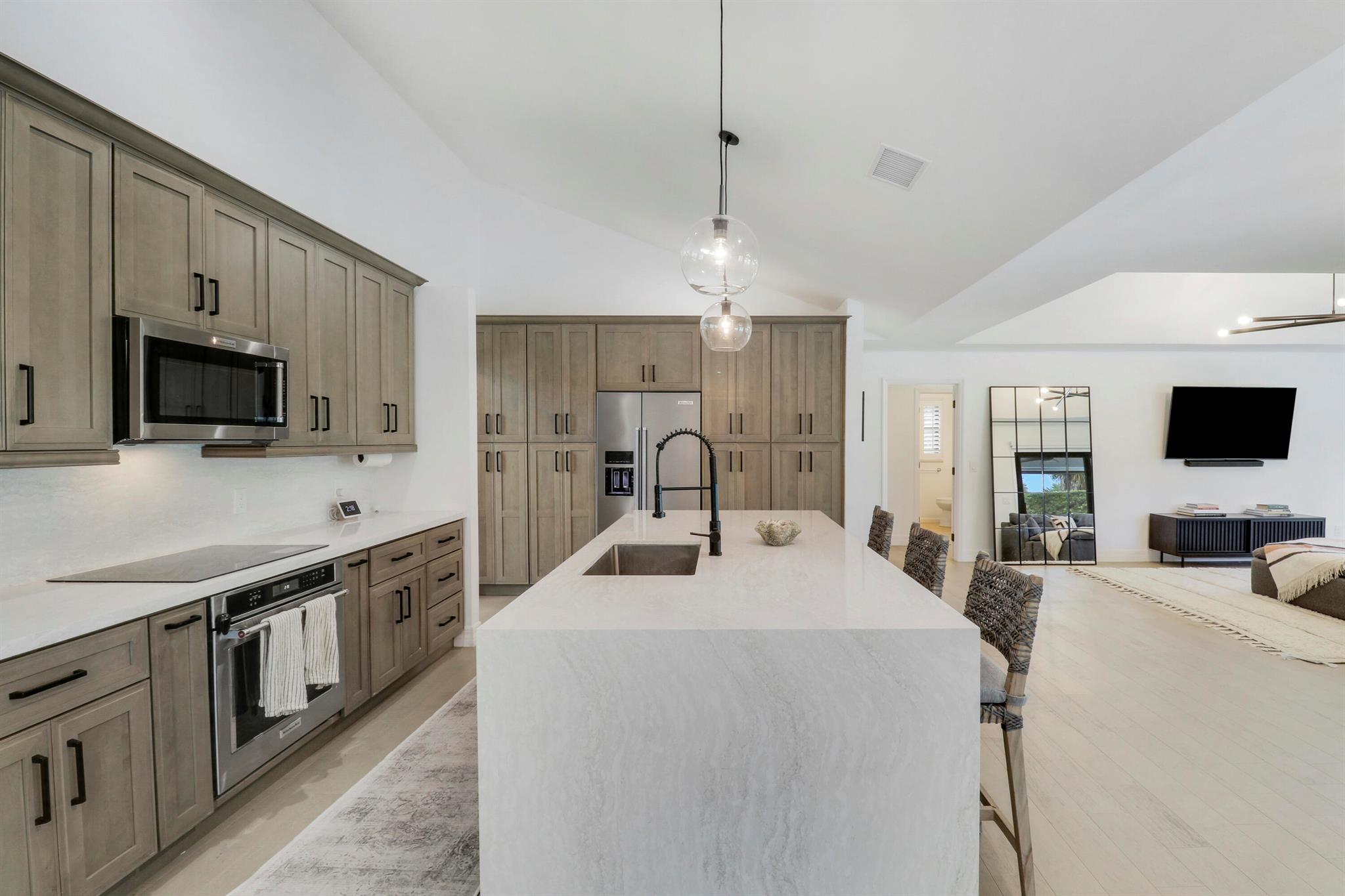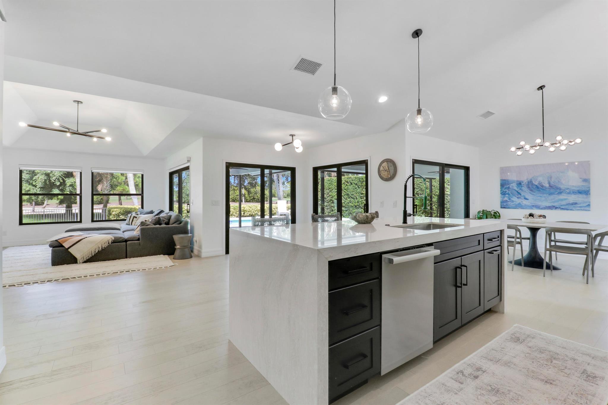 Welcome to 196 Southeast Turtle Creek Drive, a stunning residence nestled on the serene 11th tee box of the coveted Turtle Creek Golf Course. This exquisite home, set back from the course, offers a peaceful view and the ultimate golf cart-friendly lifestyle just moments away from the conveniences of Tequesta & Jupiter. This move-in-ready gem boasts 4 spacious bedrooms and 3 beautifully appointed full bathrooms. Inside discover a light-filled open kitchen, completely renovated with designer appliances, complemented by enhanced lighting and smooth ceilings. The airy living spaces are accentuated by vaulted ceilings and new engineered hardwood floors, all freshly painted inside and out.The home features impact windows and doors, providing peace of mind, and a modern Interlock Metal