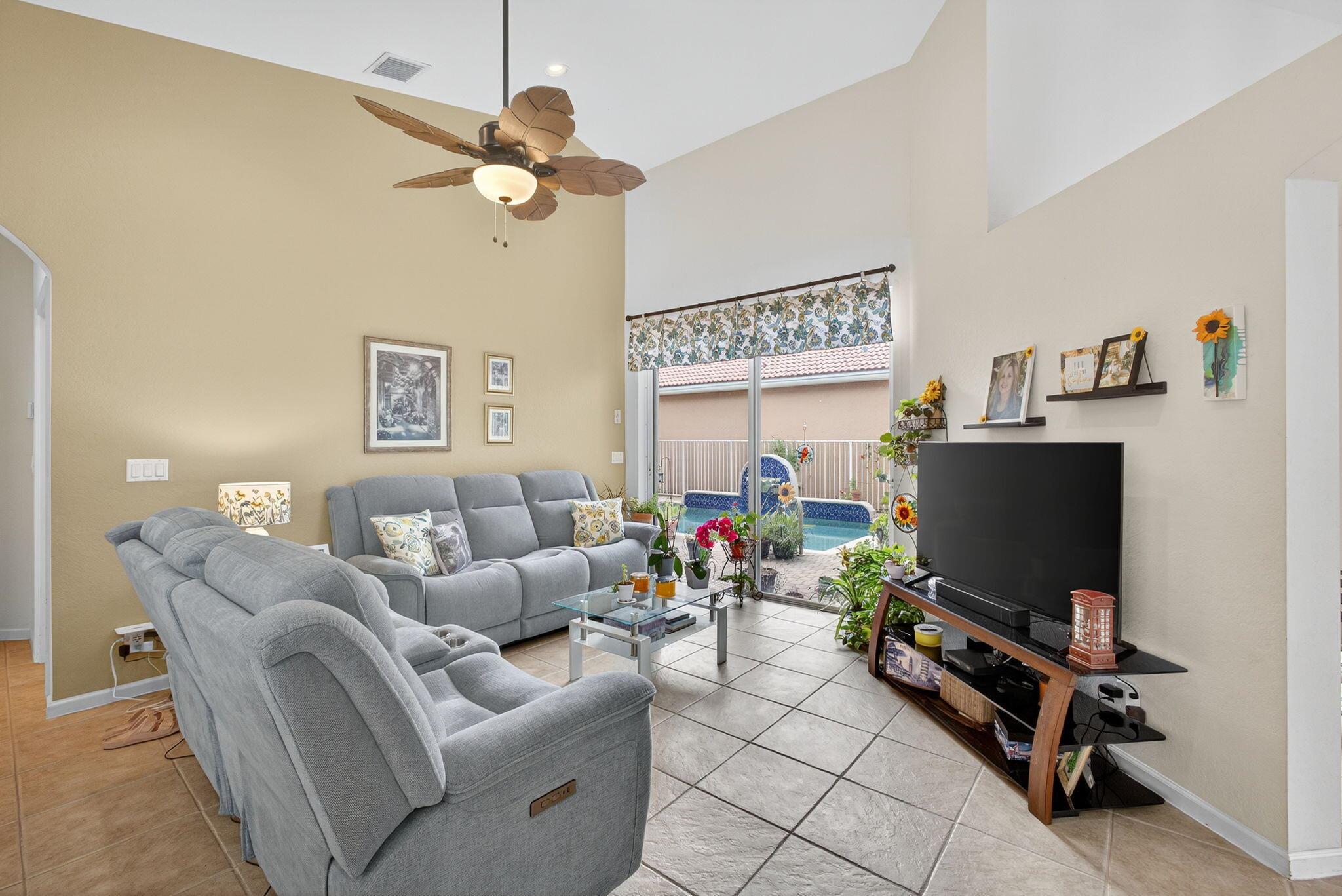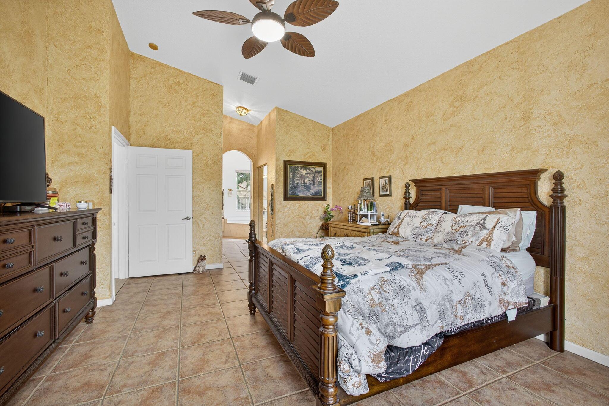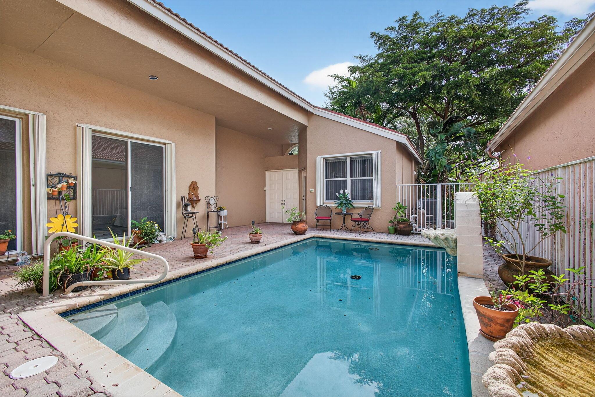 DROPPED $40,000!! LOCATION LOCATION. Great lake front home w/large pool & decretive fountain in yard plus a Guest House w/BR & full BR. Home equipped w/accordion hurricane shutters. Great Mother/Daugher! A/c w/ultra violet light plus vaulted ceilings, fans & fixtures throughout. This home is a True 3 Bedroom, Full 3 Bath with closets & doors in each BR. Primary bedroom has boasts Glass Sliders from window option for beautiful lake views plus 2 large walk in closets! Open Kitchen offers granite counters, cafe bar double sided SS sink, large pantry & more. Formal Dining area. Knock down finishes on walls & lots of recessed lighting. Primary bath offers soaking tub, walk in shower, dual sinks & private commode w/pocket door. Main home offers tile throughout. Don't miss this one. Won't last l