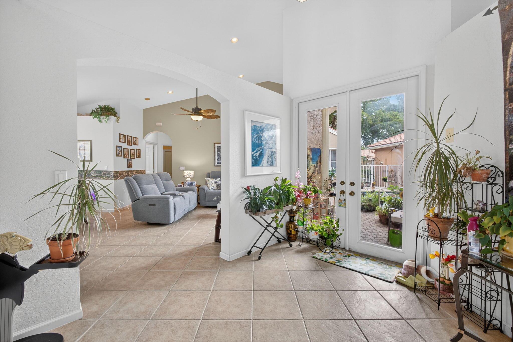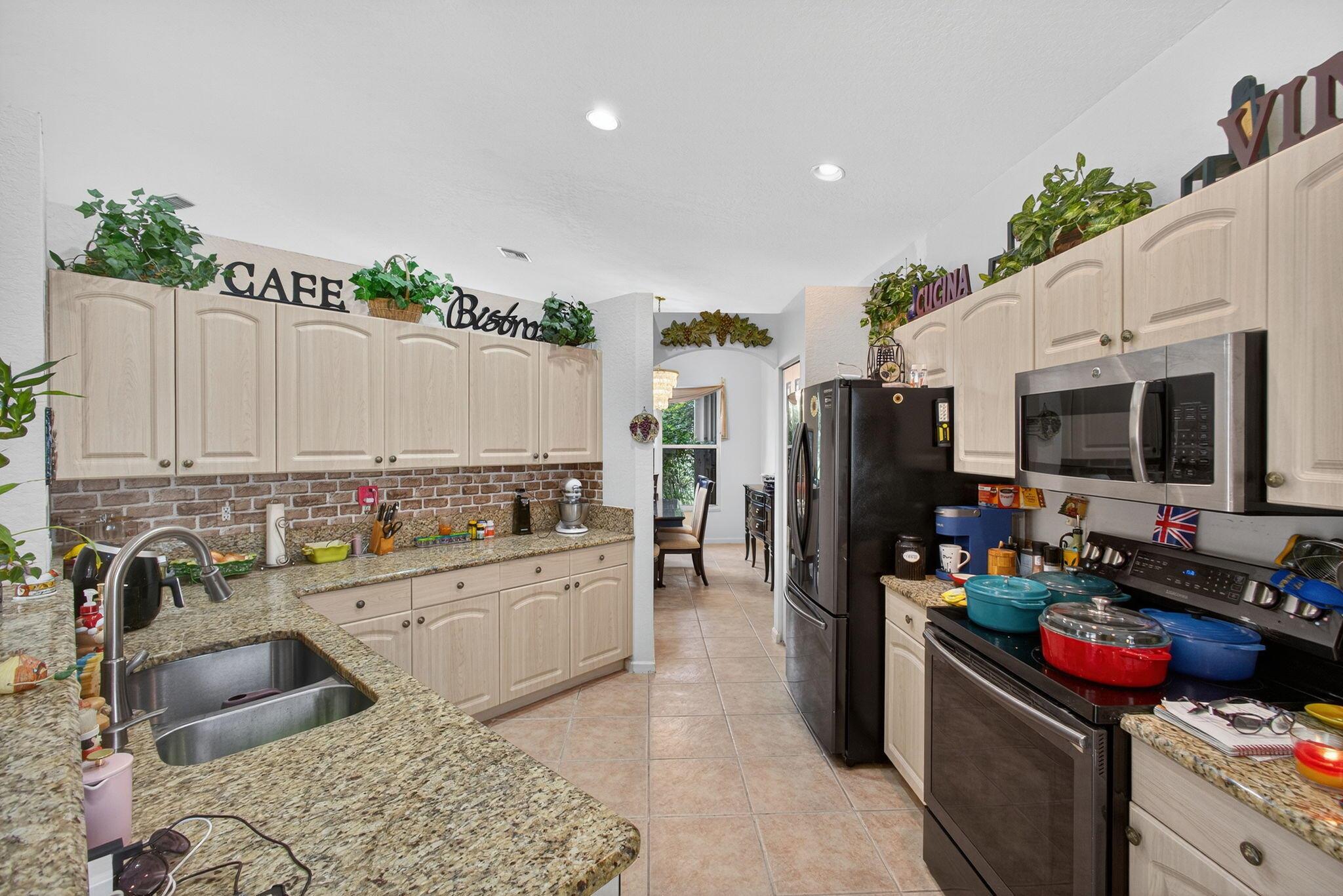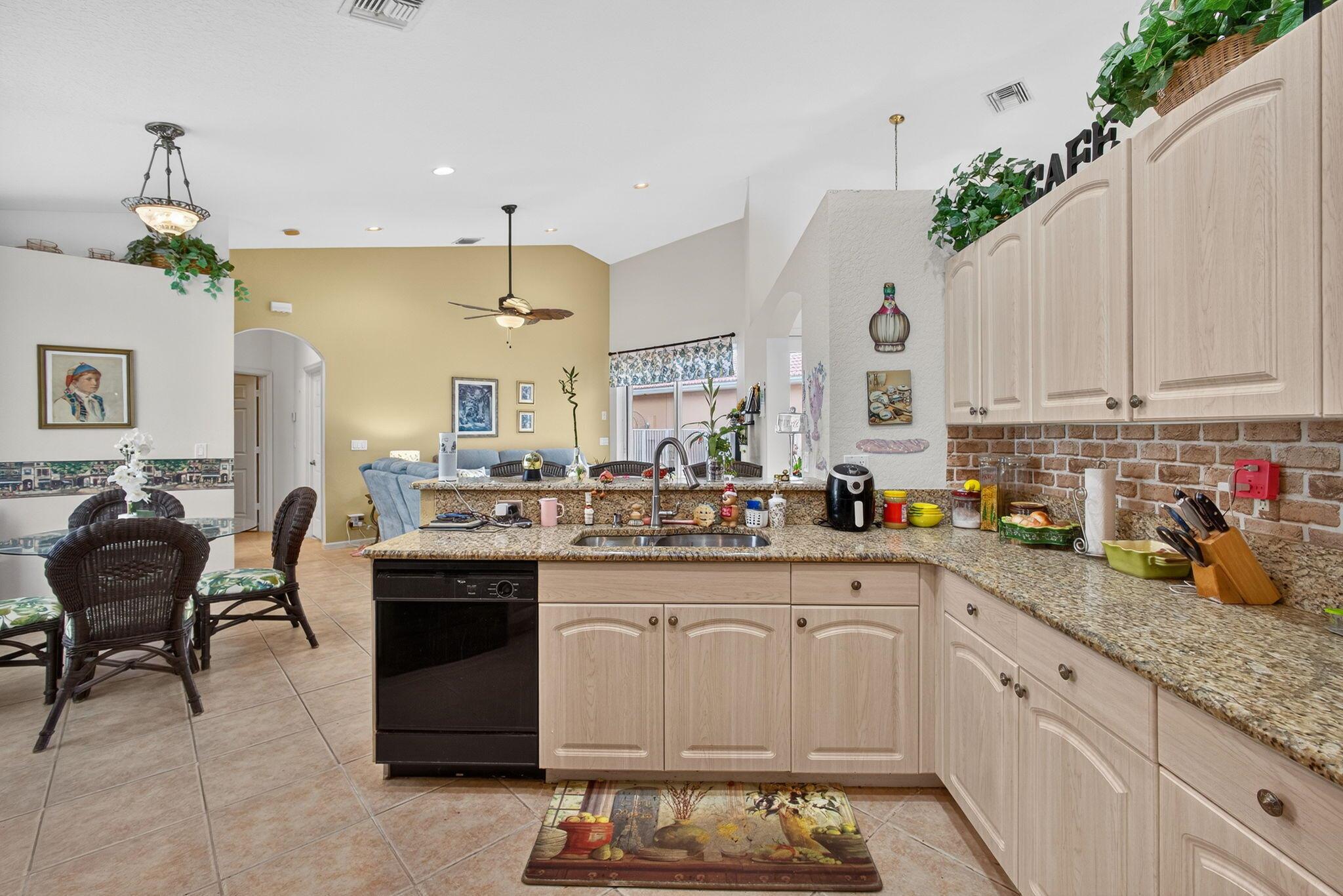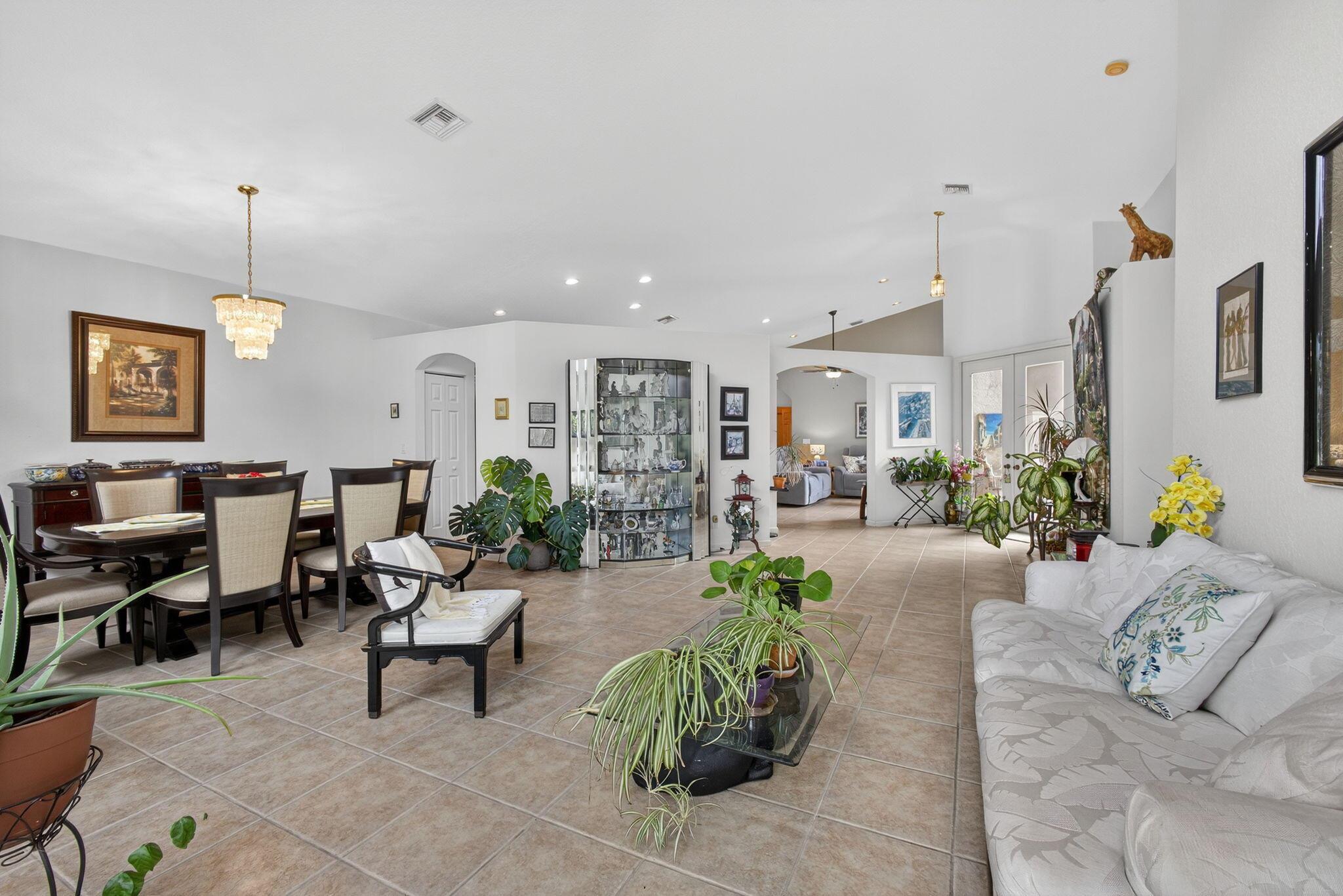 DROPPED $40,000!! LOCATION LOCATION. Great lake front home w/large pool & decretive fountain in yard plus a Guest House w/BR & full BR. Home equipped w/accordion hurricane shutters. Great Mother/Daugher! A/c w/ultra violet light plus vaulted ceilings, fans & fixtures throughout. This home is a True 3 Bedroom, Full 3 Bath with closets & doors in each BR. Primary bedroom has boasts Glass Sliders from window option for beautiful lake views plus 2 large walk in closets! Open Kitchen offers granite counters, cafe bar double sided SS sink, large pantry & more. Formal Dining area. Knock down finishes on walls & lots of recessed lighting. Primary bath offers soaking tub, walk in shower, dual sinks & private commode w/pocket door. Main home offers tile throughout. Don't miss this one. Won't last l