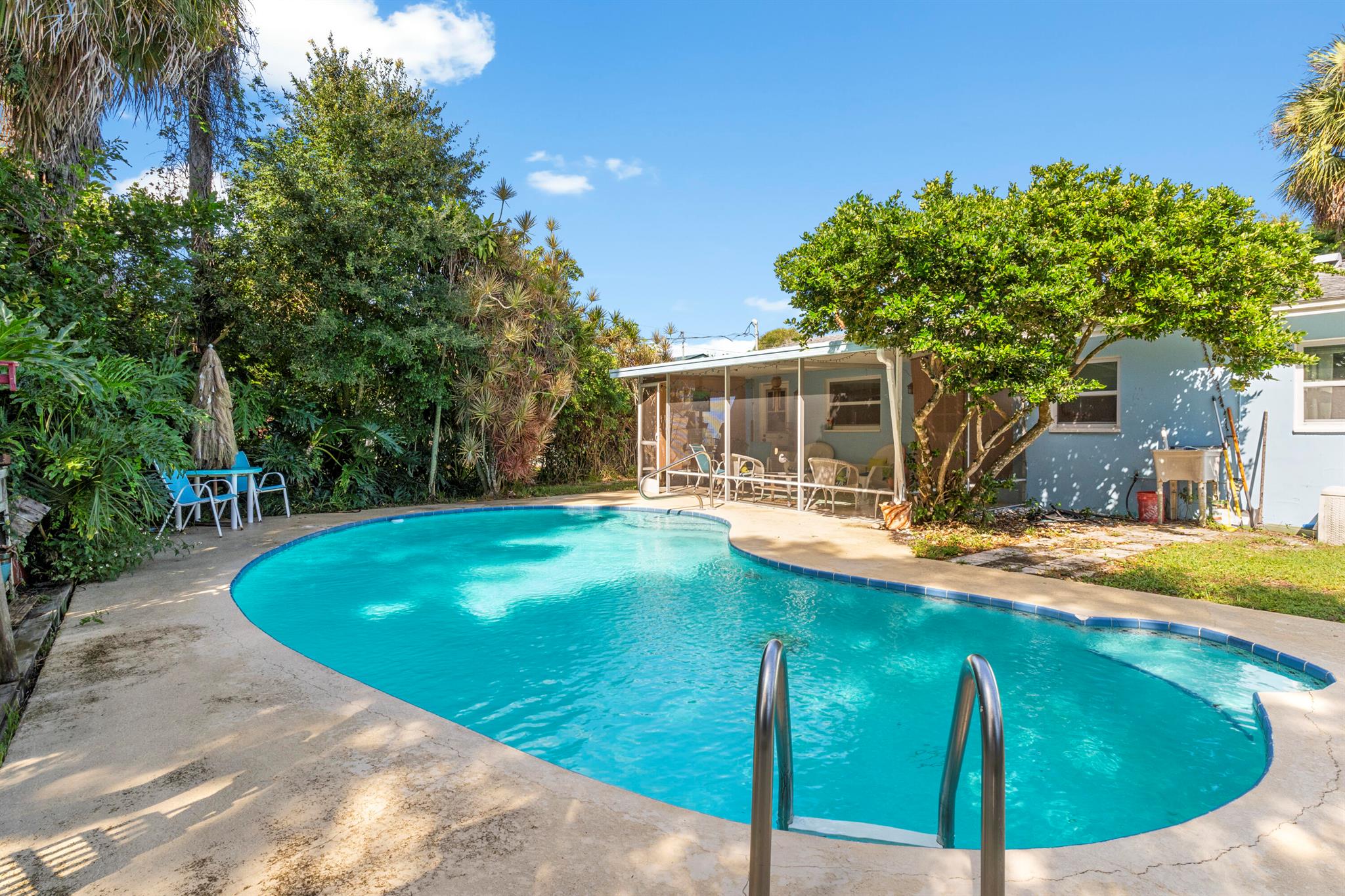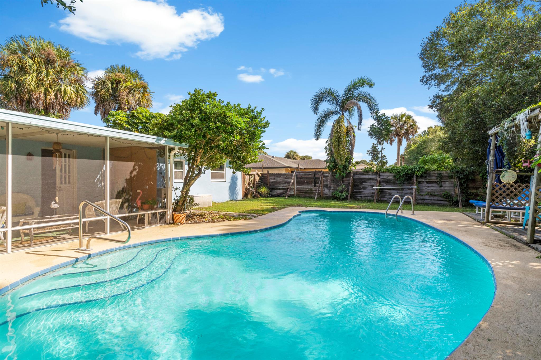 Affordable pool home in Vero Beach! This 3 bedroom, 2 bath home has been nicely updated and offers a cozy, functional layout. The garage has been converted, adding extra living space or a bonus room to fit your needs, it can be converted back to a garage, if preferred. Step outside to your own backyard oasis with a private pool, perfect for relaxing or entertaining. Close to schools, shopping, dining, and just a short drive to the beach.