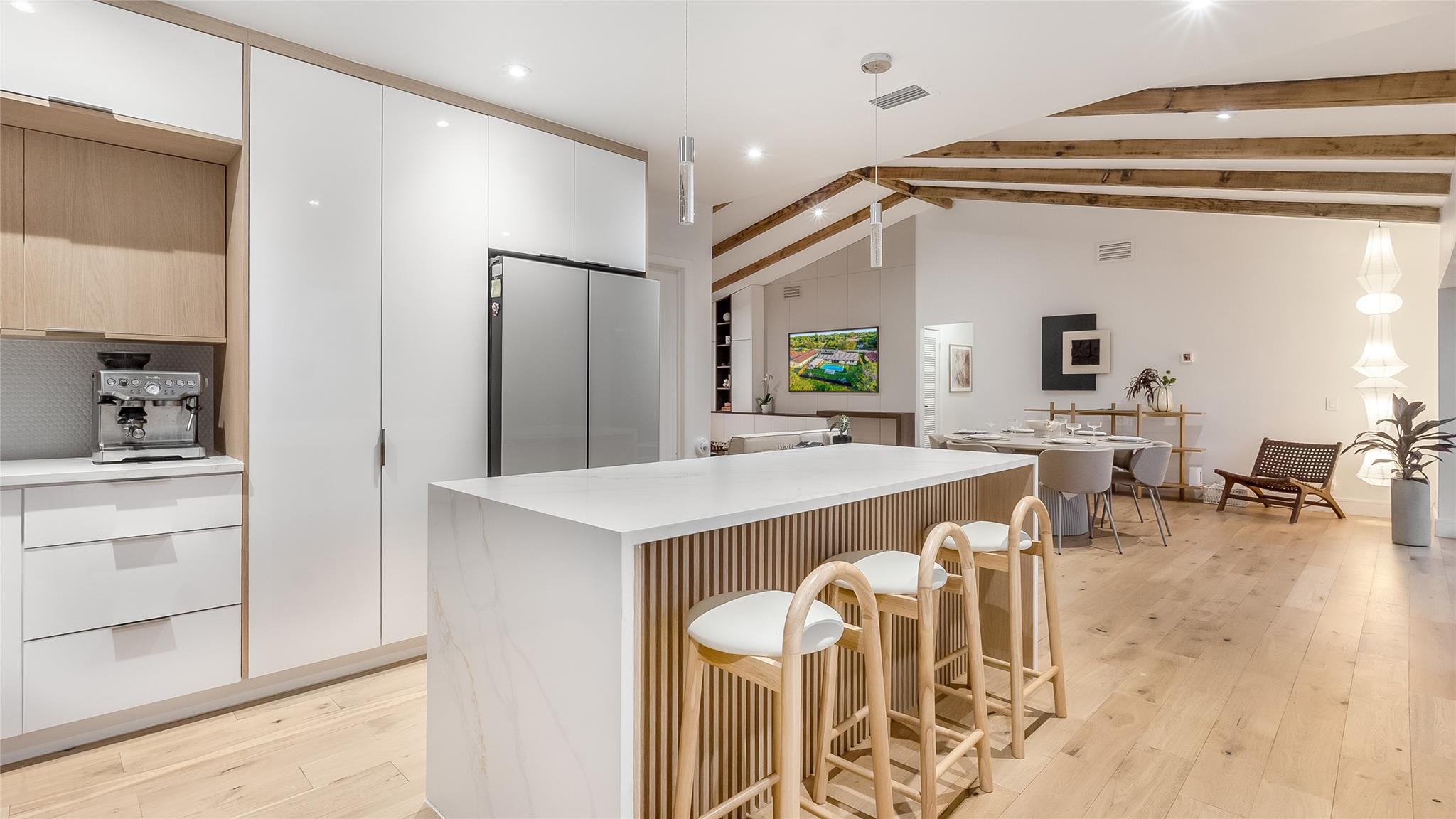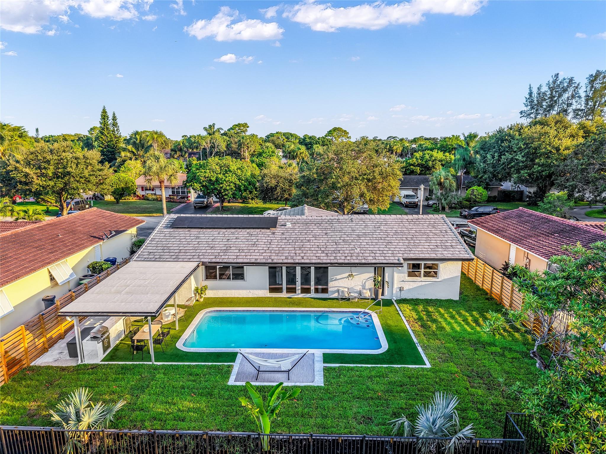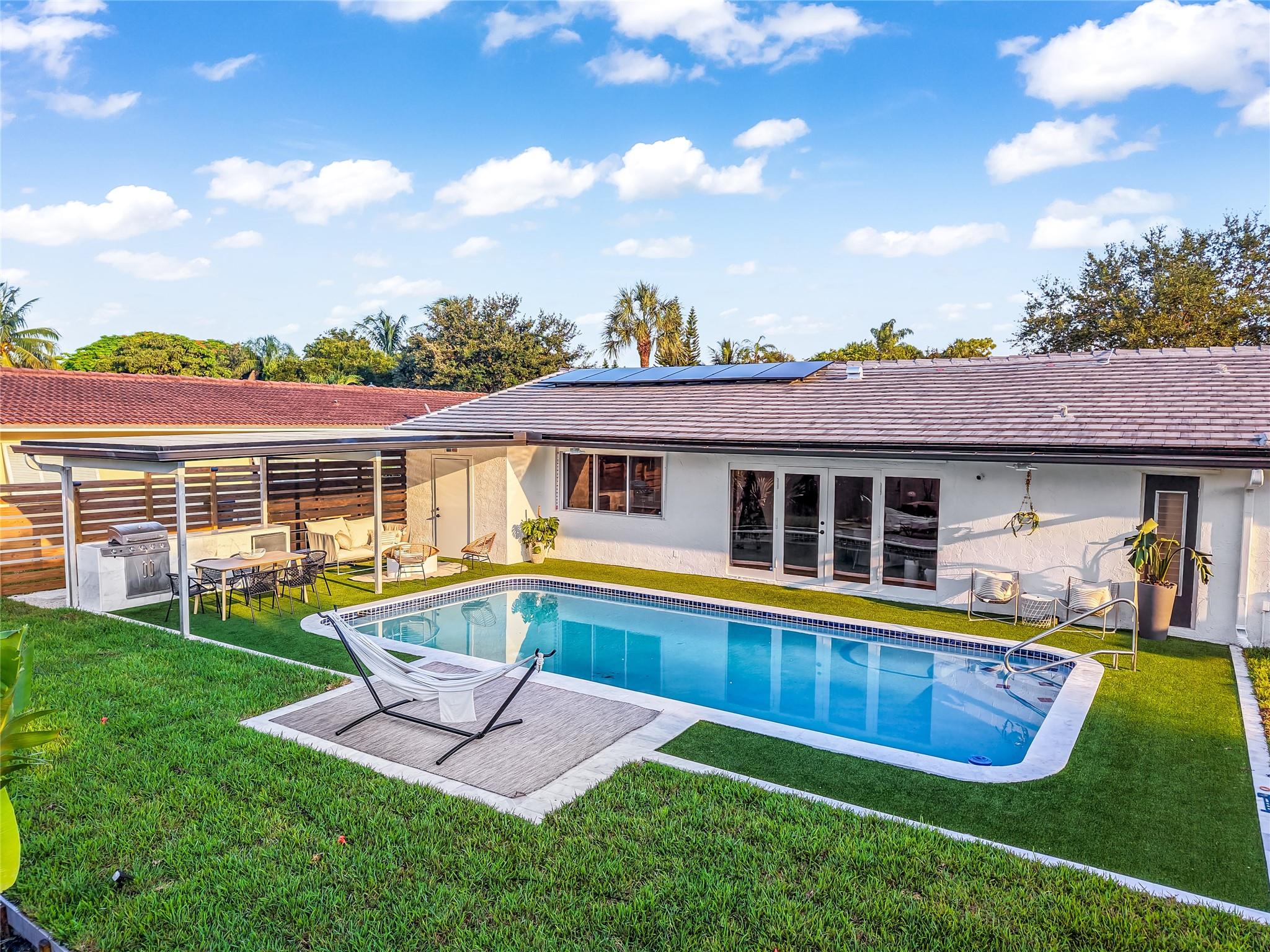 Stunning 3BD/3BA pool home loaded with upgrades. Enjoy wood floors; a sleek new kitchen with waterfall island; refreshed baths; updated plumbing; new roof; washer/dryer; custom primary closet; built-in living room console; fiber-optic internet; and new landscaping with irrigation. The open layout flows to a backyard paradise with canal views, pool, outdoor shower, cabana bath, and a full summer kitchen—perfect for effortless indoor-outdoor living. On a quiet, tree-lined street in one of Coral Springs’ most desirable neighborhoods. Minutes to dining, shopping, golf, and about 25 minutes to the beach. Turnkey and move-in ready—ideal for entertaining or a serene evening under the stars. Disclosure: Buyer must assume the existing solar-panel lease.