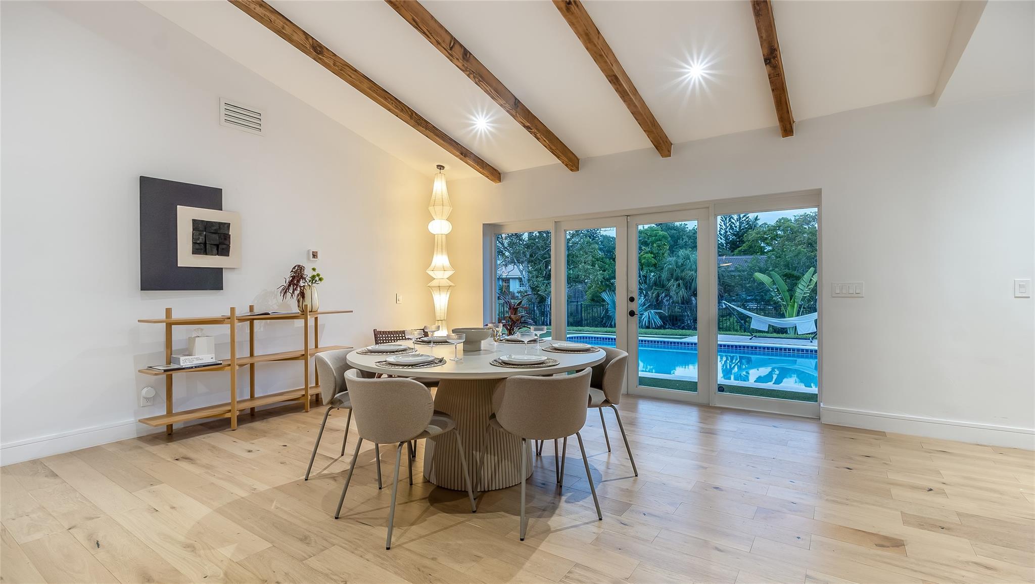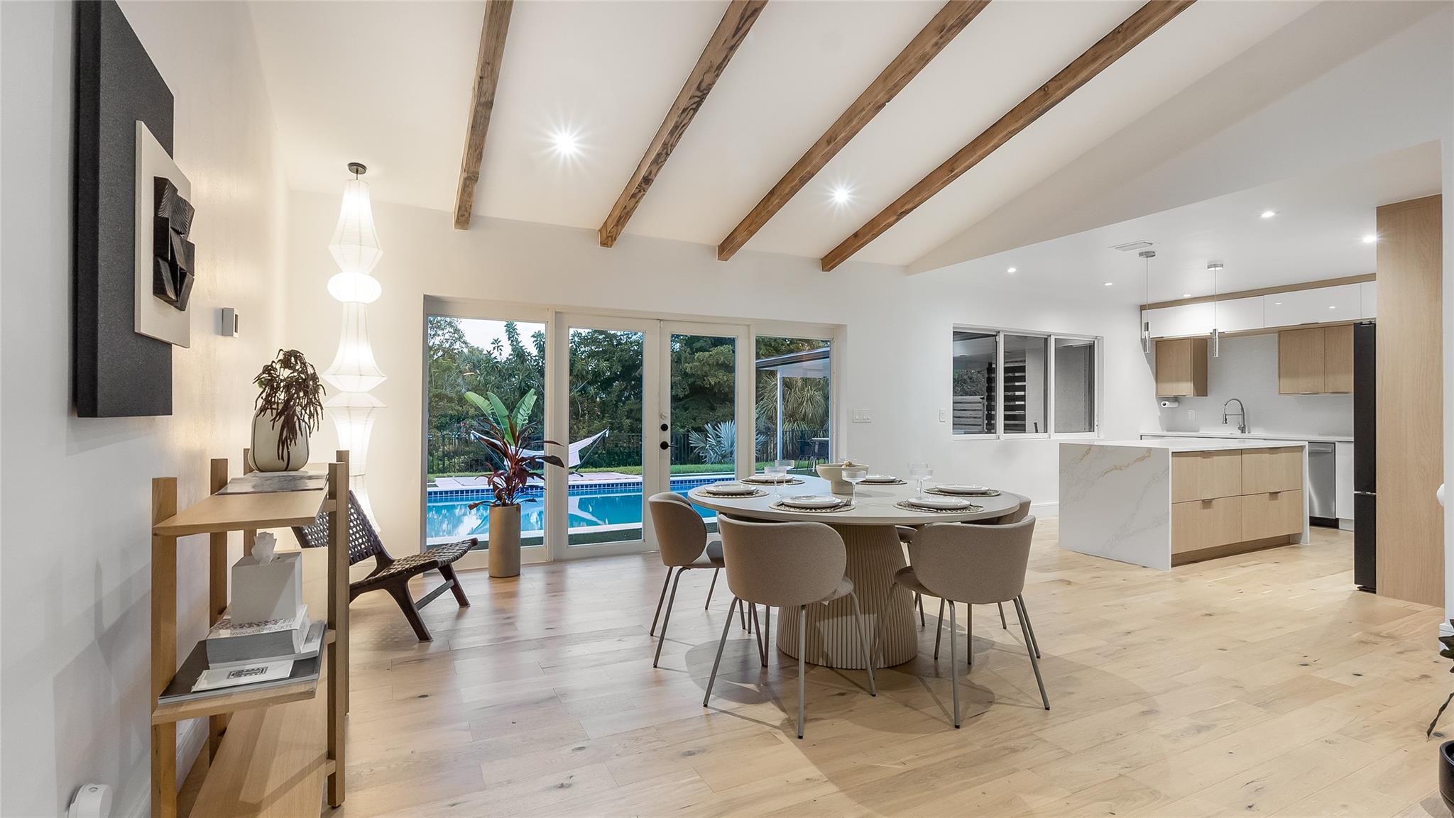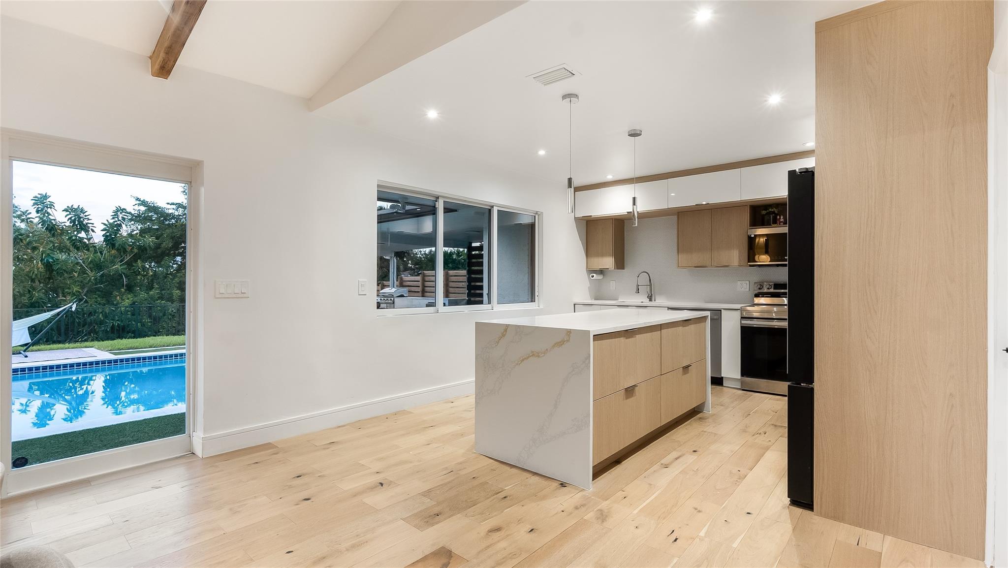 Stunning 3BD/3BA pool home loaded with upgrades. Enjoy wood floors; a sleek new kitchen with waterfall island; refreshed baths; updated plumbing; new roof; washer/dryer; custom primary closet; built-in living room console; fiber-optic internet; and new landscaping with irrigation. The open layout flows to a backyard paradise with canal views, pool, outdoor shower, cabana bath, and a full summer kitchen—perfect for effortless indoor-outdoor living. On a quiet, tree-lined street in one of Coral Springs’ most desirable neighborhoods. Minutes to dining, shopping, golf, and about 25 minutes to the beach. Turnkey and move-in ready—ideal for entertaining or a serene evening under the stars. Disclosure: Buyer must assume the existing solar-panel lease.