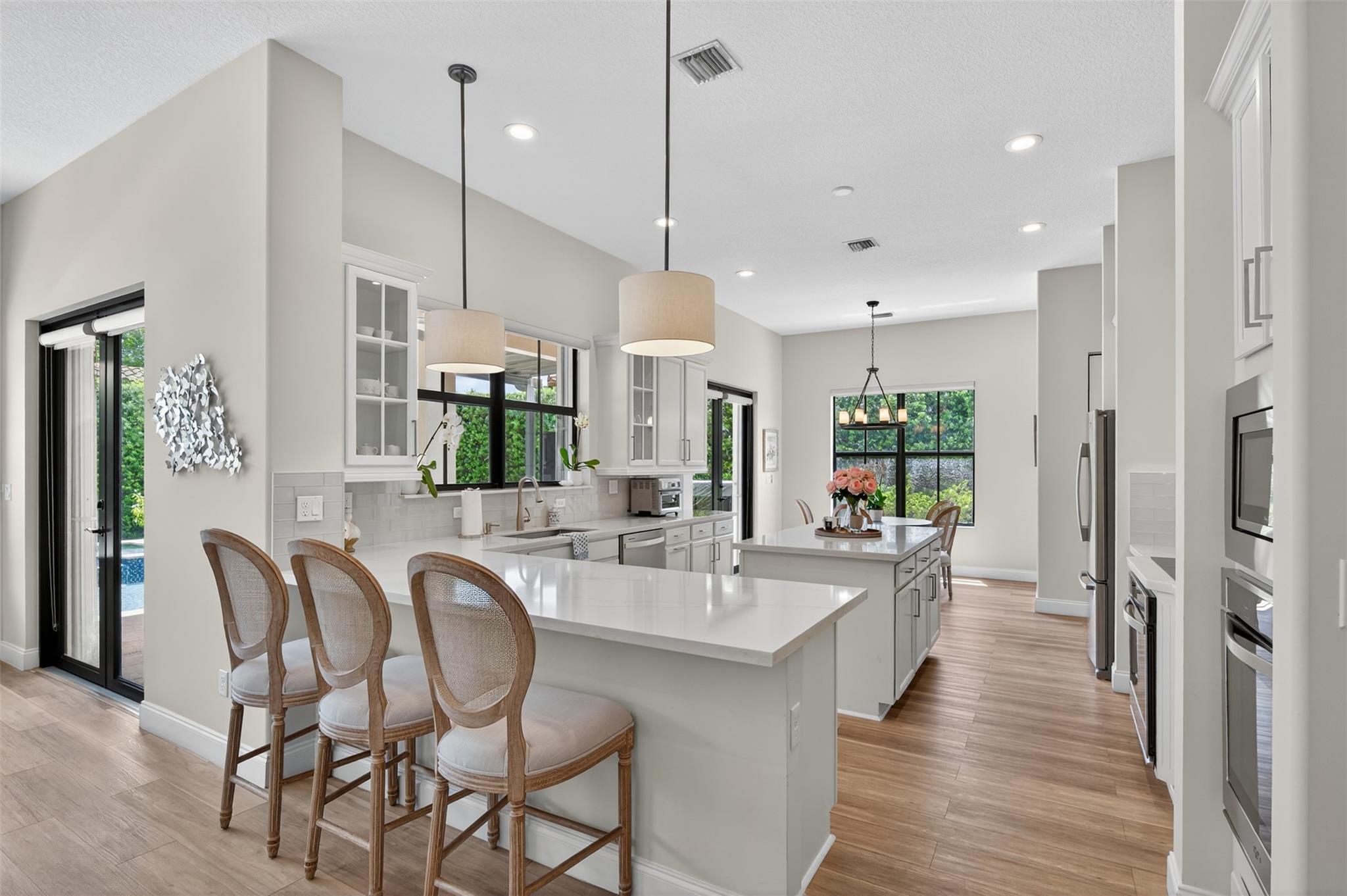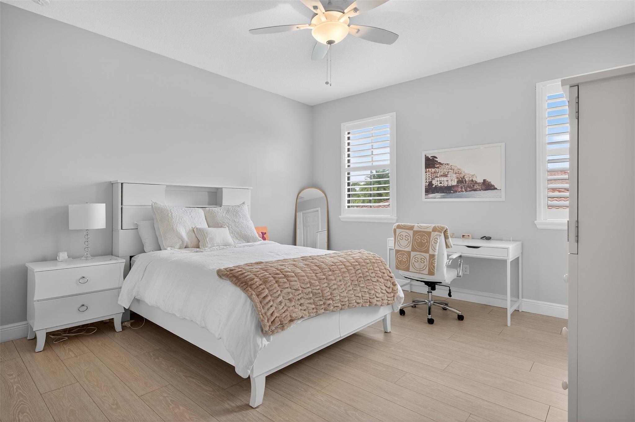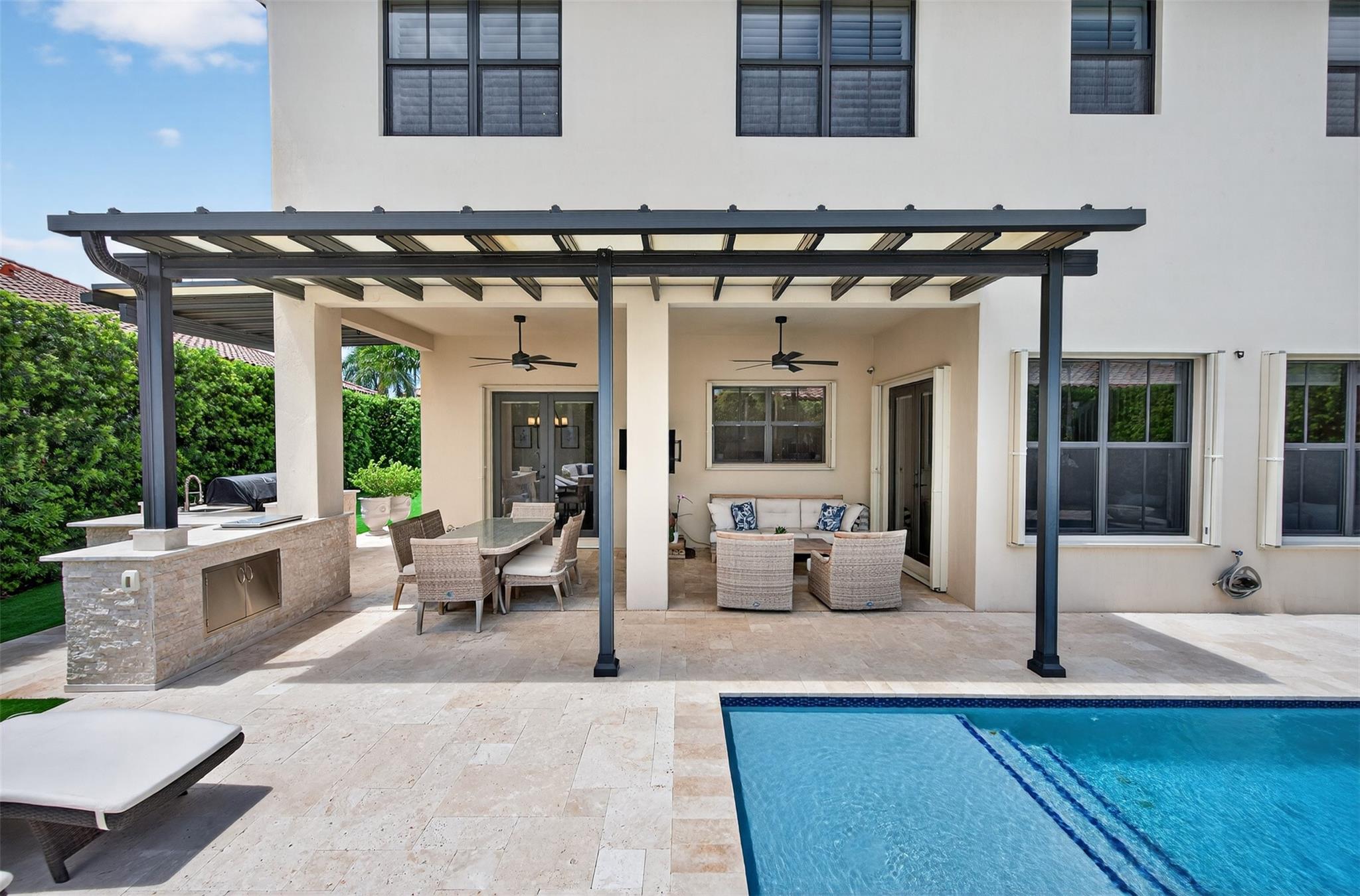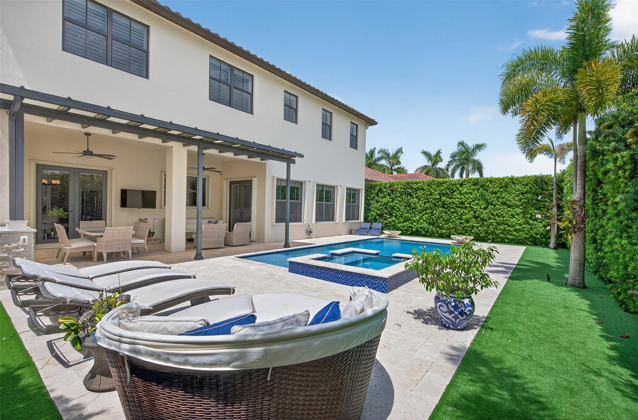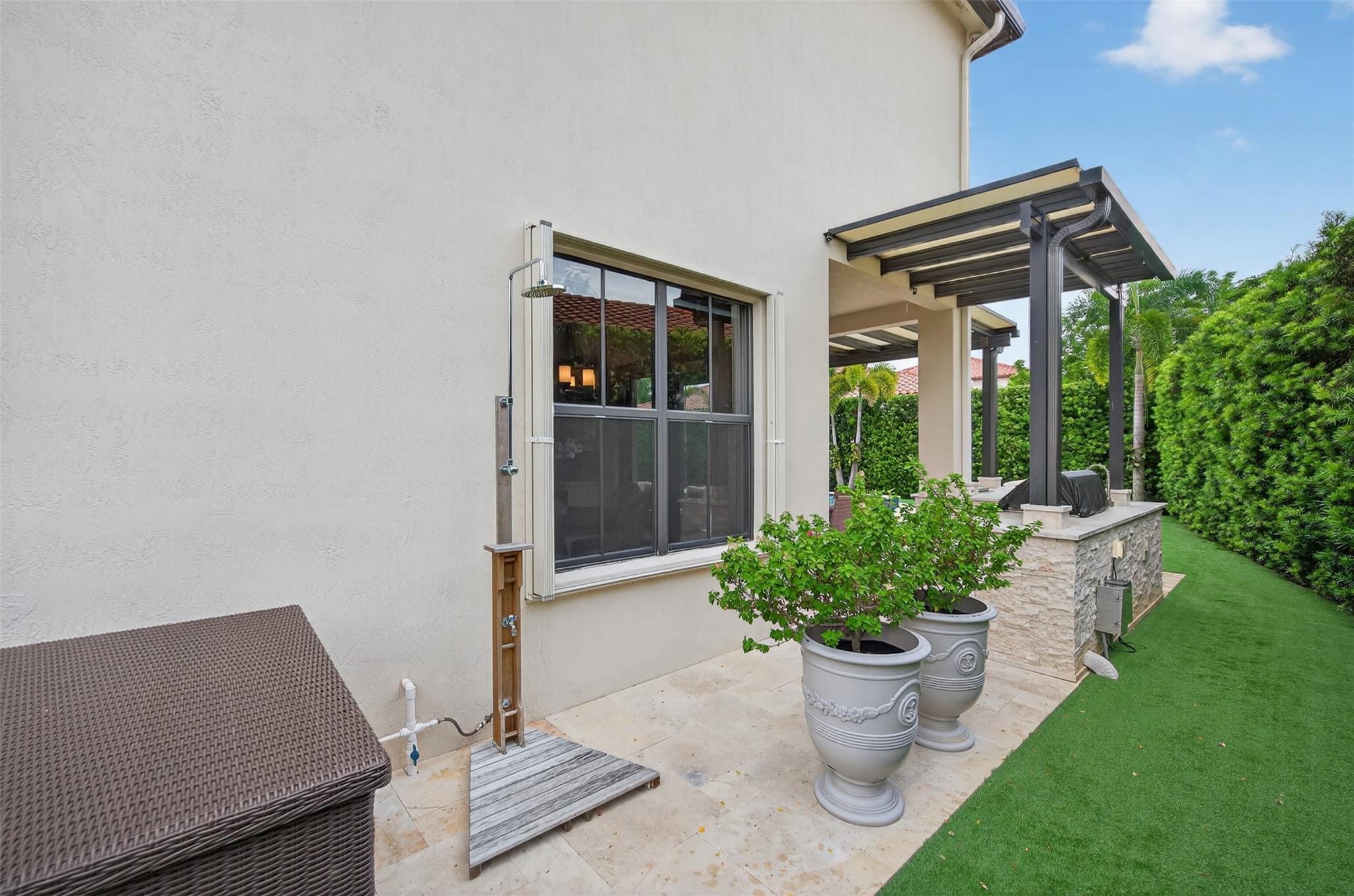 Highly sought-after Delano model featuring resort-style Heated pool & spa, custom pergola, outdoor shower, artificial turf & custom built-in outdoor grill. This model packs a punch with In-law suite with separate entrance. Impact glass on second-floor windows & striking new impact glass front door with remainder of openings protected by accordion. Kitchen with top of line appliances including double oven & center island. Several bedrooms offer private en-suites, multiple rooms feature balconies. Custom built-out closets. Extra-long driveway adds convenience & curb appeal while the landscape lighting front and back adds charm. Upscale amenities at clubhouse, fitness center, basketball & tennis, dog park, & scenic walking trails. A rated school & walking distance to houses of worship.
