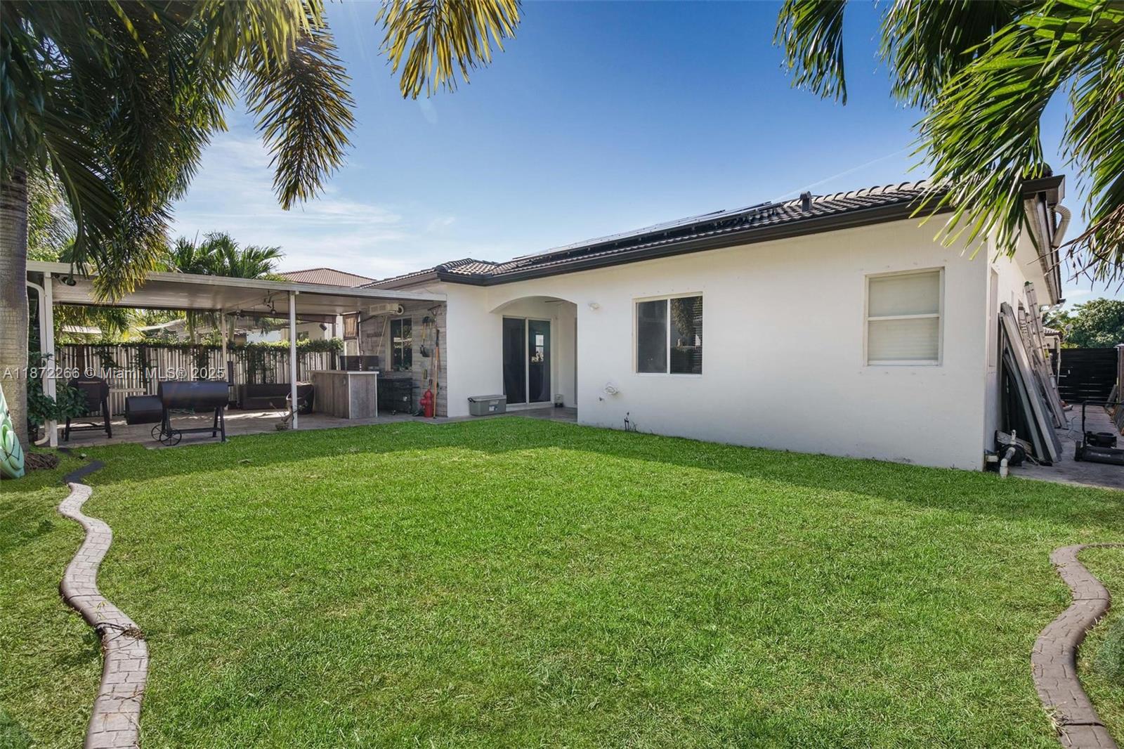 Welcome Home to Energy-Efficient Living! This spacious 4-bedroom, 2.5-bath residence sits in a quiet, family-friendly neighborhood and offers the perfect blend of comfort, convenience, and sustainability. Featuring new solar panels, this home delivers notable energy savings and an eco-friendly lifestyle without sacrificing modern comforts. Open living, dining, kitchen, and family areas are ideal for entertaining or relaxing with family. The primary suite offers a walk-in closet, soaking tub, and separate shower. Enjoy outdoor living with a large covered patio, perfect for barbecues, gatherings, or peaceful evenings. Conveniently close to top-rated schools, shopping, grocery stores, and major routes like the Florida Turnpike and Krome Avenue. No HOA and move-in ready.