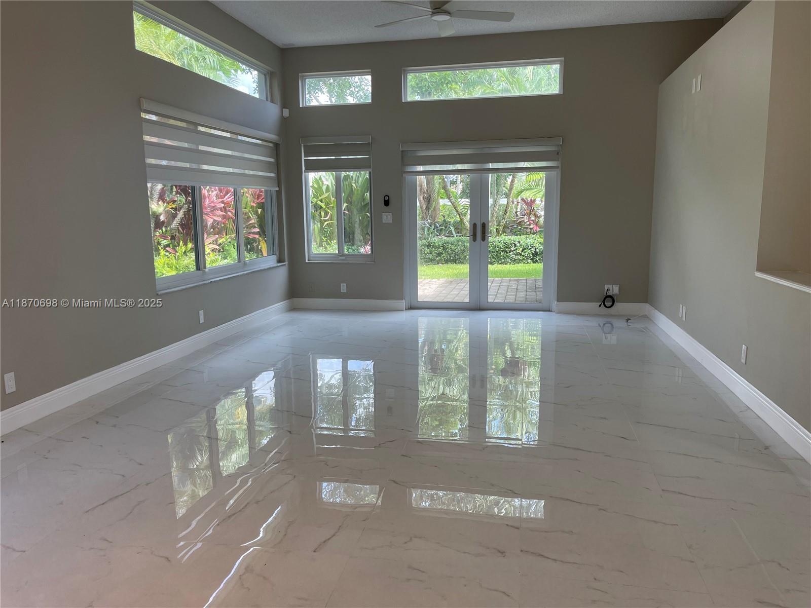 Experience the beauty of this exceptional single-family situated in the desirable Sunset Cove community. Featuring 2 bedrooms, 2 bathrooms & a versatile den that can serve as a third bedroom, office, nursery, or fitness room. The home boasts volume ceilings that create an airy atmosphere, complemented by a kitchen equipped with espresso cabinets, ample storage, deep drawers for pots & pans & convenient pantry rollouts. The striking granite countertops, glass tile backsplash & high end stainless steel appliances, including a double oven, French door refrigerator to enhance the culinary experience. A newer roof installed in 2021, a newer AC unit only 3 years old & impact windows & doors. A private backyard, enclosed by a newer fence & adorned with lush landscaping, offers a serene retreat.