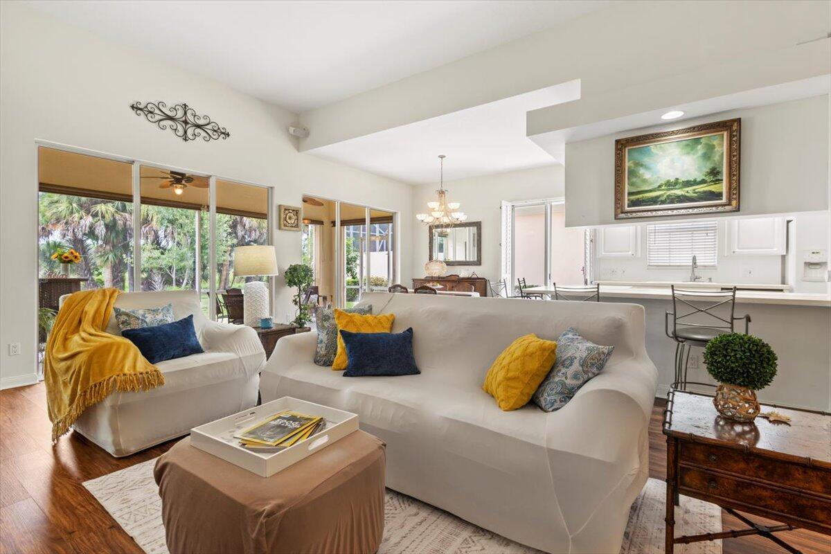 Rare HOBE SOUND OPPORTUNITY! This well-maintained CBS Divosta-Oakmont model offers 3 spacious bedrooms plus a den, 2.5 baths, and a 2-car garage on a large lot with room for a pool. The open-concept, split floor plan features volume ceilings, luxury vinyl plank flooring, plantation shutters, and a desirable his-and-hers ensuite bath. Buy with confidence due to a recent inspection (reports available). Enjoy peaceful privacy backing to 4,800+ acres of protected Atlantic Ridge State Park, where wildlife views are part of daily life. Located in The Retreat, offering pool, clubhouse, pickleball, fitness center, and planned activities. Schedule your private showing TODAY.A must see! Schedule your private showing today. Sconces and staging decor not included.