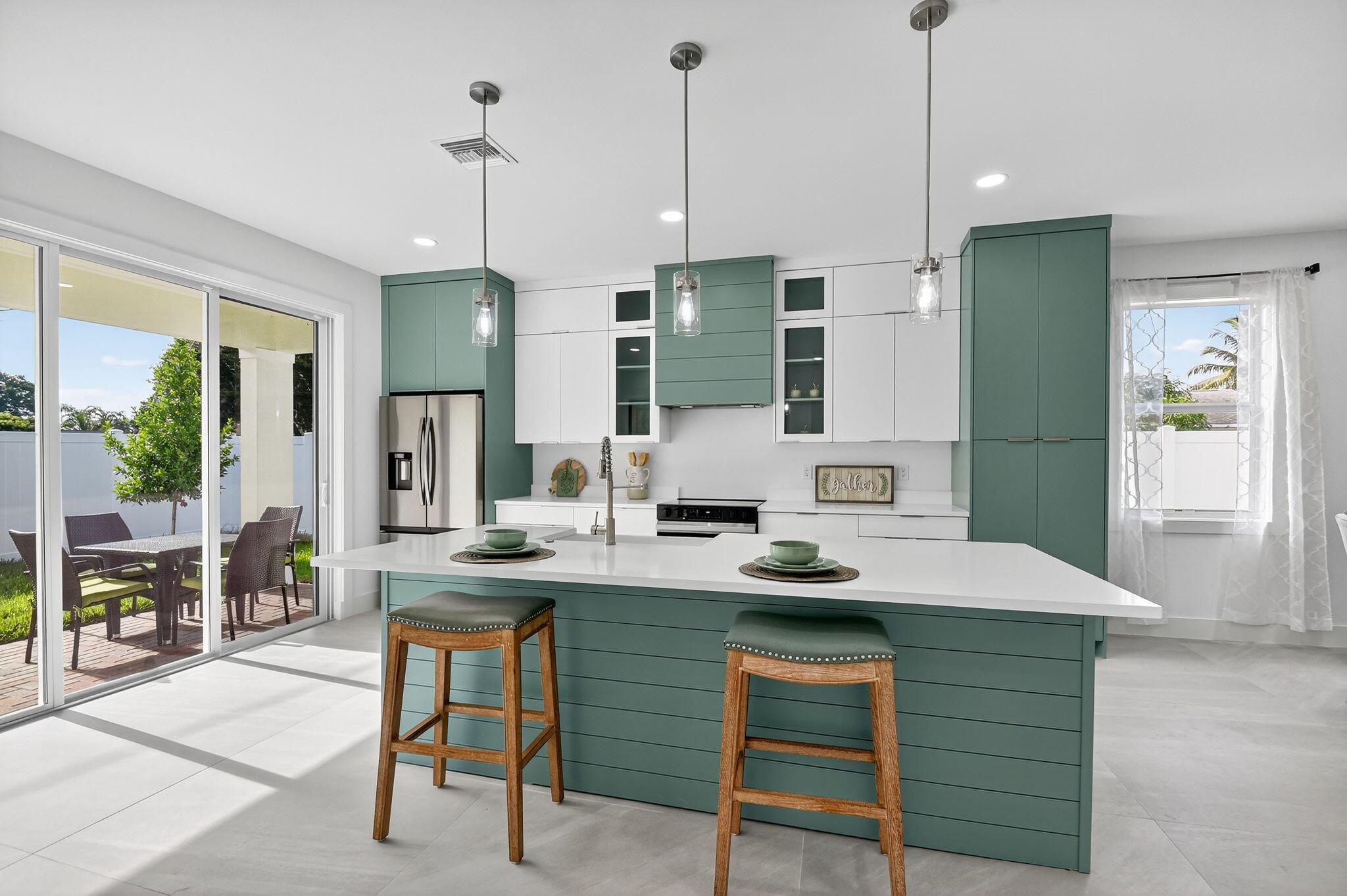 Discover this stunning 3-bedroom, 2-bathroom home with a spacious 2-car garage, perfectly crafted for modern living. Designed with style and functionality in mind, this new build offers an open-concept floor plan, soaring ceilings, and abundant natural light throughout. The gourmet kitchen features sleek cabinetry, Quartz countertops, and high-end appliances, seamlessly flowing into the dining and living areas--ideal for both entertaining and everyday living.