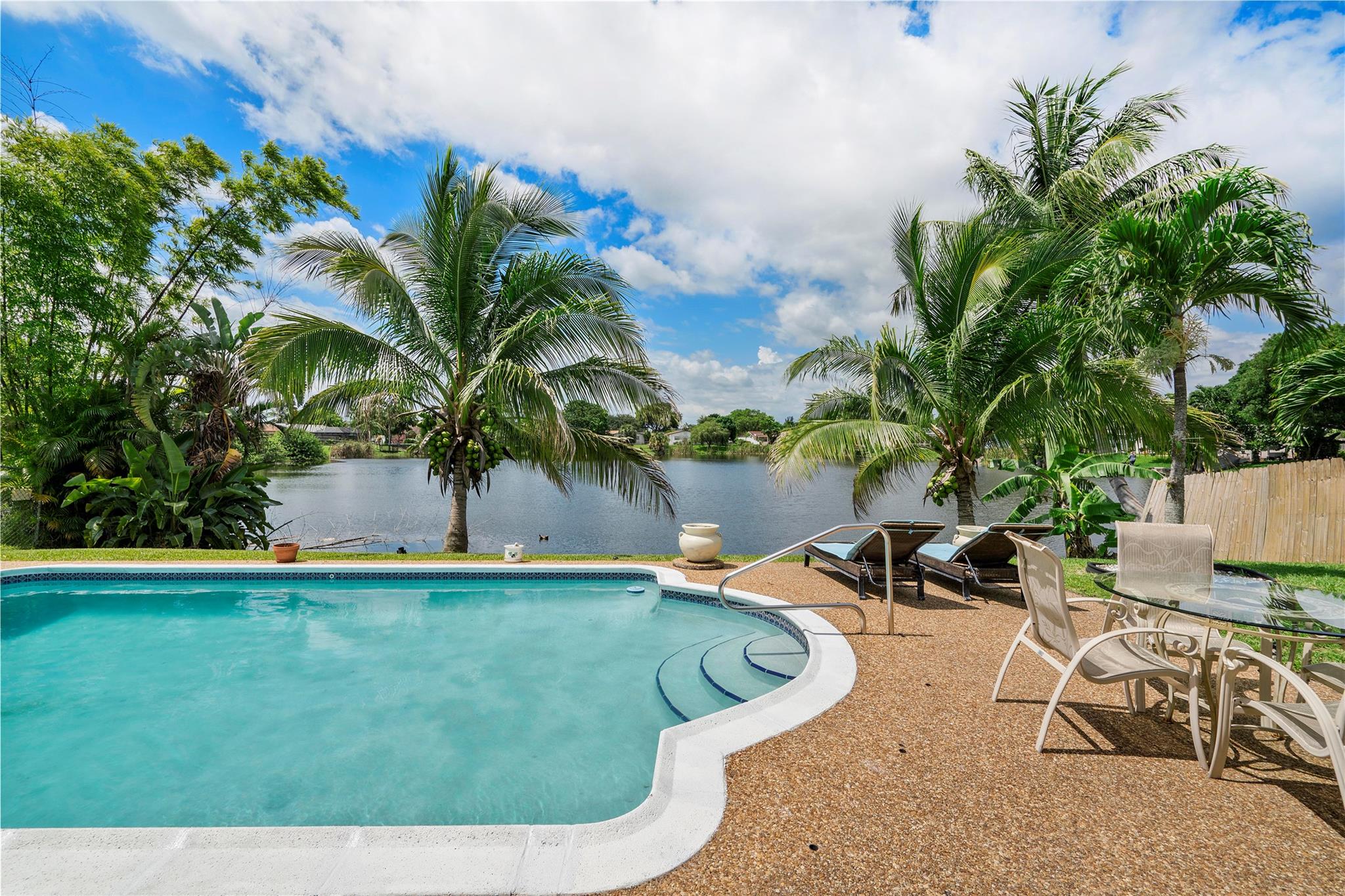 Beautiful **NO HOA** 3 bedroom, 2 bathroom, 1-story single family **POOL HOME** on **WIDE WATER** with garage, private driveway, wonderful **FULLY FENCED-IN YARD** and gorgeous **WIDE WATER VIEWS!!** THIS LOVELY HOME FEATURES A GORGEOUS UPGRADED NATURAL CHERRY WOOD KITCHEN, GRANITE COUNTER TOPS, TILE BACKSPLASH, STAINLESS STEEL APPLIANCES, ROLL-DOWN HURRICANE SHUTTERS, NEUTRAL TILE & WOOD FLOORING THROUGHOUT, FRESHLY PAINTED **INSIDE & OUTSIDE,** RENOVATED BATHROOMS, AND TRANQUIL BACKYARD WITH LARGE COVERED DINING AREA AND PLENTY OF ROOM FOR THE LOUNGE CHAIRS, THE BARBECUE, AND ENTERTAINING!! QUIET STREET AND GREAT NEIGHBORHOOD!
