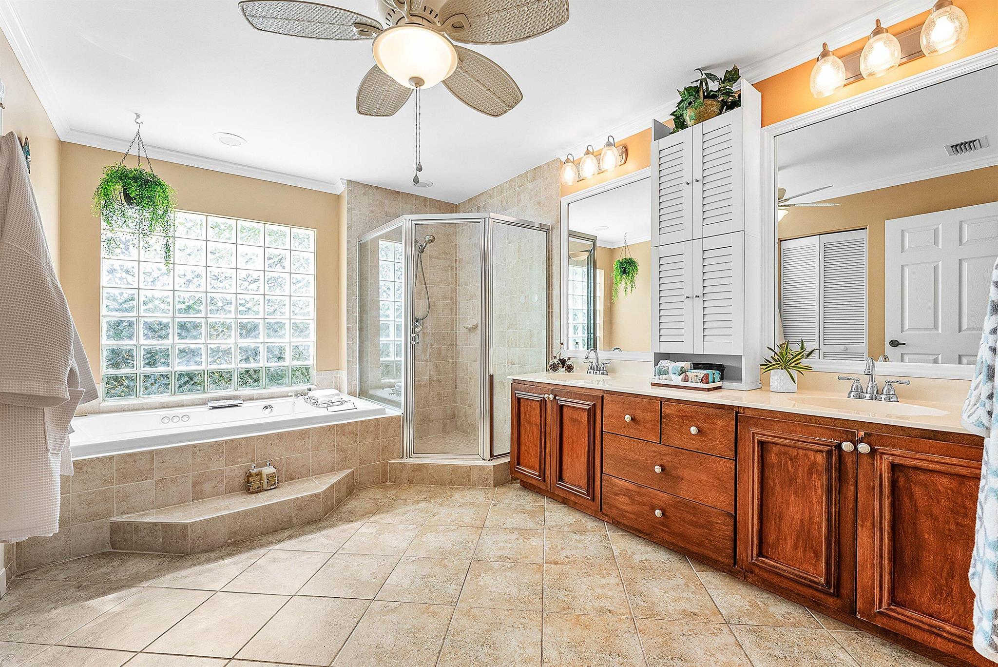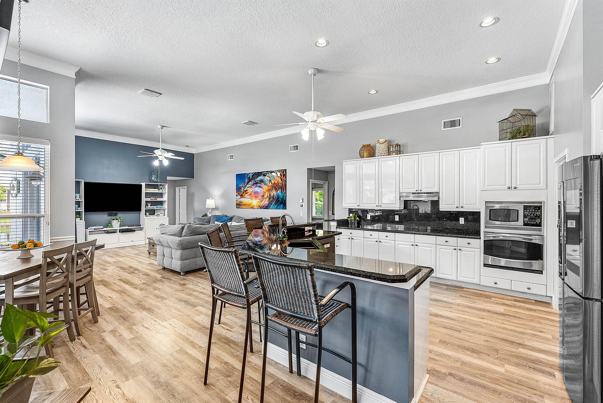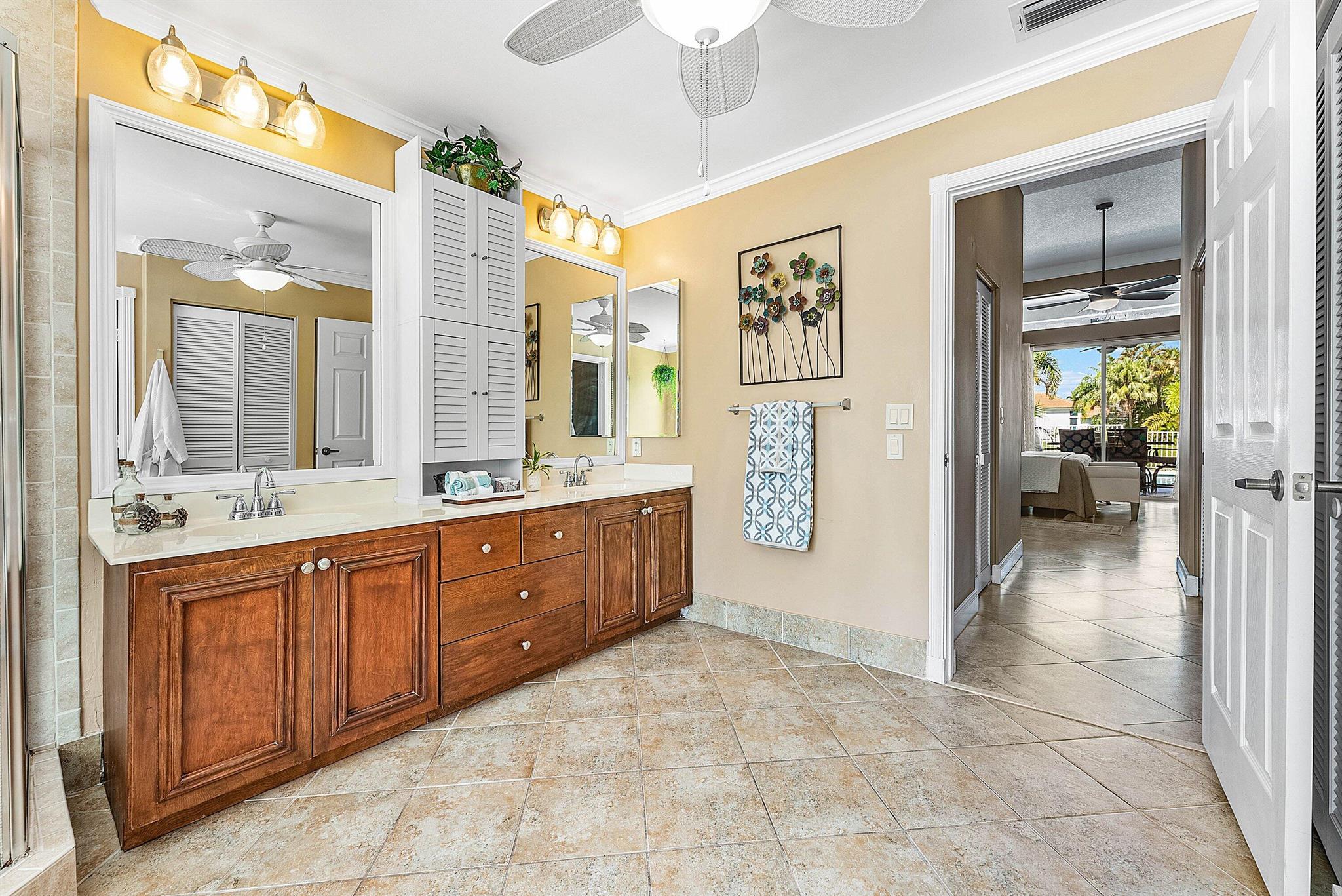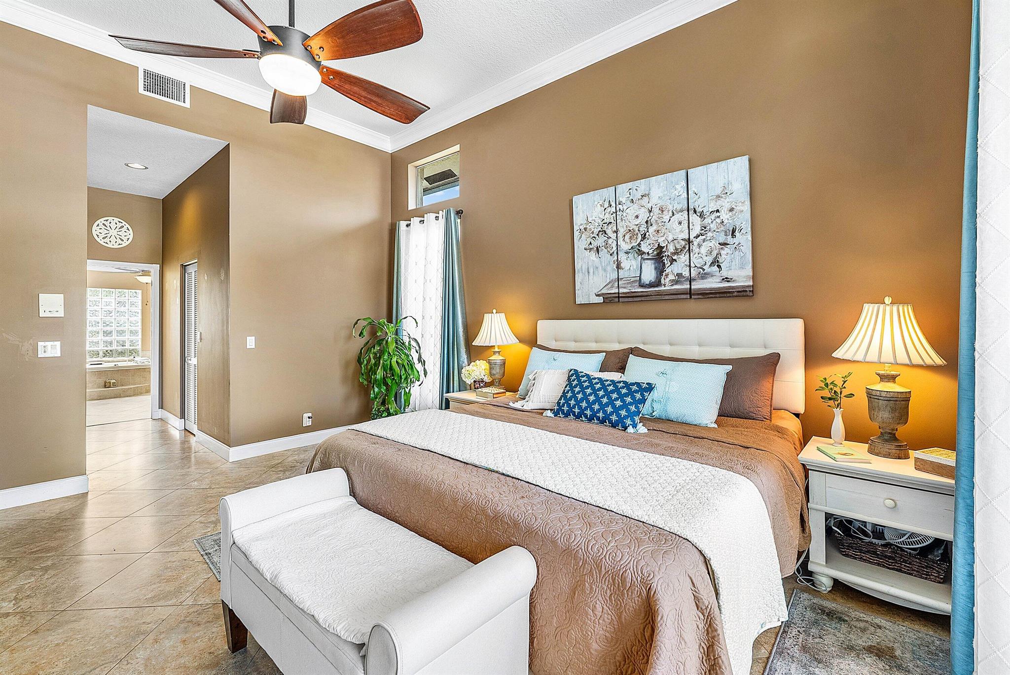 Opportunity to own this popular Cayman V model on highly sought-after oversized, pie-shaped cul-de-sac lakefront lot in gated community. Welcoming double door entry. Volume ceilings, and many updated features throughout the home, roof 2022 - come see! Spacious primary suite opening to upgraded pool and spa, adjacent bedroom can serve as study w/three more bedrooms on the other side. Generously-sized kitchen overlooks spacious family room with breakfast nook - great view of the pool! Expansive covered patio, perfect for relaxing while enjoying the stunning views of the lakefront. Convenient cabana bath. This gated community offers many amenities, including clubhouse with many activities: fitness center, resort-style pool and spa, playground, tennis and basketball courts.