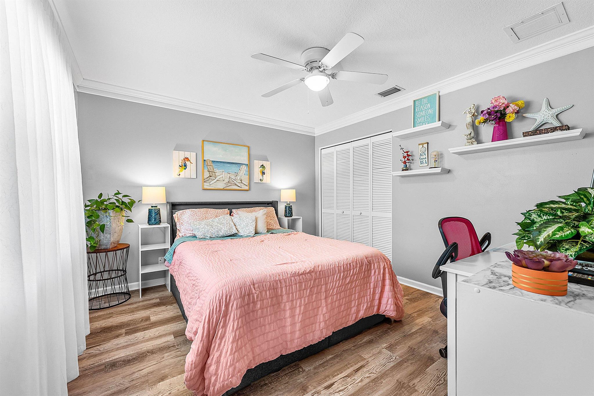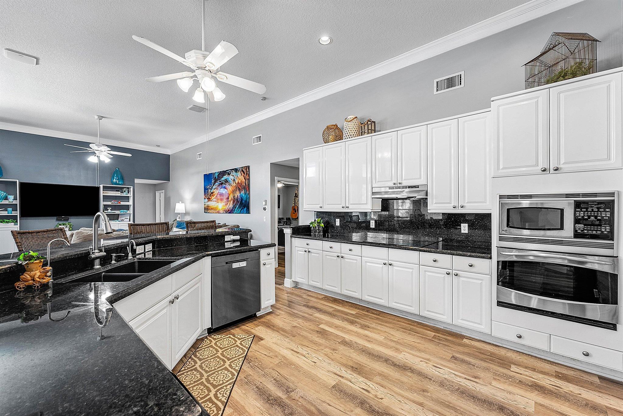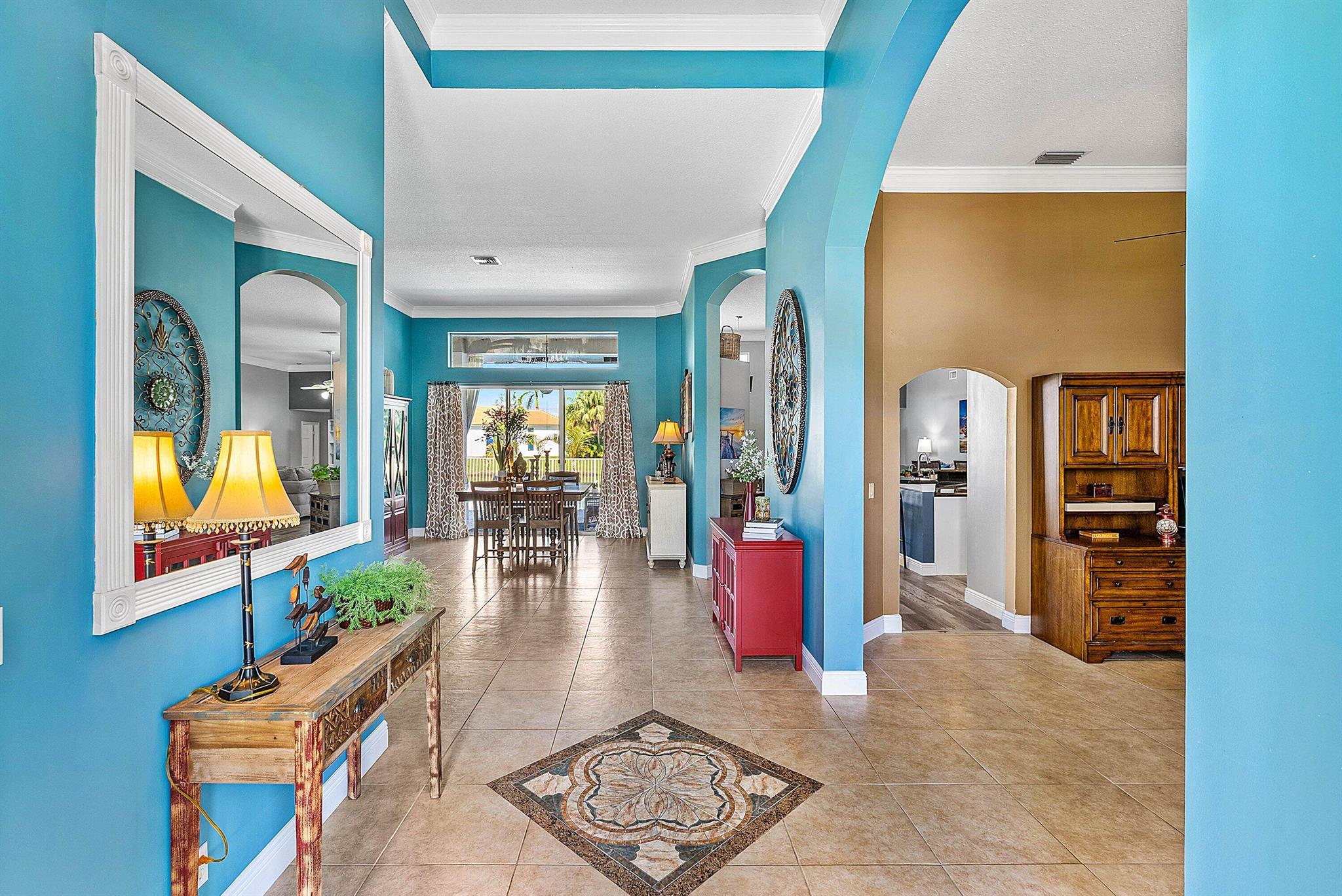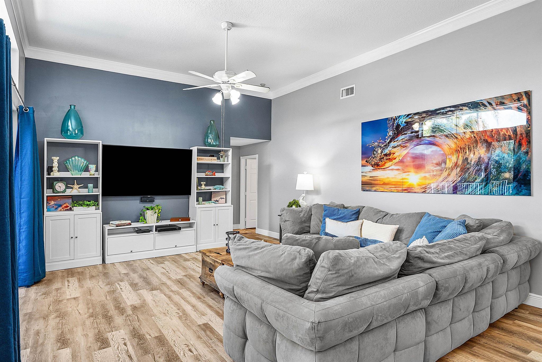 Opportunity to own this popular Cayman V model on highly sought-after oversized, pie-shaped cul-de-sac lakefront lot in gated community. Welcoming double door entry. Volume ceilings, and many updated features throughout the home, roof 2022 - come see! Spacious primary suite opening to upgraded pool and spa, adjacent bedroom can serve as study w/three more bedrooms on the other side. Generously-sized kitchen overlooks spacious family room with breakfast nook - great view of the pool! Expansive covered patio, perfect for relaxing while enjoying the stunning views of the lakefront. Convenient cabana bath. This gated community offers many amenities, including clubhouse with many activities: fitness center, resort-style pool and spa, playground, tennis and basketball courts.