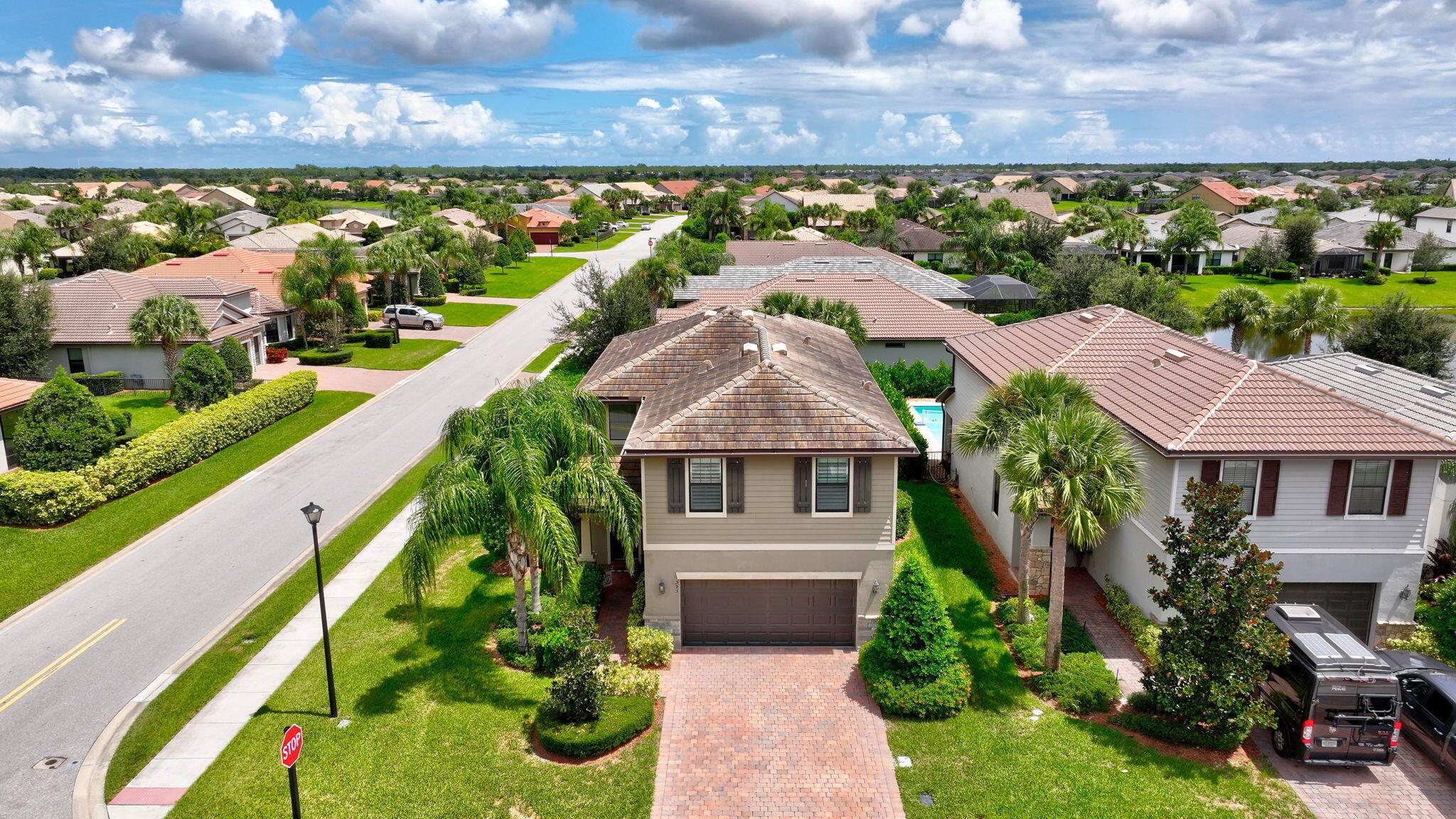 HUGE PRICE REDUCTION! ACT FAST - Moving Sale!Seller relocating overseas. Don't miss this great deal on a rarely available Divosta Driftwood model on a premium corner lot. Bright and open 4BR, 3.5BA + den with luxury vinyl floors, impact windows, and plantation shutters. Grand entry opens to elegant living space and gourmet kitchen. Spacious primary suite with sitting area, spa-like bath, and large walk-in closet. Enjoy lake views from the extended screened patio. Epoxy 2-car garage. Resort-style amenities: pool, spa, gym, tennis & BBQ. HOA includes lawn, irrigation & security. Prime location near Turnpike, shopping & beaches.