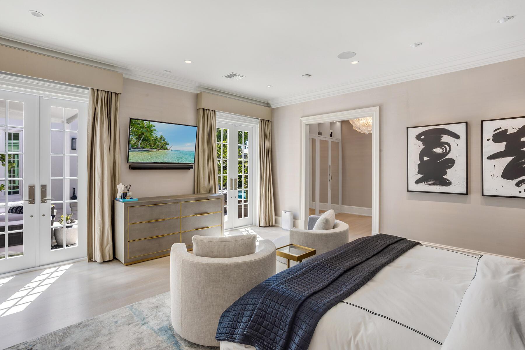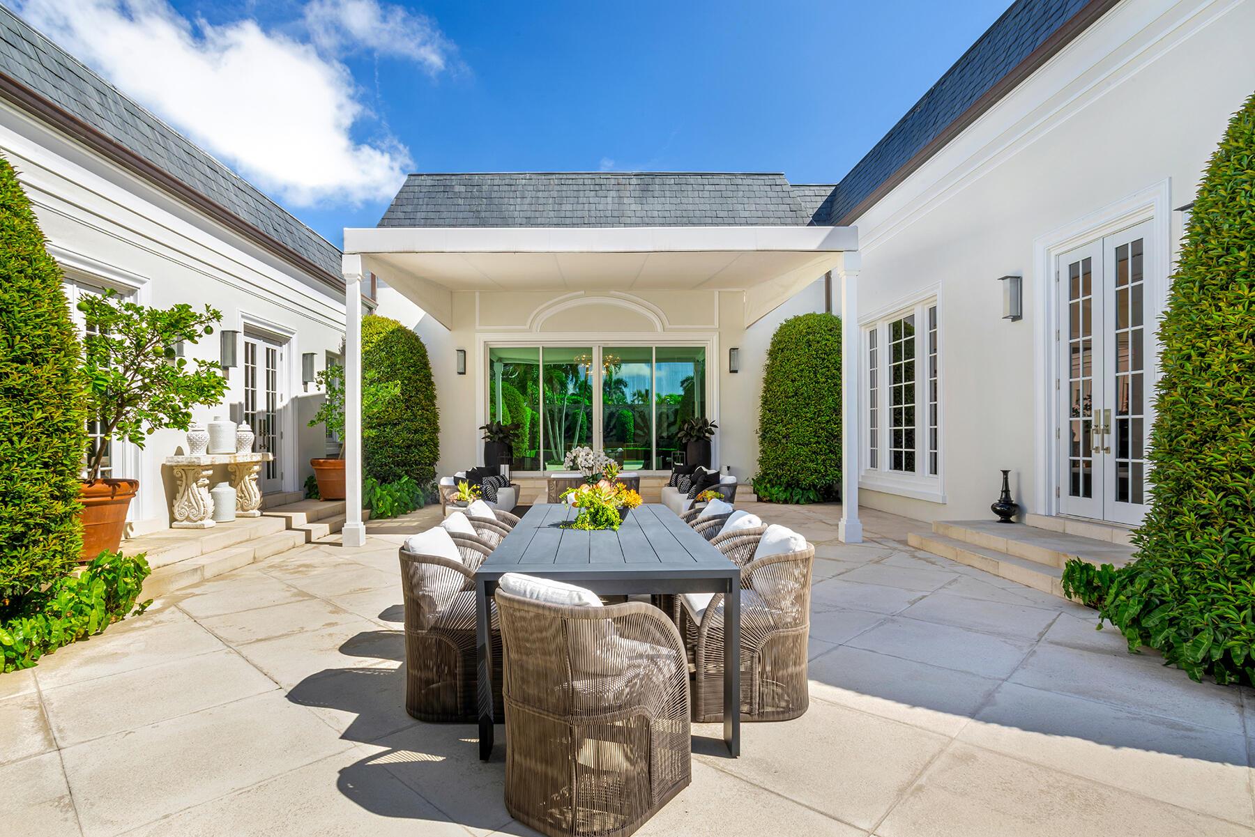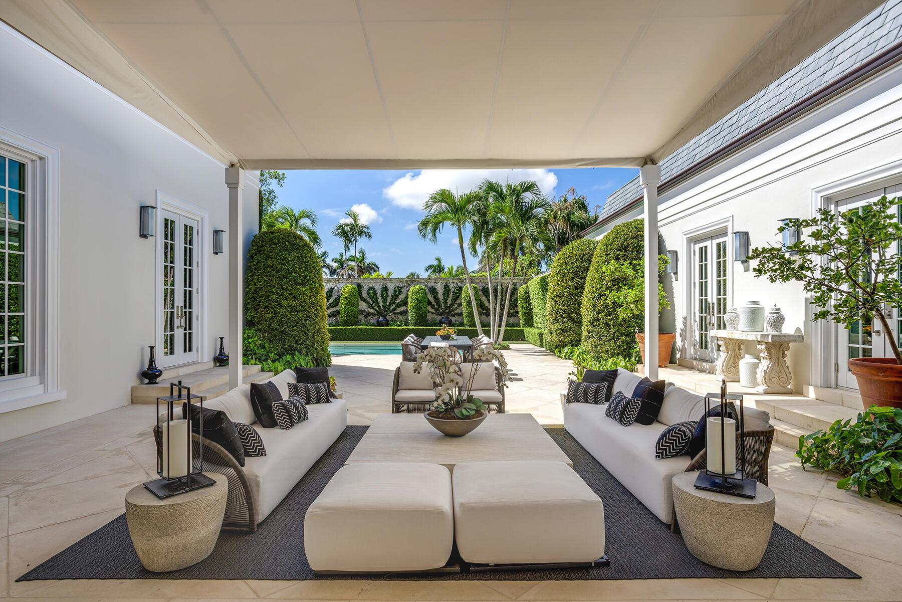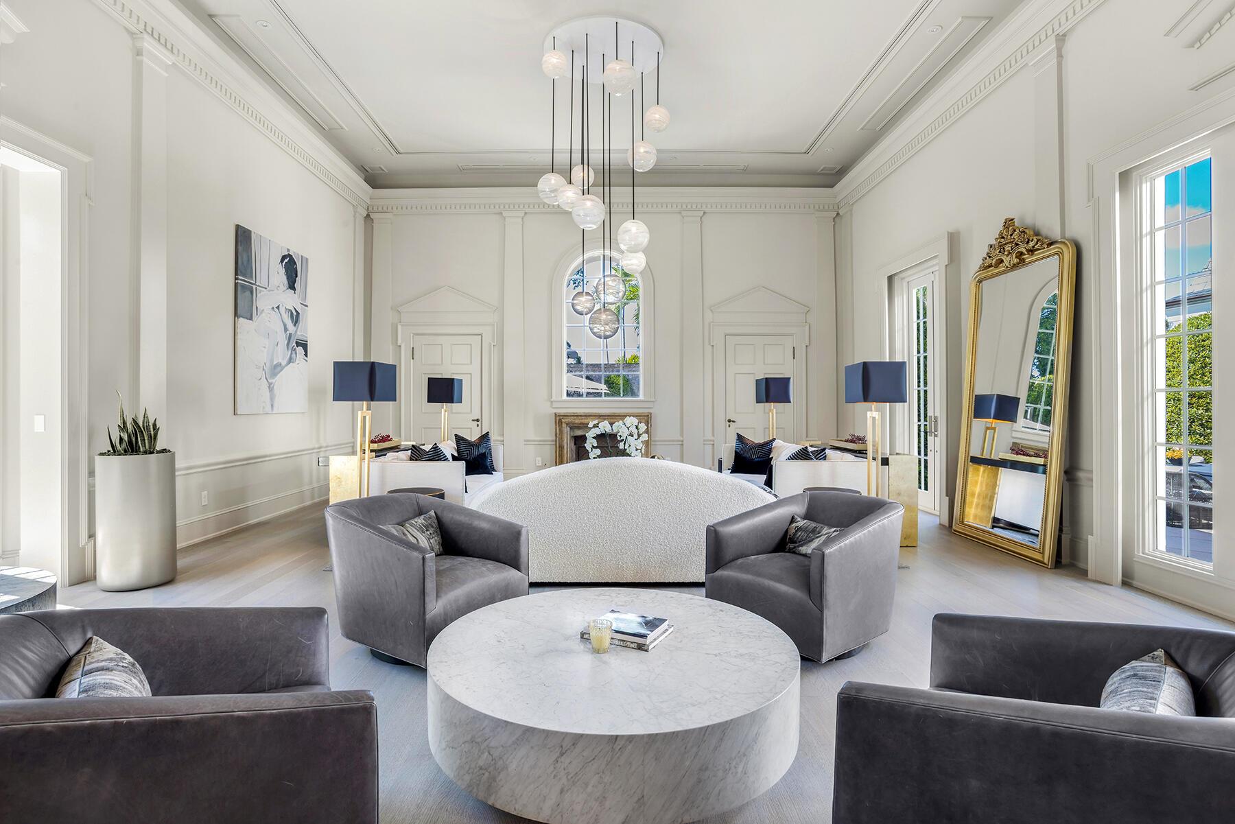 Tucked away on one of Palm Beach's most coveted cul-de-sacs and just a short stroll from the vibrancy of town, 134 Casa Bendita is a turn-key and timeless architectural jewel that seamlessly blends classic elegance with modern sophistication.From the moment you arrive, this stunning home captivates with its impressive street appeal, a grand facade, and meticulously curated designer landscaping that sets the tone for what lies within. Step inside to soaring 18-foot ceilings and a voluminous, sun-drenched great room, a true showstopper - and the heart of the home - which is both dramatic and inviting. Providing unparalleled indoor-to-outdoor living on an oversized lot, the residence is perfectly suited for both refined entertaining and quiet repose.