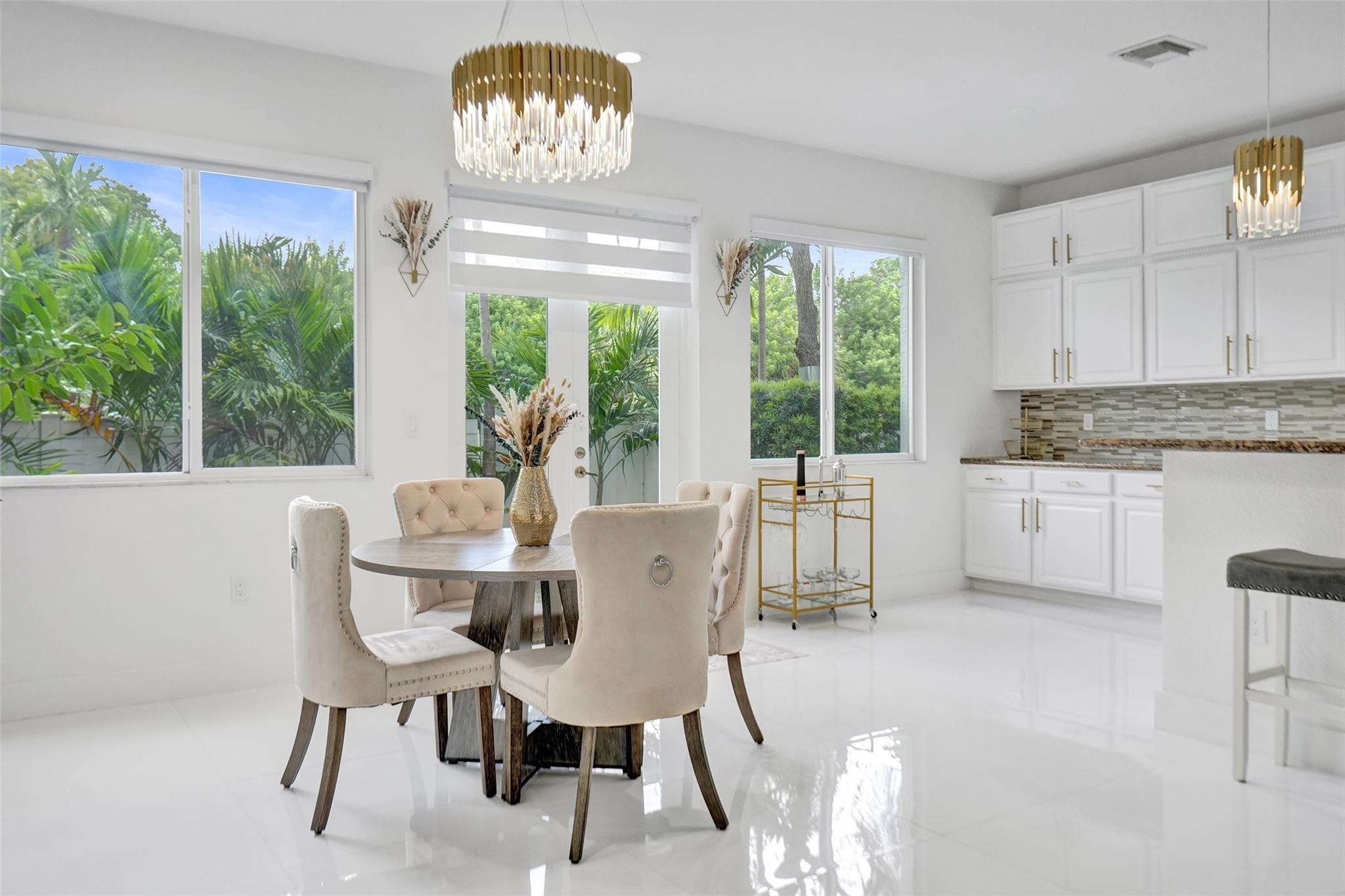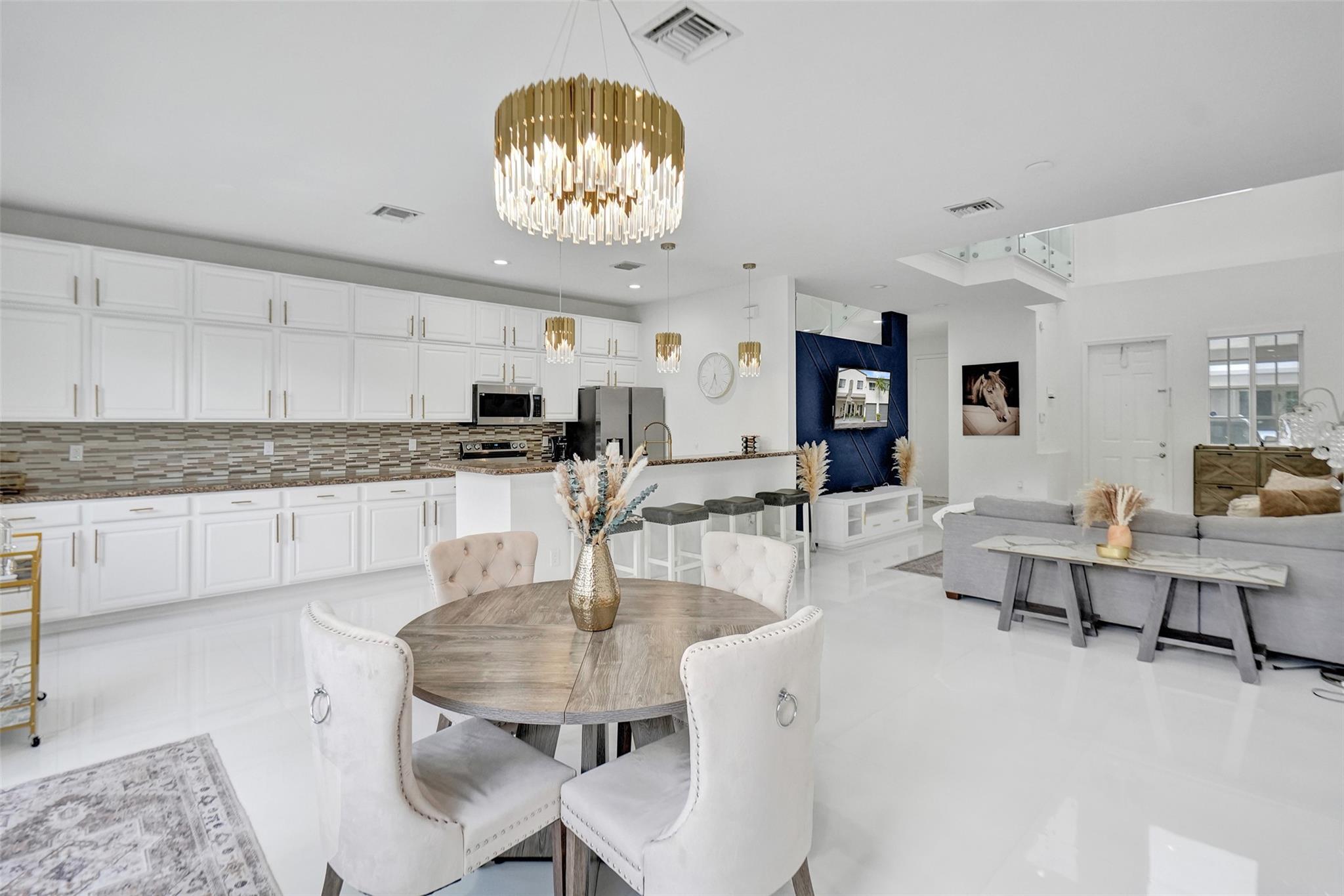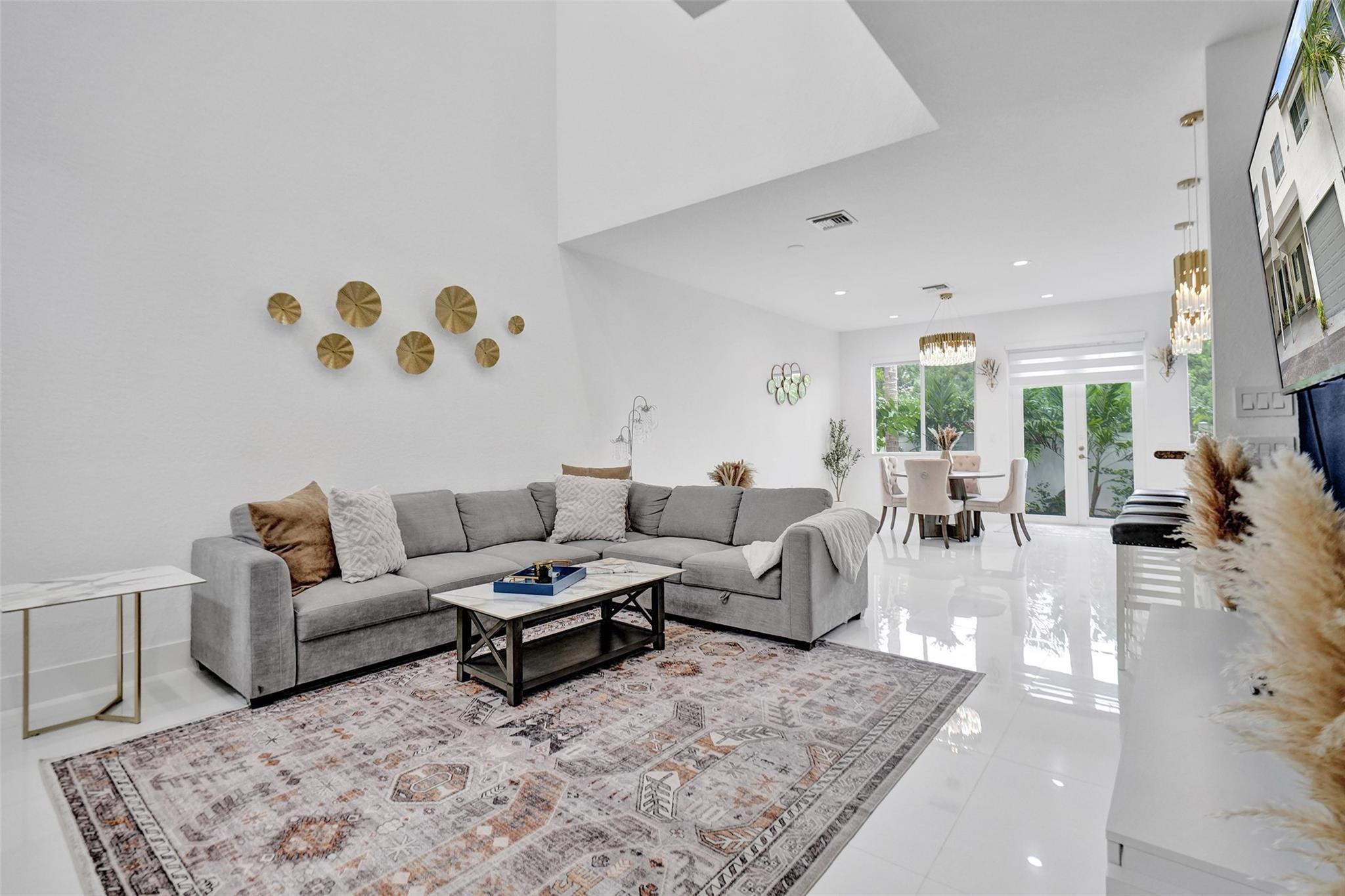 Gorgeous 3 bed/2.5 bath, 2-story townhome with high-volume ceilings in a highly desired gated community, just 6 mins from the beach. The primary suite features two walk-in closets and a spacious bath. Highlights include large kitchen w/ granite counters, lots of cabinet space, brass accent handles/lighting, SS appl, white porcelain 24x24 tile throughout main floor, high-quality water resistant laminate on the 2nd floor, a sleek glass and steel staircase, impact windows and doors, and a lovely back patio/yard just off the kitchen and dining area. Parking includes a 1-car garage plus a covered carport. With new restaurants, entertainment, and waterfront projects underway, Pompano Beach is rapidly transforming making this home not only a perfect lifestyle choice but also a smart investment.