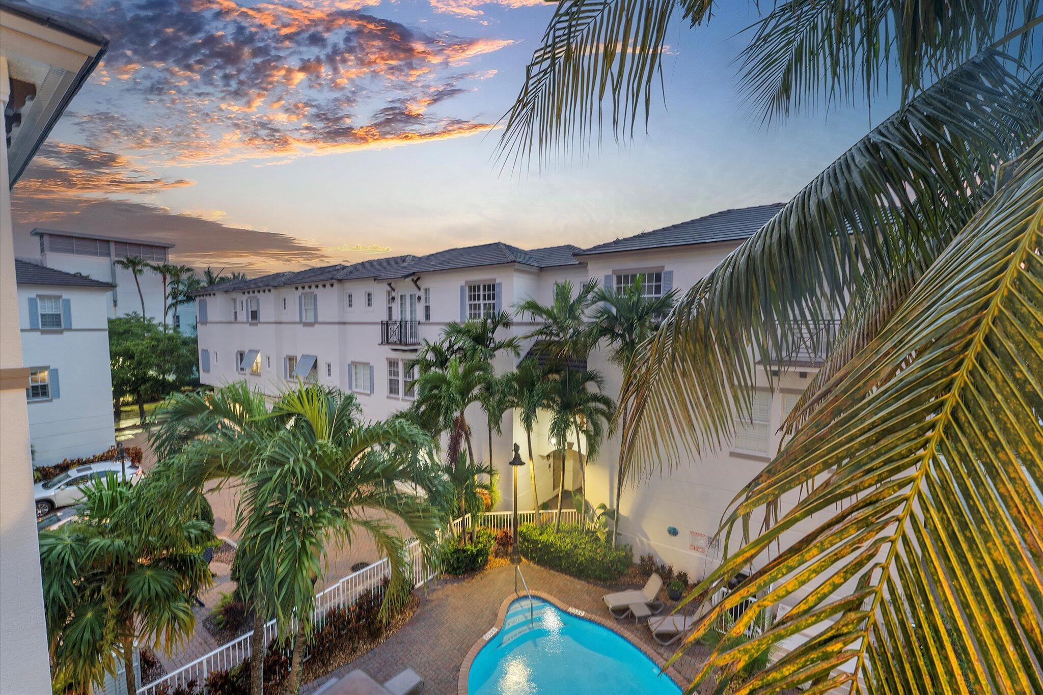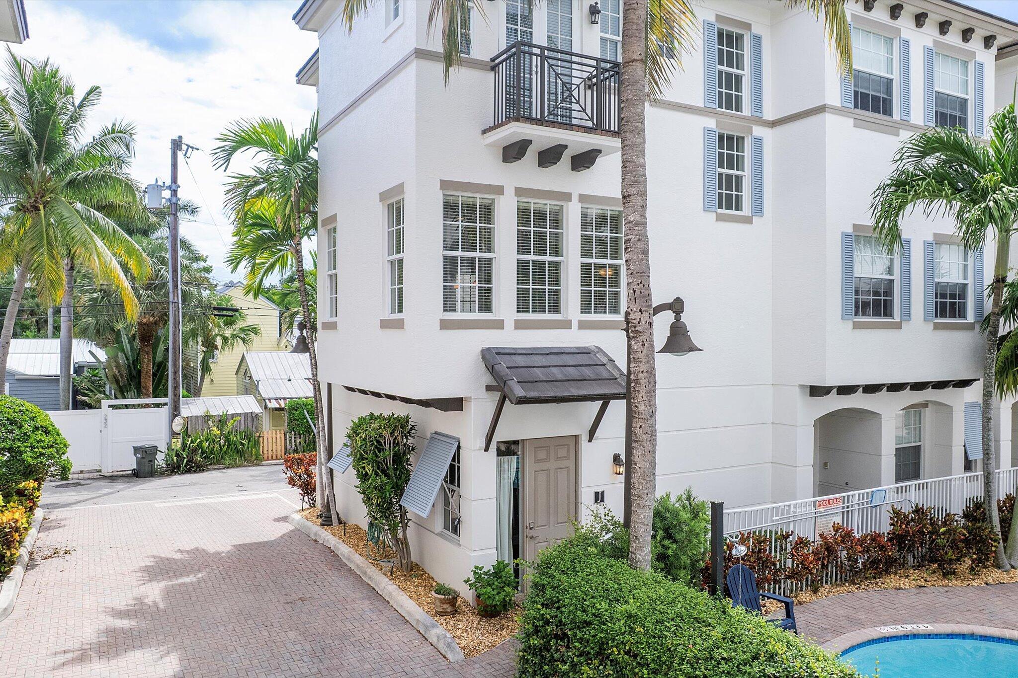 Enjoy the ultimate Delray Beach lifestyle in this beautifully maintained end-unit townhouse, ideally located minutes from Atlantic Avenue's vibrant dining, boutiques, and the beach. As a coveted corner residence, the home is filled with natural light from an abundance of windows and offers rare features not found in other units--including three private balconies, one conveniently located off the kitchen for grilling, and the only second-floor balcony in the community. Overlooking the resort-style pool with its tranquil waterfall, this home blends elegance with ease. The first floor features rich cherry wood flooring, a spacious laundry room, and an oversized garage.