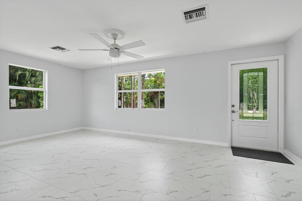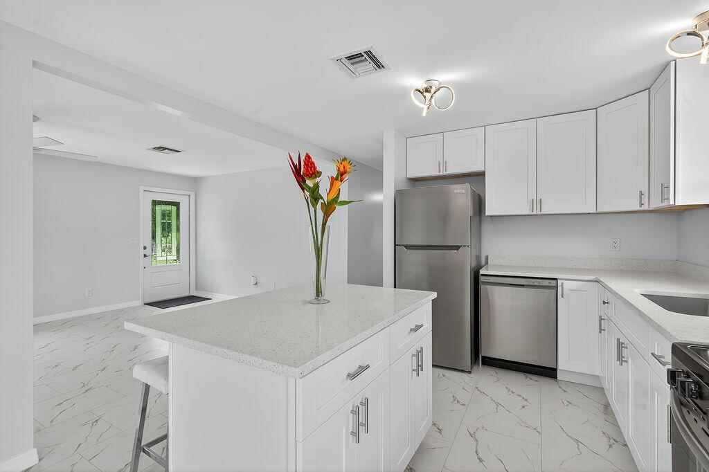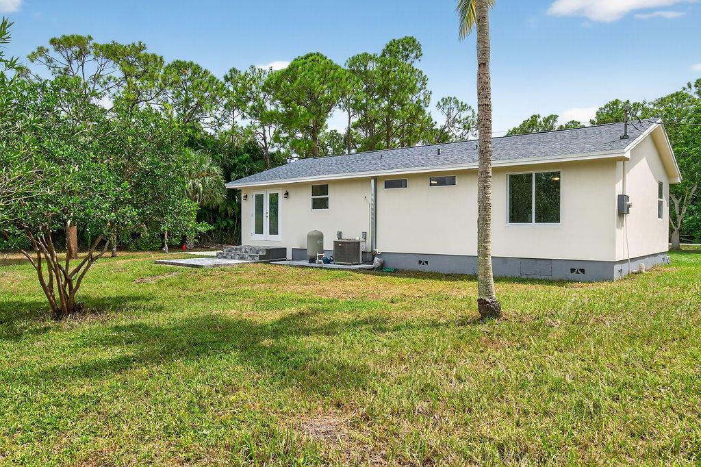 Completely Renovated Jupiter Farms Home - No HOA, 1.25 Acres This beautifully renovated 3 bedroom, 2 bathroom home sits on a spacious 1.25 acre. Every detail has been thoughtfully curated, making it move-in ready. 2024 Roof, freshly painted in & out, exquisite new pavers at all entrances, New AC & Water Heater, New Impact Glass Windows & doors, Sophisticated Open concept Kitchen boasts custom Center Island, new Frigidaire appliances. Elegant living spaces, Modern Finishes & elegant bathrooms showcasing refined tile and marble. Tile and Porcelain Flooring throughout. GE washer & dryer. Room for pool/barn. On paved road, Top rated schools, 5 miles to I-95 & Florida Turnpike. This home combines modern upgrades with country style living, all within minutes of everything Jupiter has to offer