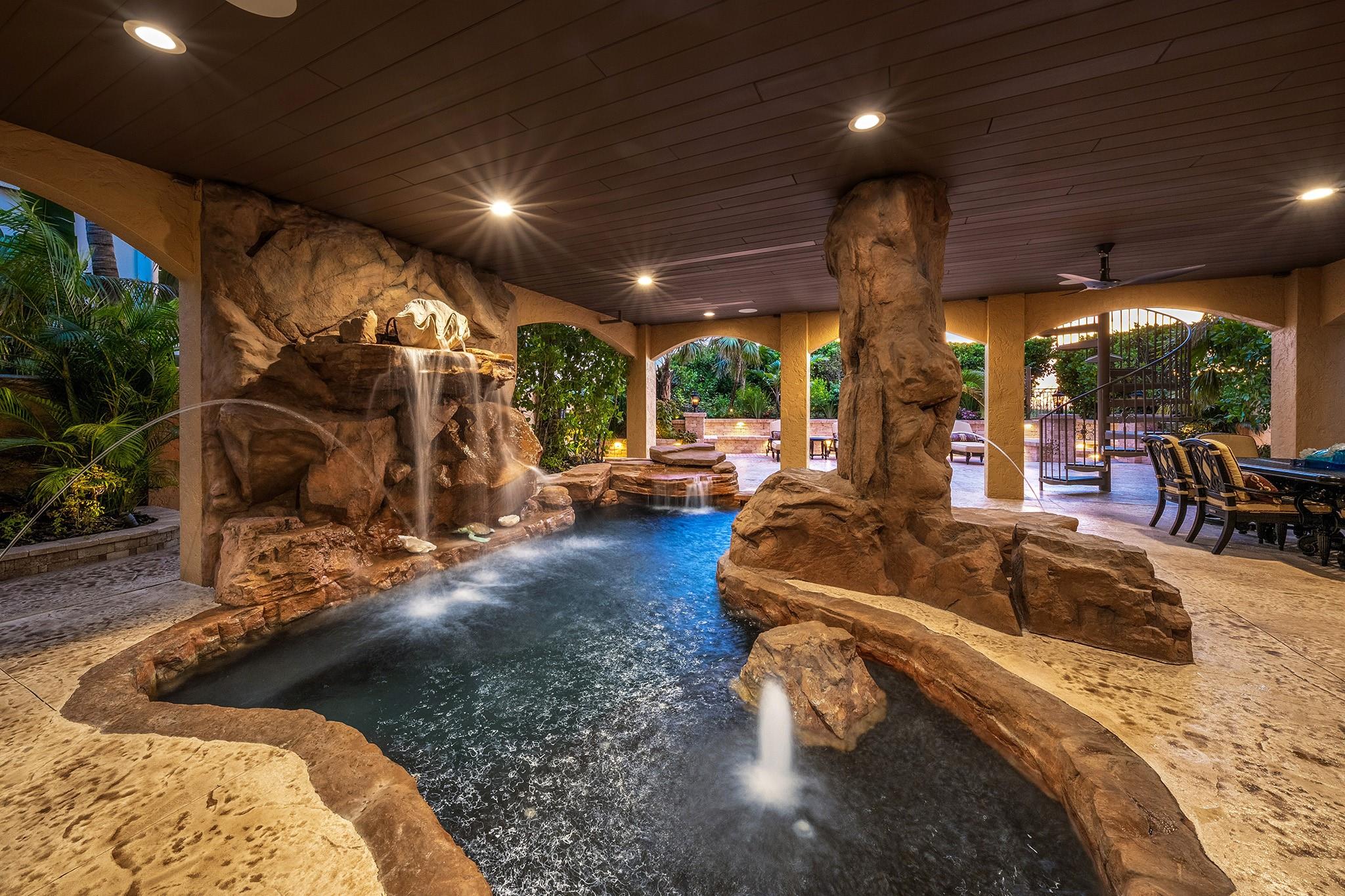 Now in direct contract negotiation prior to planned Luxury AUCTION on Oct 16, 2025... Current list price for REFERENCE ONLY. Inquire for details… Enjoy direct vistas of the beach, ocean and sunset from the privacy of this 3-story residence sited on 0.81 acres. Custom built in 2005 at an increased elevation that kept the home “high and dry” in past storms. Private, oceanfront courtyard and “rock grotto”-style pool with water features, spa, fireplace and cabana bath. Large, oceanfront terraces on central and upper levels, each with outdoor fireplaces and one with “floating” soaking tub and dual rain forest heads. Executive office, private elevator, gourmet kitchen, sprawling primary suite and more!