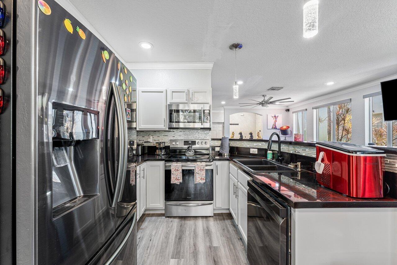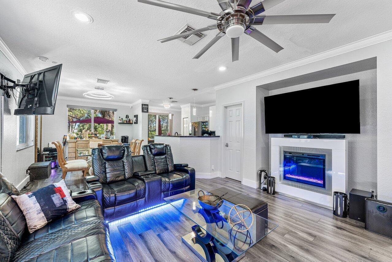 Completely repainted and refreshed, this immaculate 3-bedroom, 2.5-bathroom corner townhome in the desirable Thousand Oaks community is ready to impress! The home features smart-home technology, luxury hardwood floors, custom lighting, crown molding, and hurricane impact windows. The kitchen and living areas flow seamlessly, with thoughtful details like custom blinds, smart ceiling fans, and a Nest thermostat. Additional highlights include a tankless water heater, Ring camera system, WiFi garage door, 1 car garage with a 2 car driveway, and a private outdoor patio with a fire pit, perfect for relaxing or entertaining. The AC was replaced in 2019 for peace of mind. Residents of Thousand Oaks